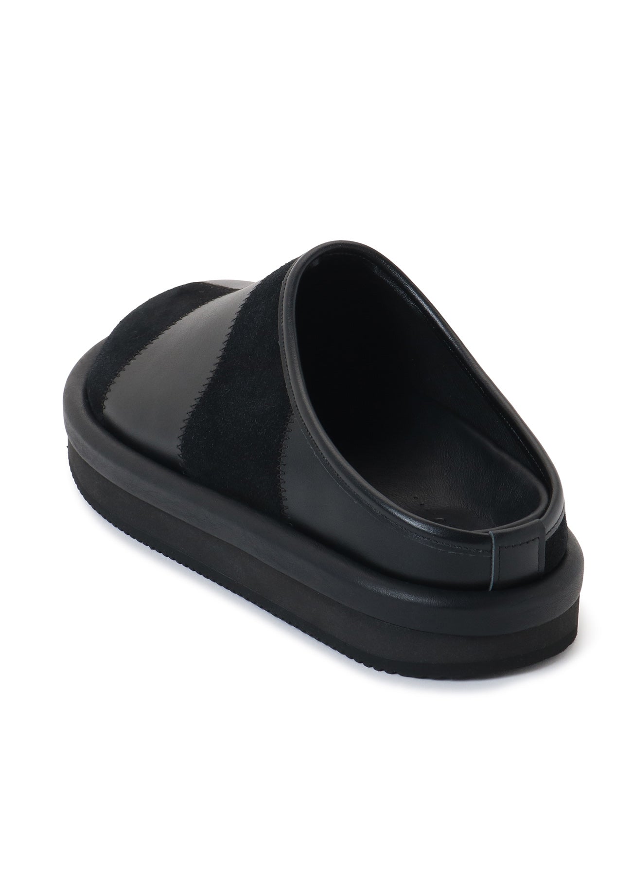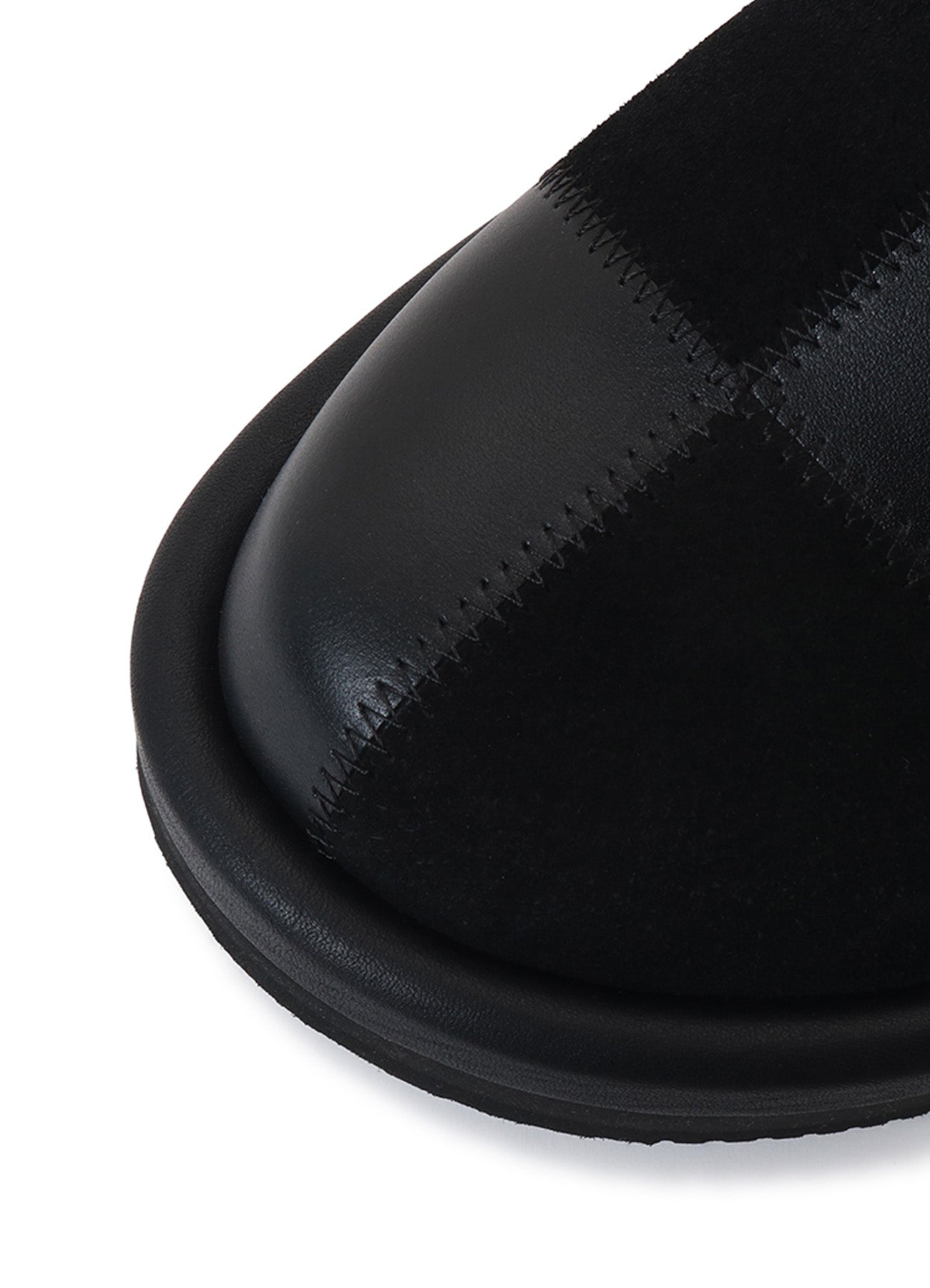 These patchwork sandals combine various materials to create a unique look. With a footbed that contours to the foot, they offer a comfortable wearing experience. These sandals seamlessly merge design with comfort for an exceptional choice.