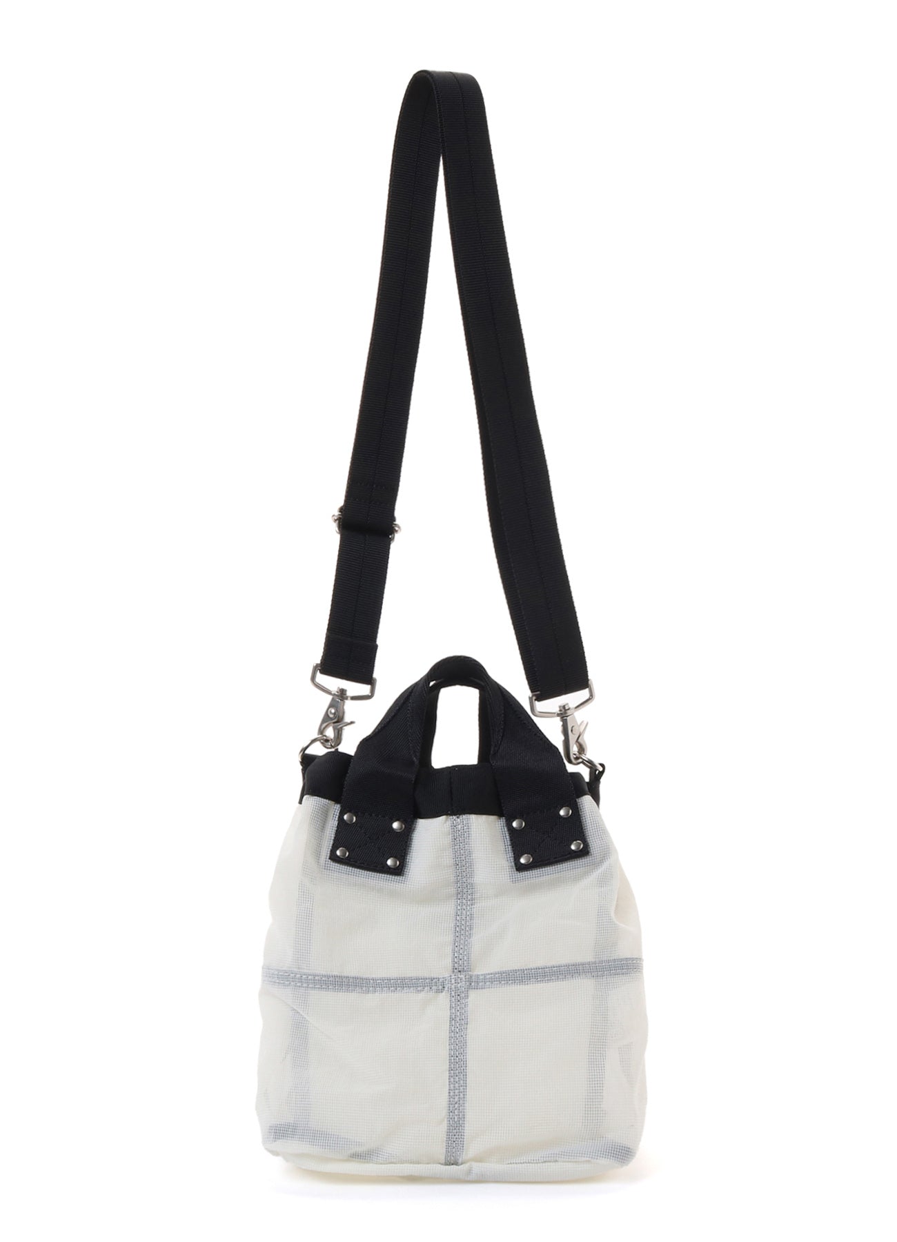 A lightweight shoulder pouch with a translucent texture, made from durable and lightweight Ripstop fabric originally developed for military and parachute use. The series pays homage to military sewing techniques by adding seams and multiple stitches for added durability. Military elements are also incorporated into details like tapes, rivets, and cigarette pockets.