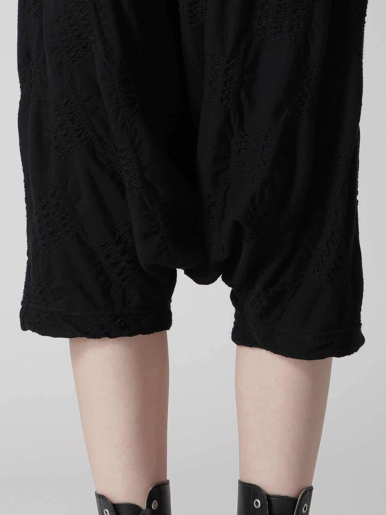 This garment features a combination of pleated and plain stitch textures, creating a standout effect. Highlighting an interesting, uneven texture and comfortable fit, these sarouel pants are ideal for everyday wear, providing a relaxed style.