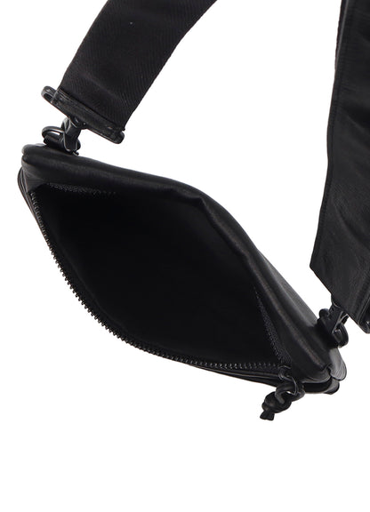 <300자 요약> 부드러운 가죽 소재의 sacoche는 Y's 특유의 디자인과 실용성을 결합하였습니다. 탈부착 가능한 어깨 끈으로 파우치로도 사용할 수 있습니다. 가죽 특성상 땀이나 마찰로 인해 약간의 색상 전이가 일어날 수 있으므로 밝은 색상의 옷과 함께 착용 시 주의가 필요합니다. - Y's 디자인의 부드러운 가죽 sacoche - 탈부착 가능한 어깨 끈; 파우치로 활용 가능 - 야외에서도 실용적이고 스타일리시함 - 색상 전이 가능성; 밝은 옷과 함께 주의