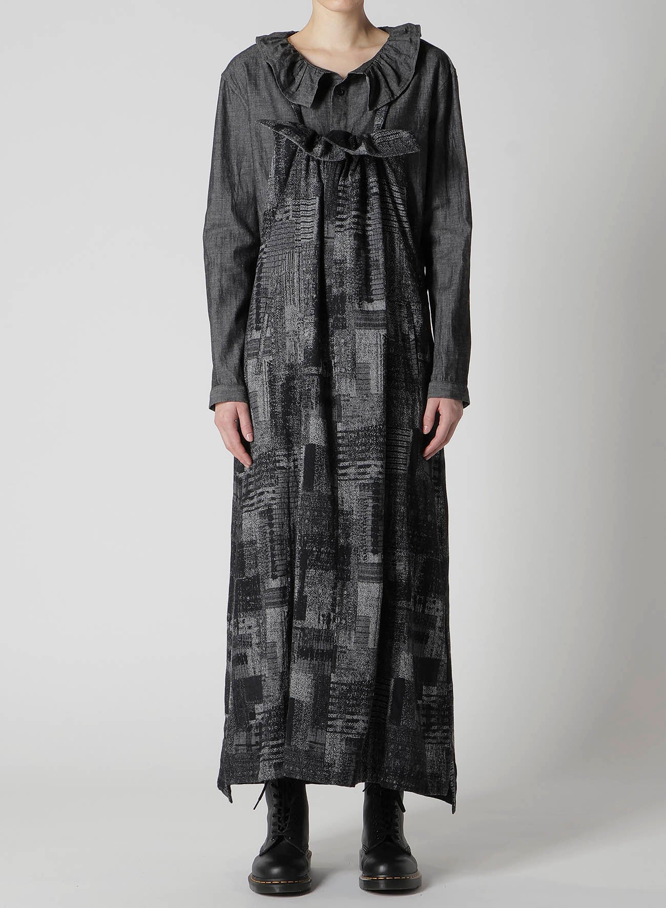 PATCHWORK JACQUARD FRONT GATHER DRESS