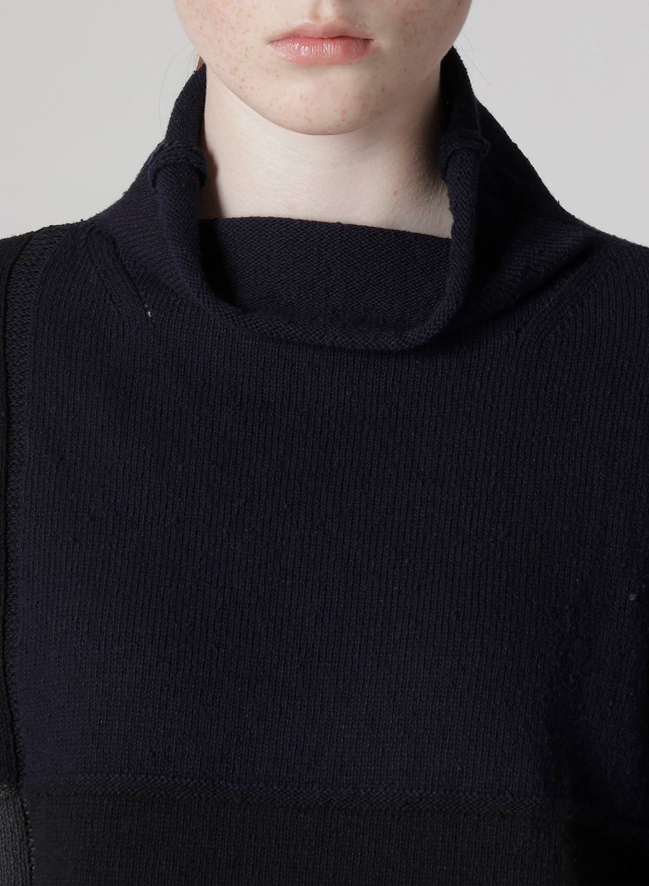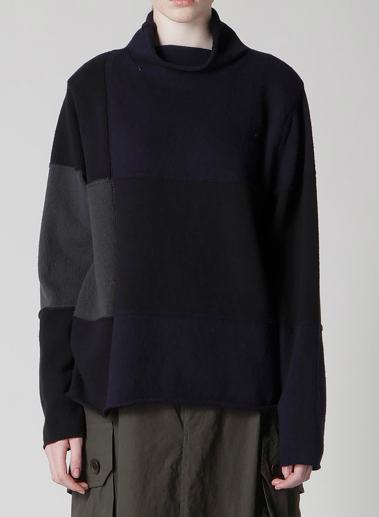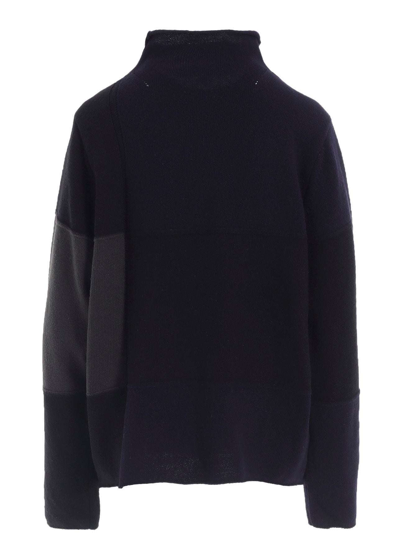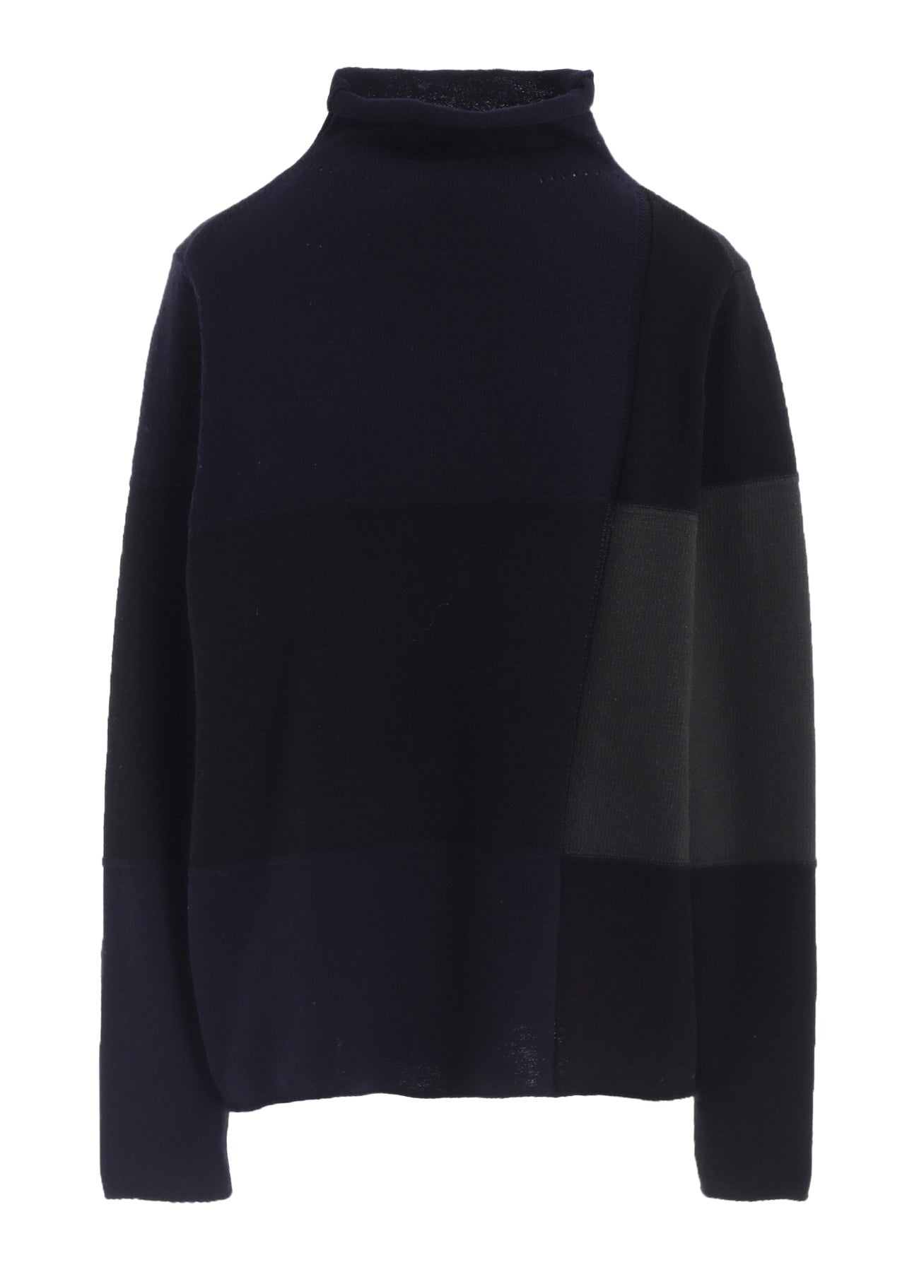 HARD-TWISTED BLOCK INTARSIA HIGH-NECK PULLOVER
