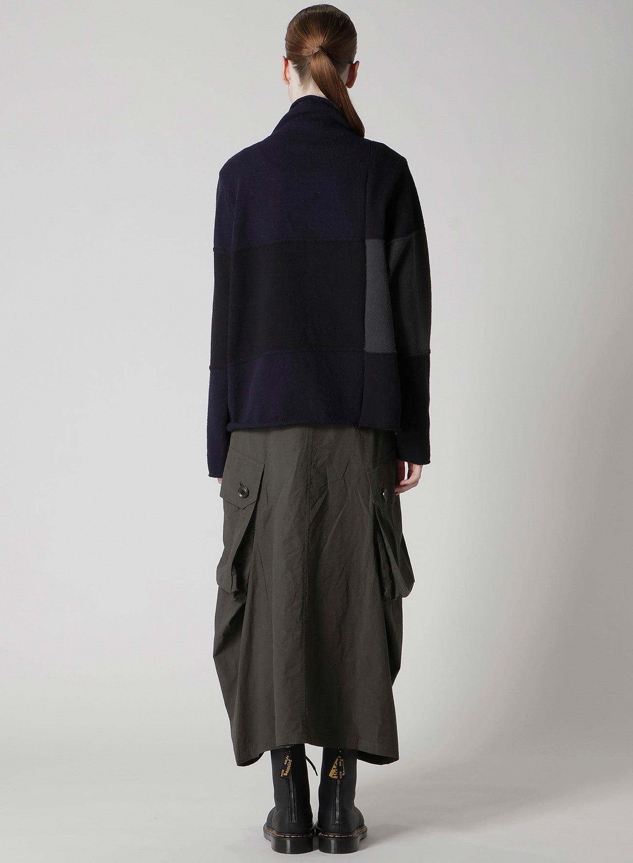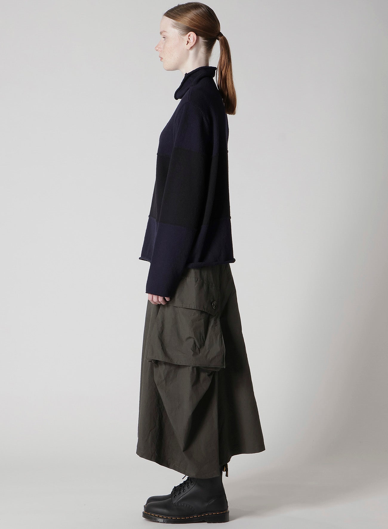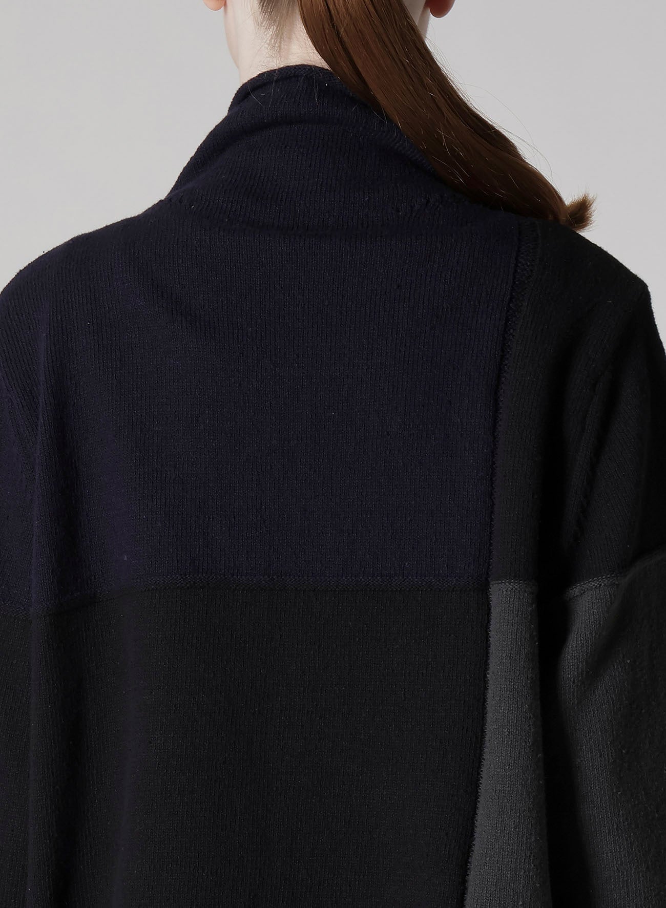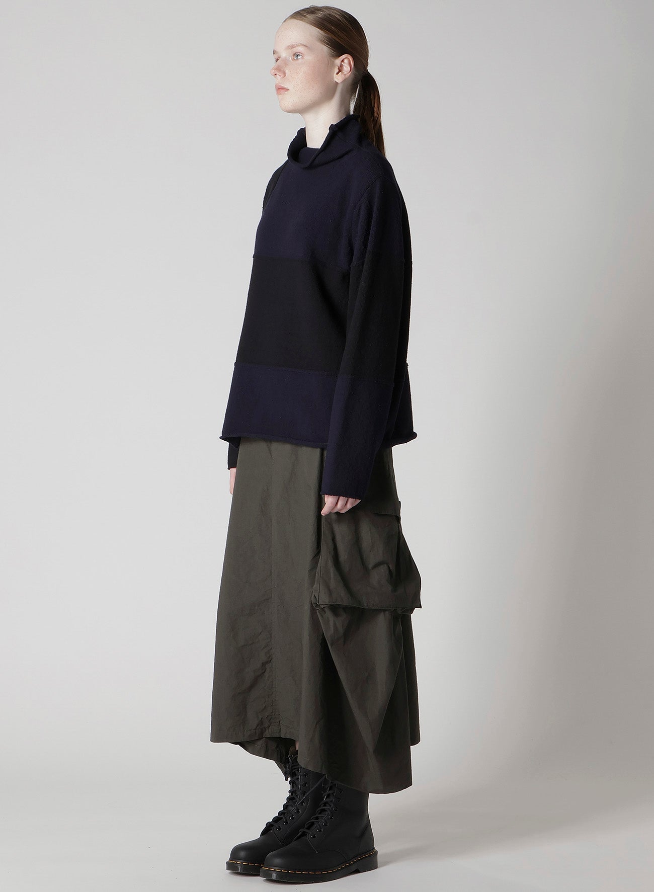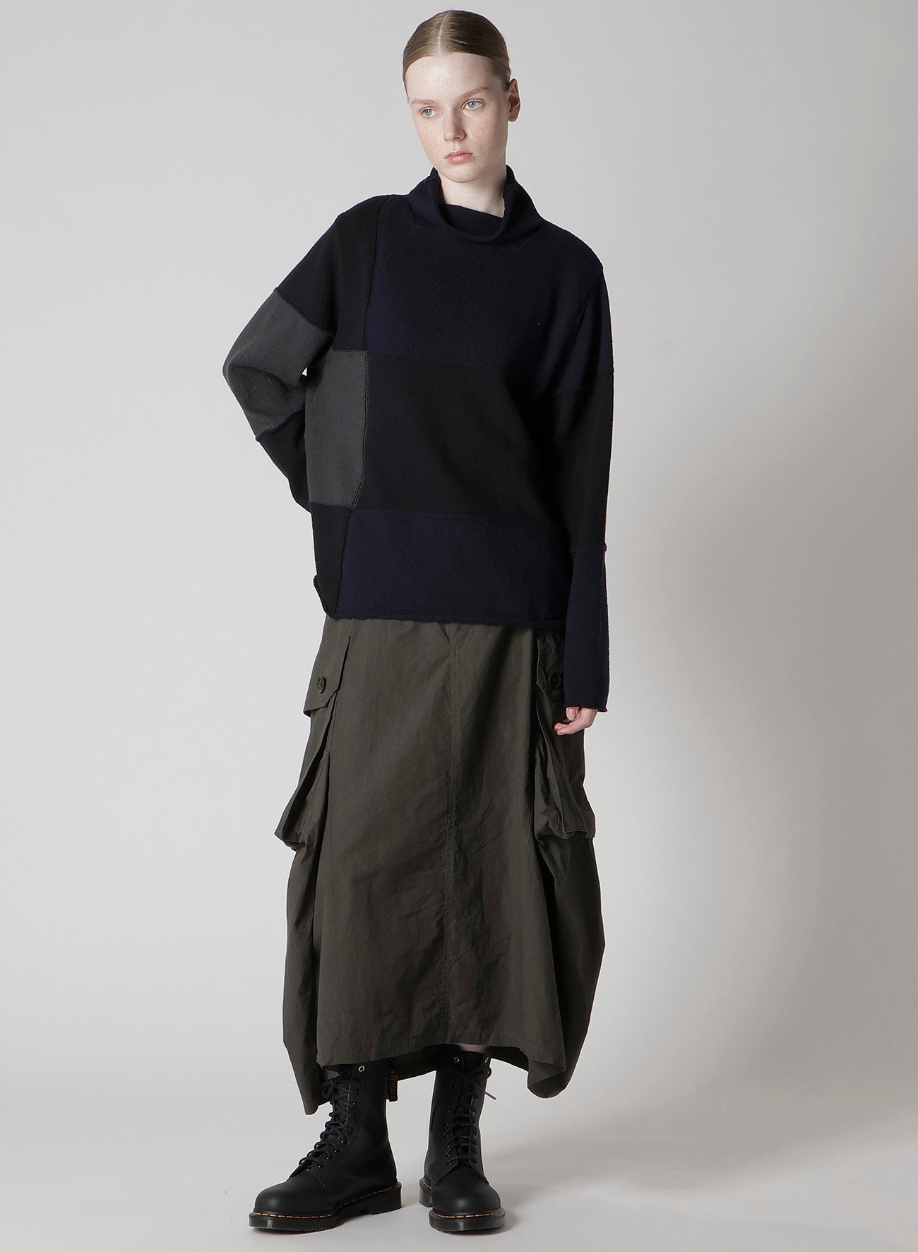 HARD-TWISTED BLOCK INTARSIA HIGH-NECK PULLOVER