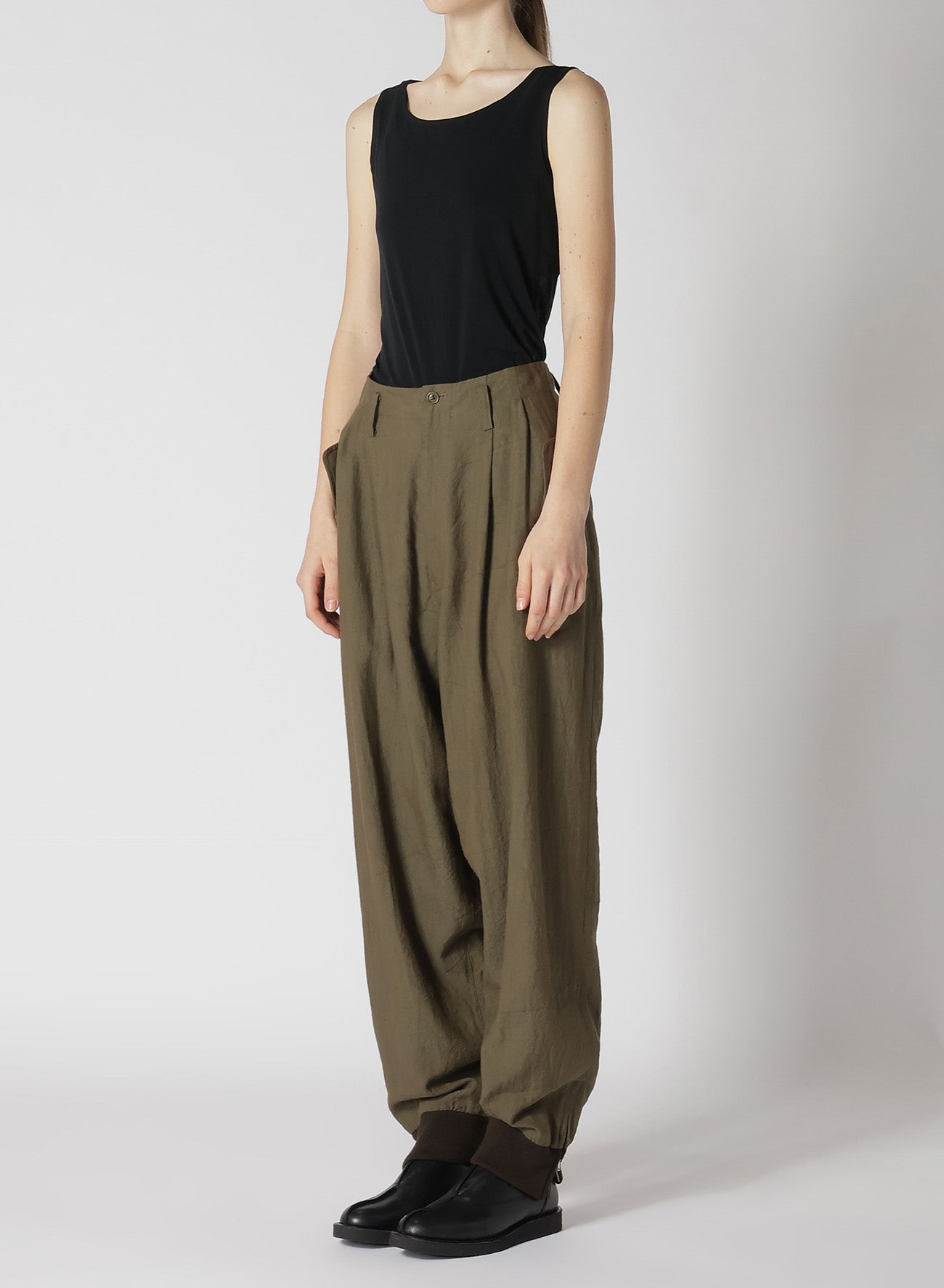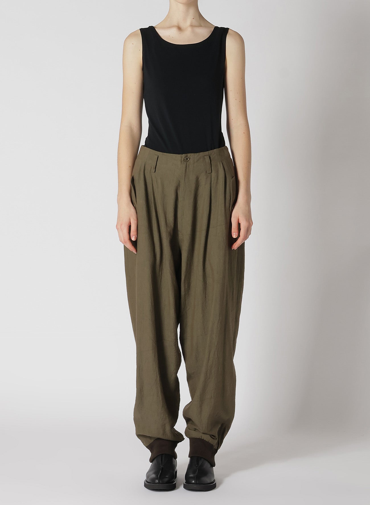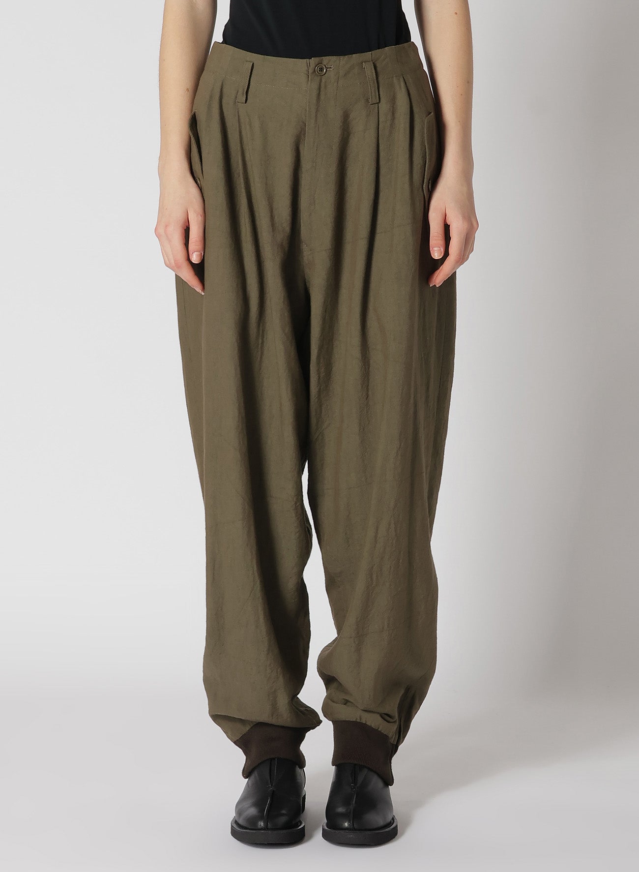 TWILL GARMENT WASH RIB SLEEVE PANTS
