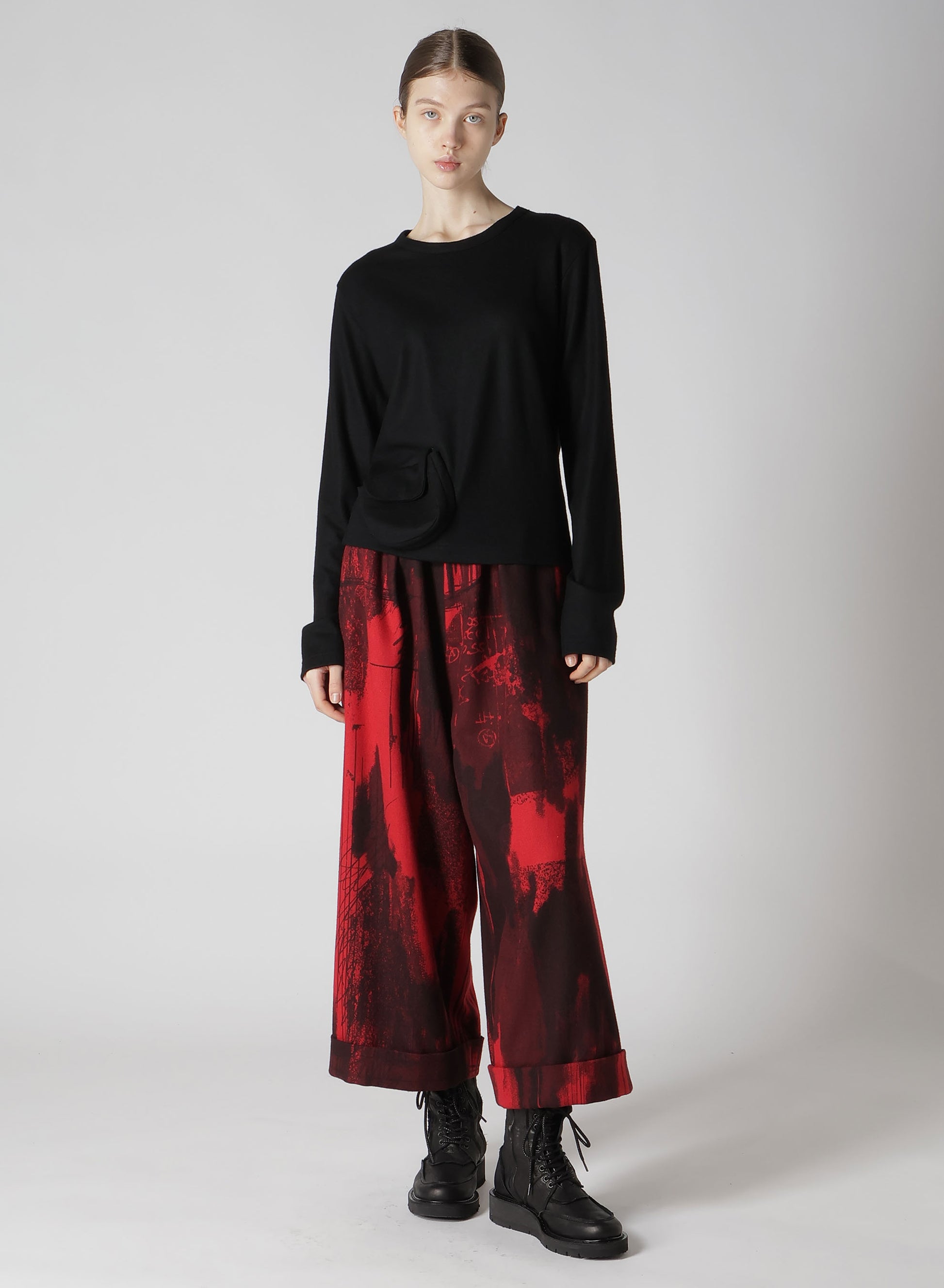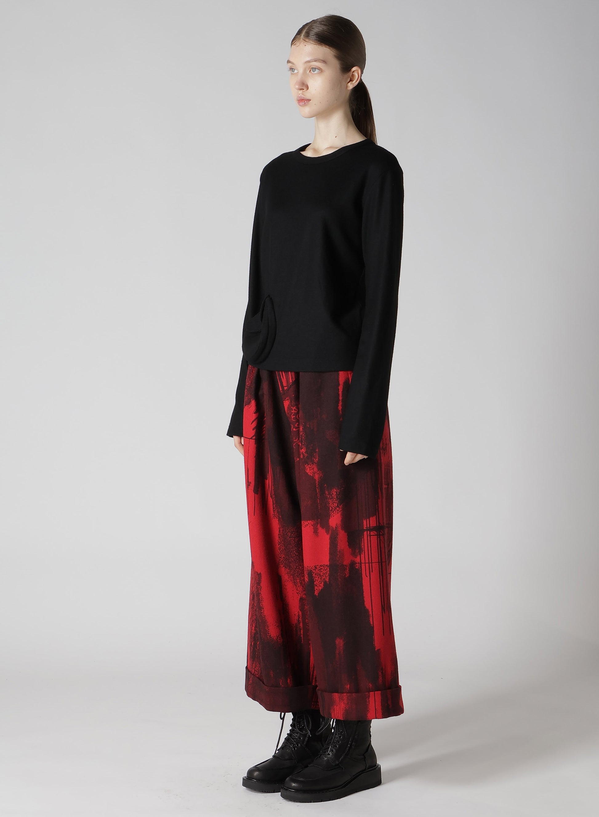 WOOL JERSEY CREW NECK PULLOVER WITH POCKET