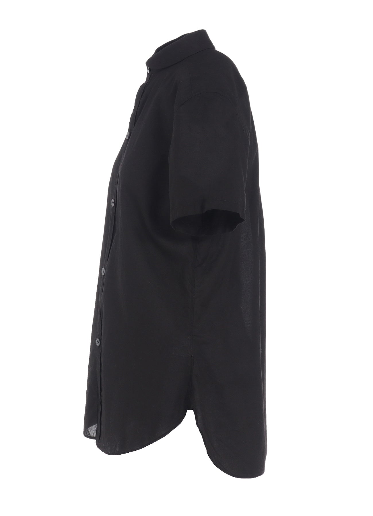 This cotton lawn short-sleeve blouse boasts elegant translucency and moderate firmness. Its clean silhouette is ideal for layering under a jacket or knitwear.