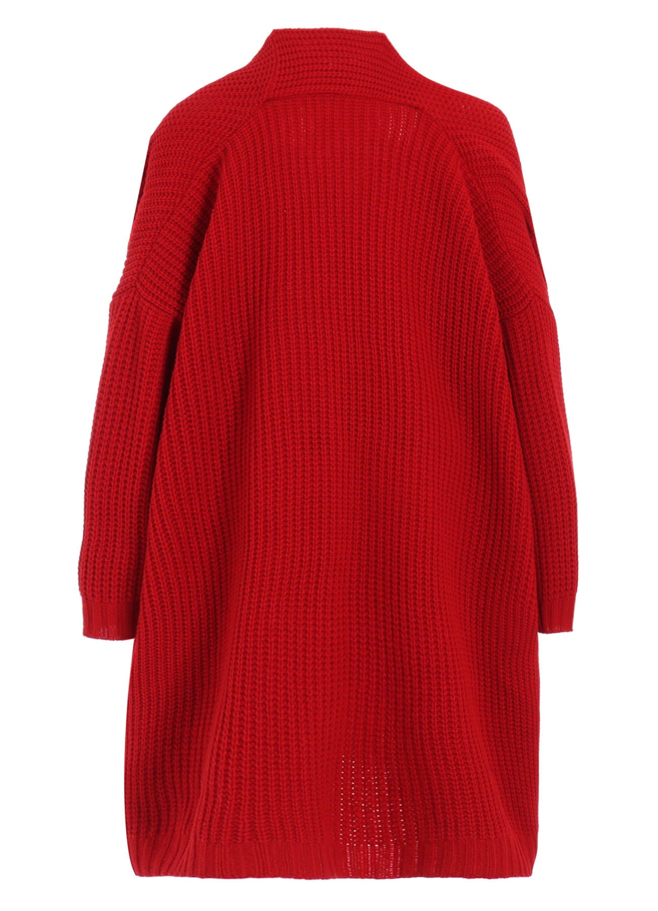 - - 긴 소매를 가진 중간 길이의 카디건.