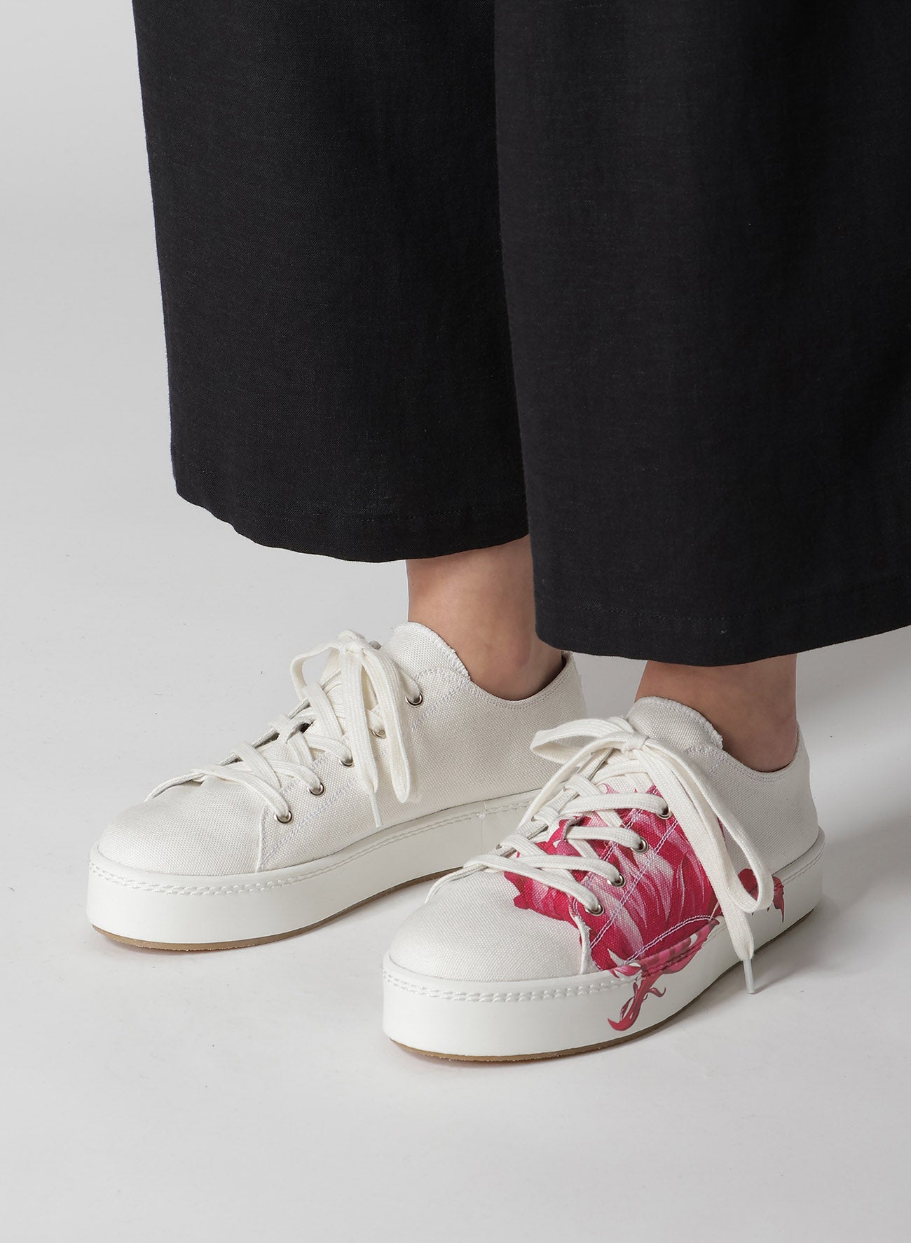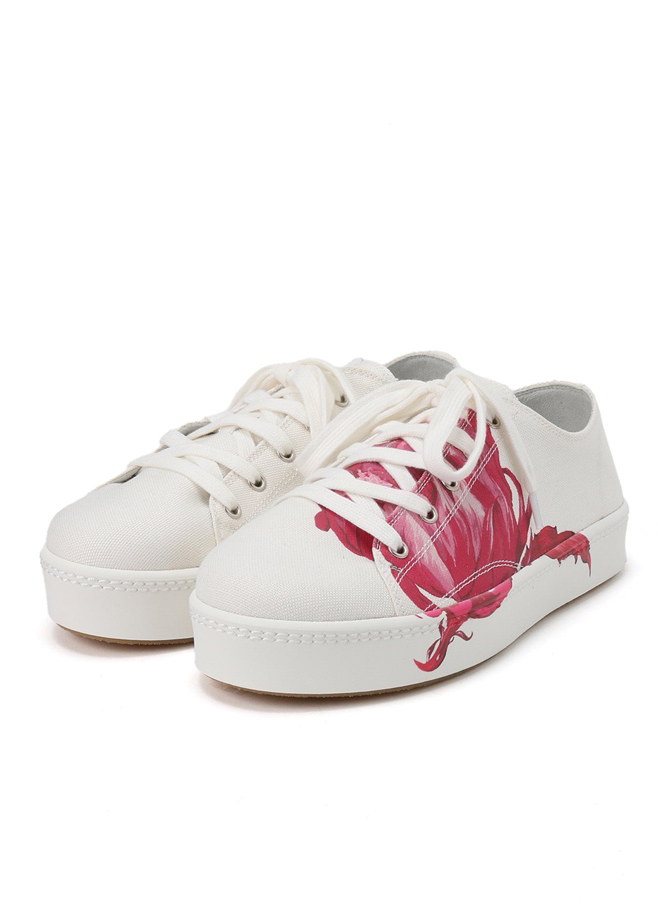 이 제품은 Y's....의 상징인 핑크 선인장 패턴의 로우컷 스니커즈입니다. 혀에서 측면과 밑창까지 과감한 프린트로 숙련된 신발 장인이 정교하게 제작했습니다. 참고: 사용 시 프린트가 벗겨질 수 있으며, 전체 밑창 교환은 불가합니다.