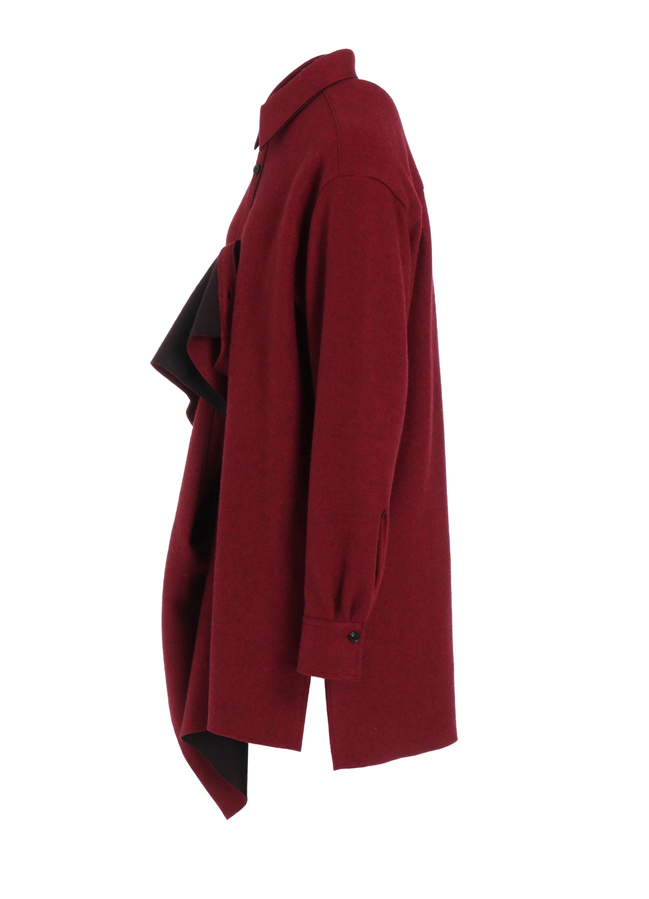 This wool-blend long sleeve shirt features warm fabric perfect for autumn and winter. The front part adds a striking accent to the design.