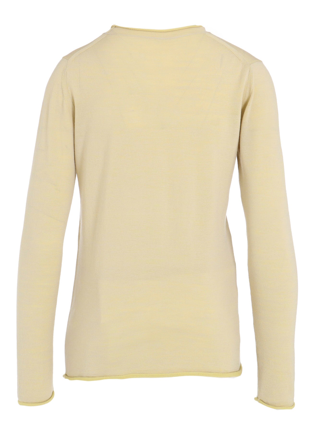 This crew-neck knit made from wool features a clean and simple silhouette, making it easy to pair with any pants. The use of contrasting colors adds an accent to your outfit.