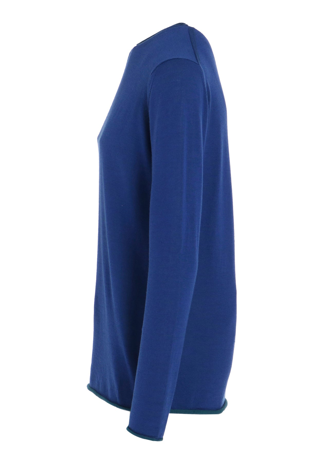 This crew-neck knit made from wool features a clean and simple silhouette, making it easy to pair with any pants. The use of contrasting colors adds an accent to your outfit.