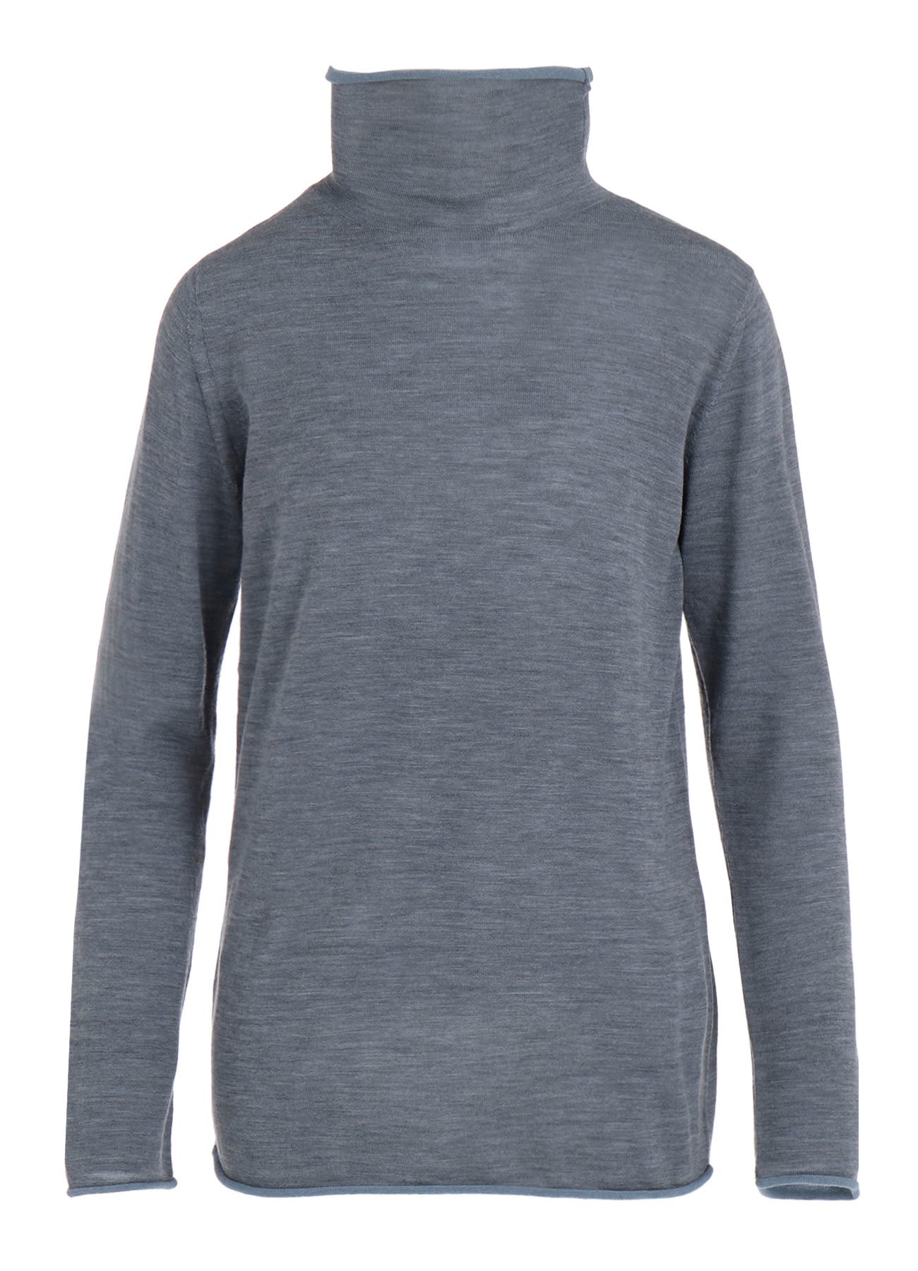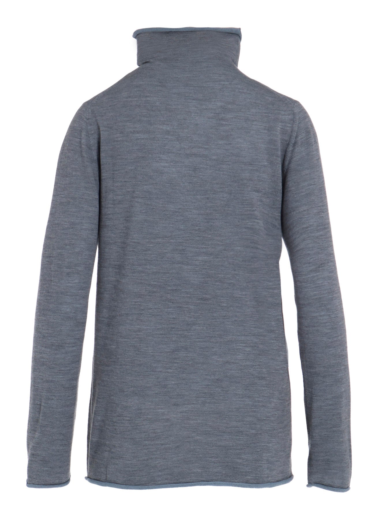 This wool turtleneck knit offers a clean, simple silhouette that pairs effortlessly with any pants. The color-block design adds an accent to your outfit, ensuring both style and versatility in your wardrobe throughout the season. It's an ideal piece for layering and creating coordinated looks.