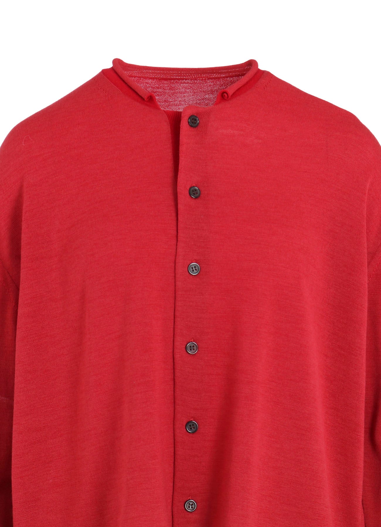 A wool knit cardigan with a standout color scheme that serves as an accent in your outfit. It's an ideal piece for a light throw-over, offering both style and functionality. This cardigan not only provides warmth but also enhances your overall look with its unique design elements.