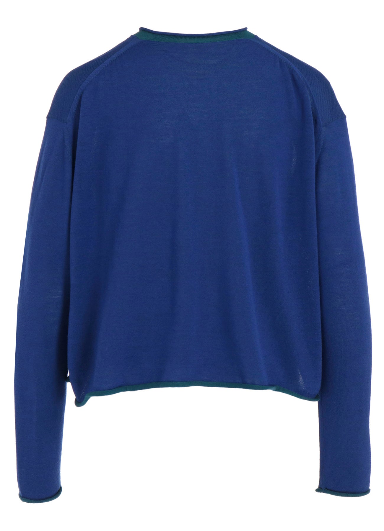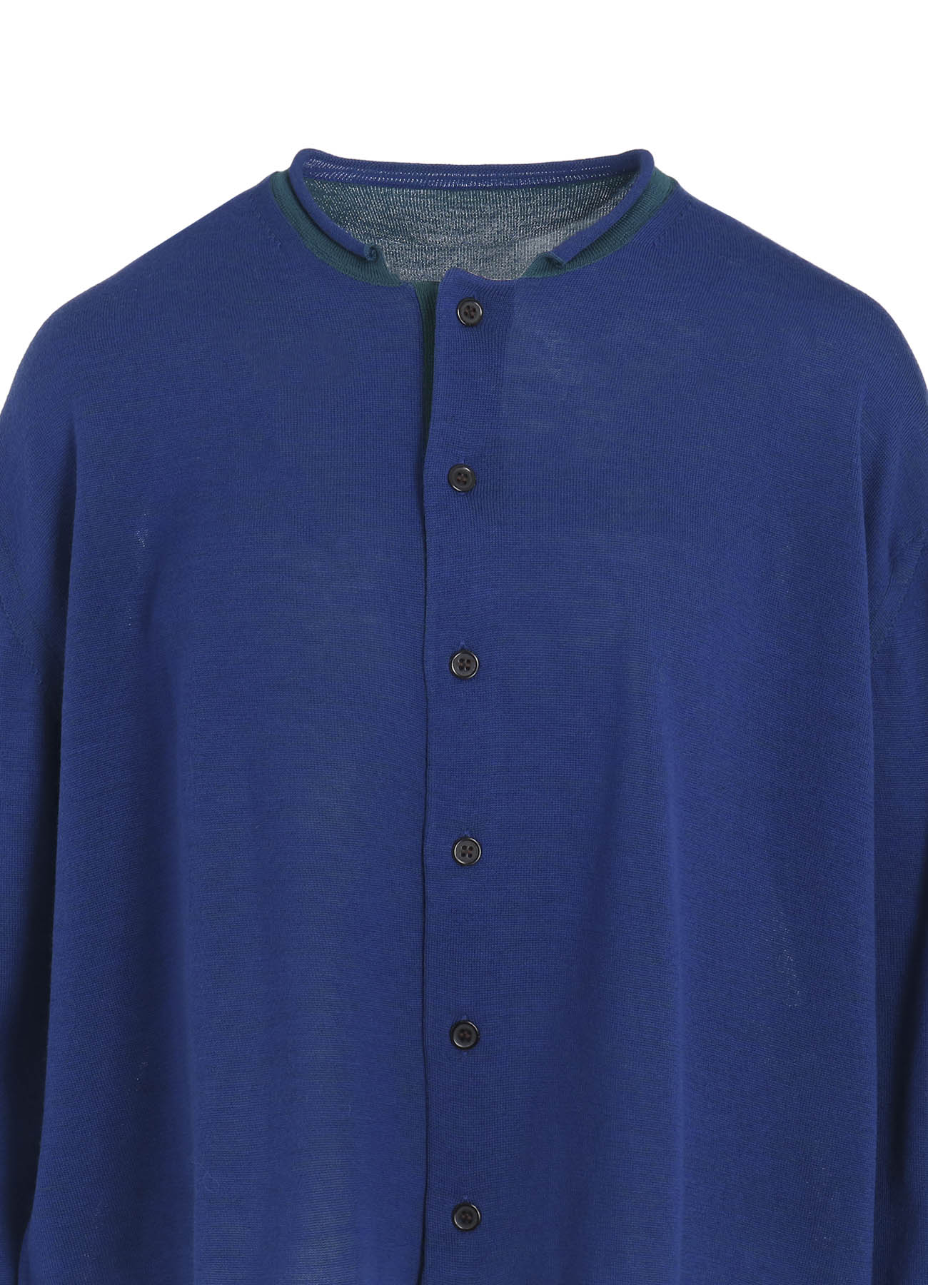 A wool knit cardigan with a standout color scheme that serves as an accent in your outfit. It's an ideal piece for a light throw-over, offering both style and functionality. This cardigan not only provides warmth but also enhances your overall look with its unique design elements.