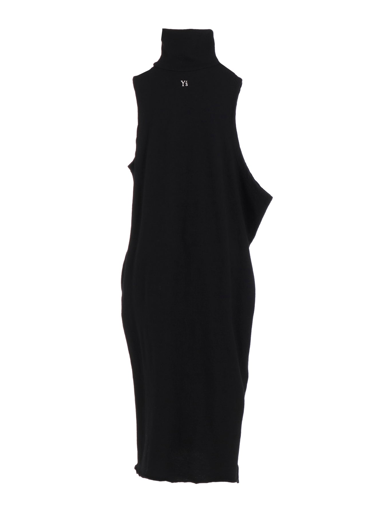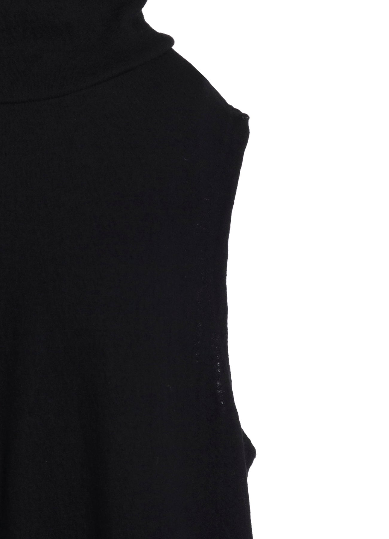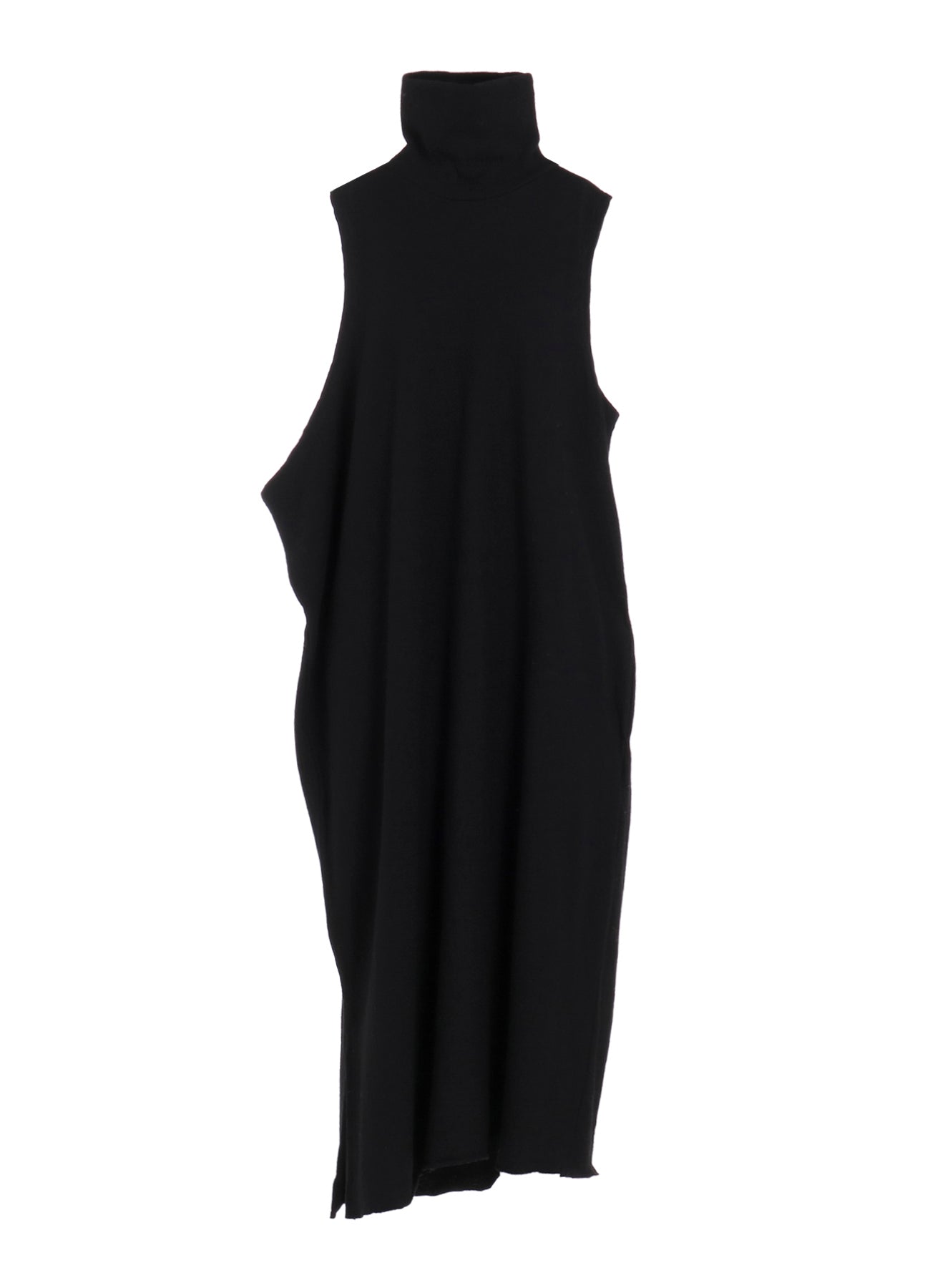 Boiled wool sleeveless dress with an accentuated texture due to fulling. Its asymmetric silhouette makes it a versatile piece for layering over a top or knitwear. Enjoy styling this in various outfits without being restricted by its individuality.