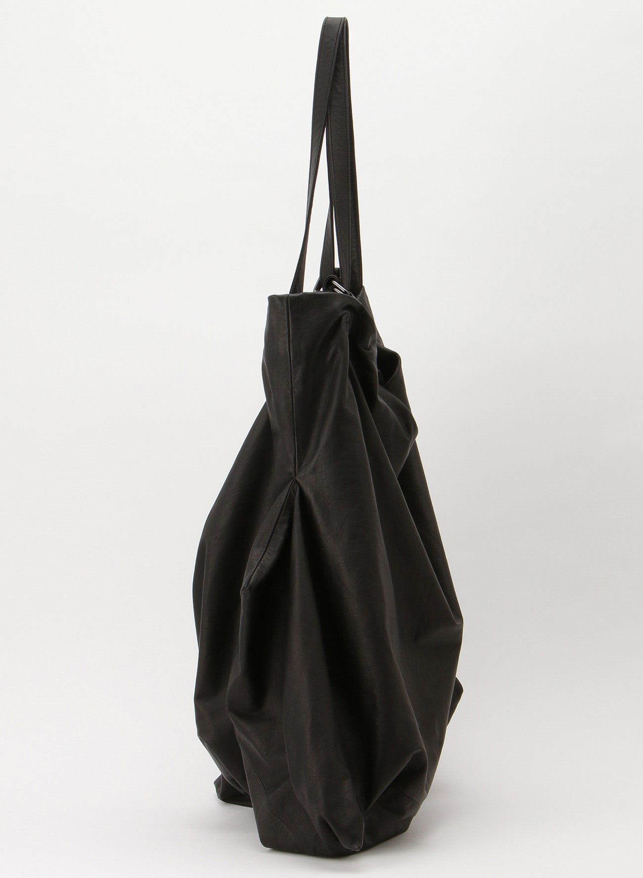 A soft and supple Unevenness tote with strikingly lifted ridges and a draped design. The bag interior is slightly elevated to maintain its draped look, even when filled. Made from soft garment leather, it preserves the natural characteristics of leather, which may include minor scratches and color variations.