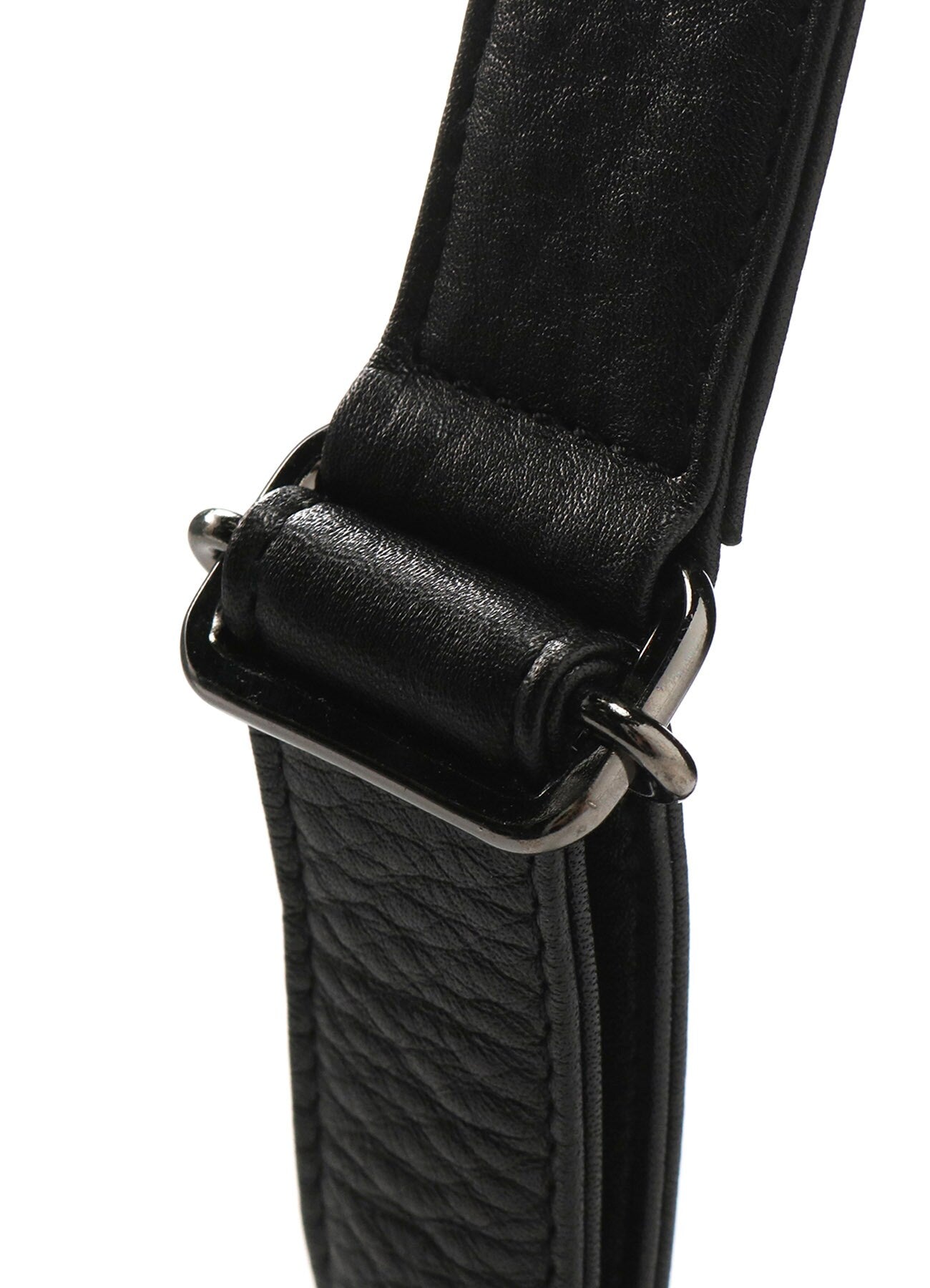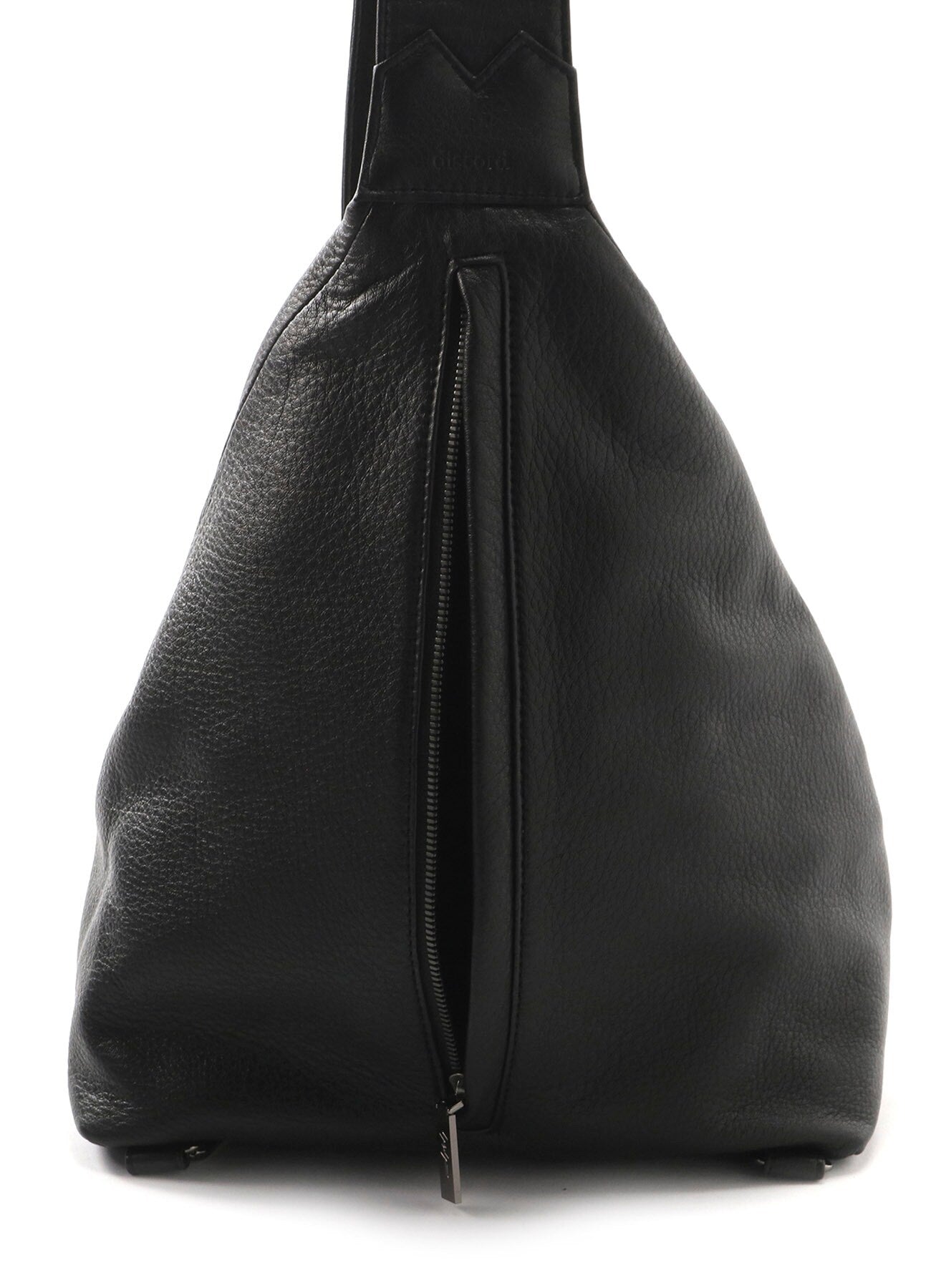 A signature piece from discord Yohji Yamamoto, the unique one-shoulder bag features pleat-like design elements and soft shrink leather. It creates a beautiful drape when filled, enhancing its presence when worn. With all functionalities on the backside, it offers high security and a sleek, uninterrupted design.