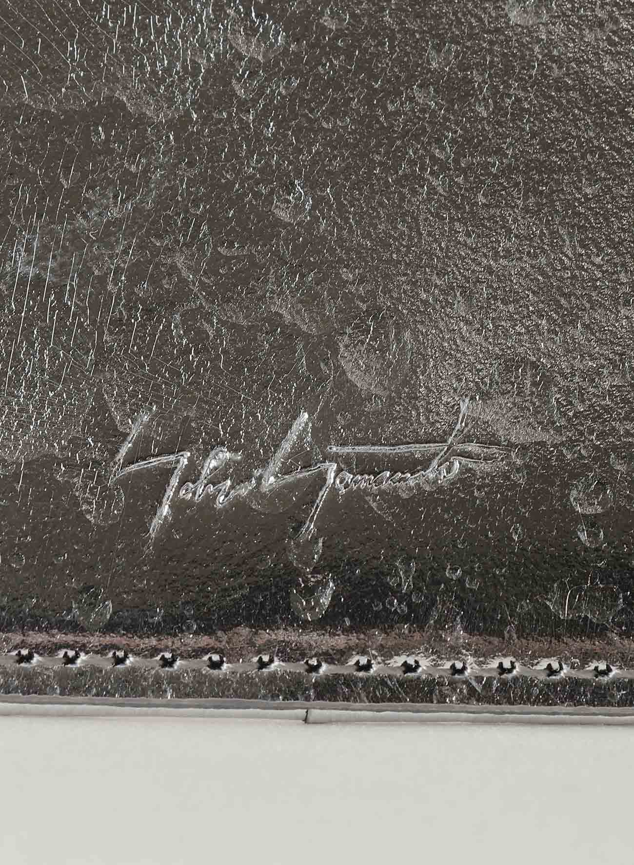 This sleek business card holder matures beautifully over time as its leather card slots adapt and become more dimensional. Crafted with foil-applied leather and featuring randomly splattered enamel droplets, each item is unique due to the artisan's handwork, resulting in individual variations in the water droplet patterns.