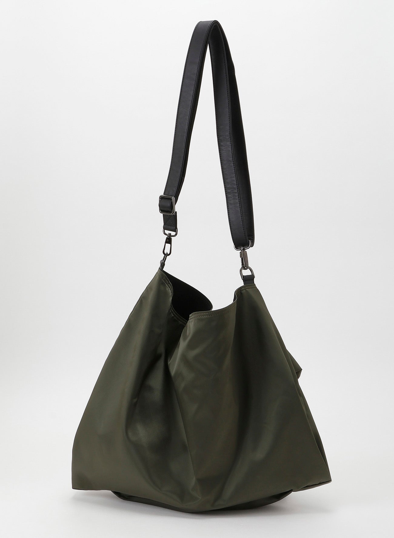 This minimalistic nylon bag series features a design without any combination patterns, utilizing only rectangular templates. Two pleats in different directions highlight the subtle sheen of the soft nylon, making it simple yet elegant. Capable of accommodating A4-sized items, the bags are crafted from dense military-like Nylon Twill.