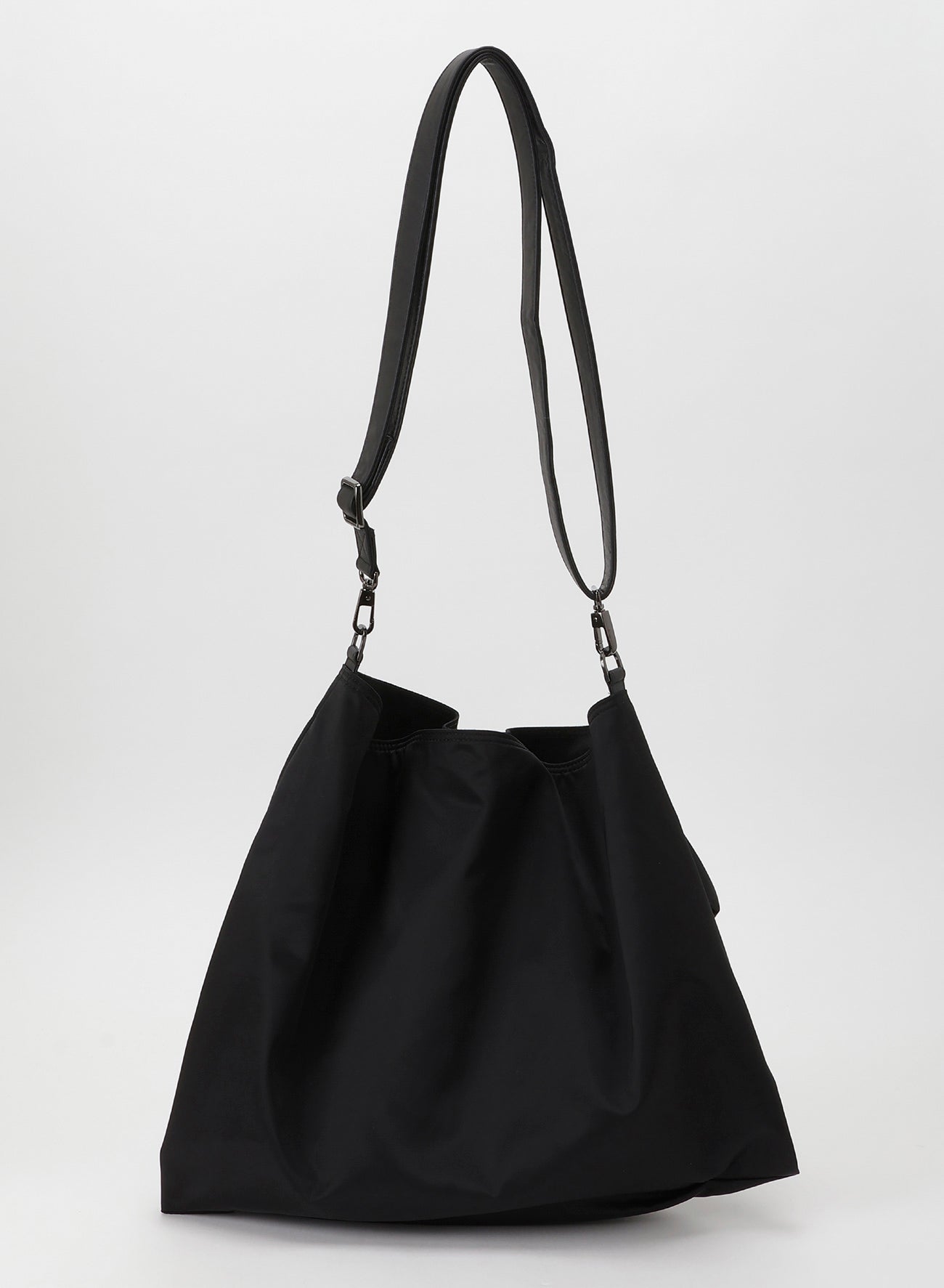 This minimalistic nylon bag series features a design without any combination patterns, utilizing only rectangular templates. Two pleats in different directions highlight the subtle sheen of the soft nylon, making it simple yet elegant. Capable of accommodating A4-sized items, the bags are crafted from dense military-like Nylon Twill.