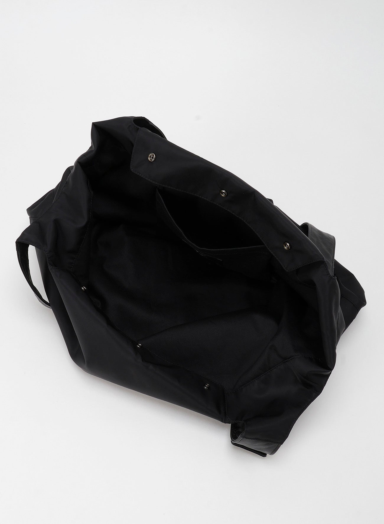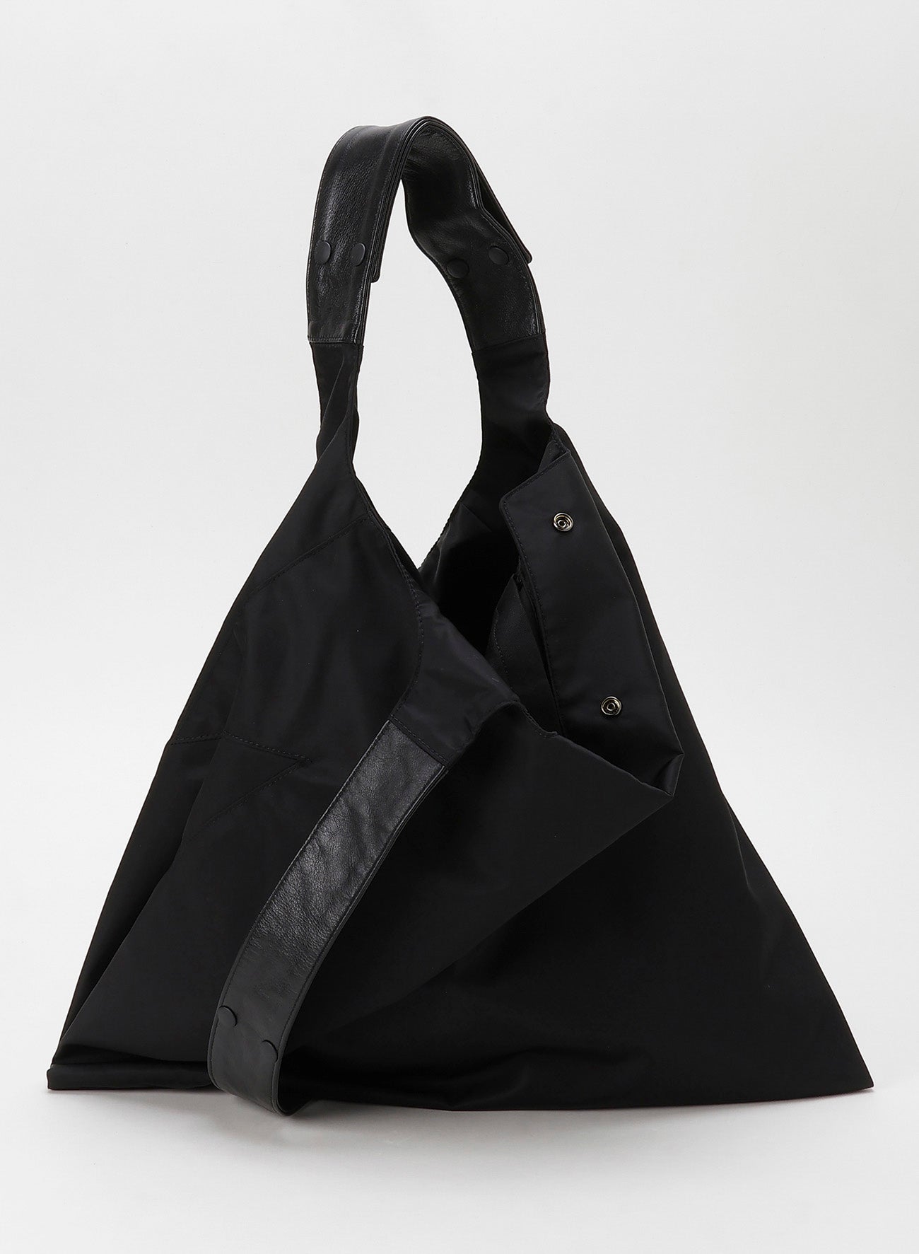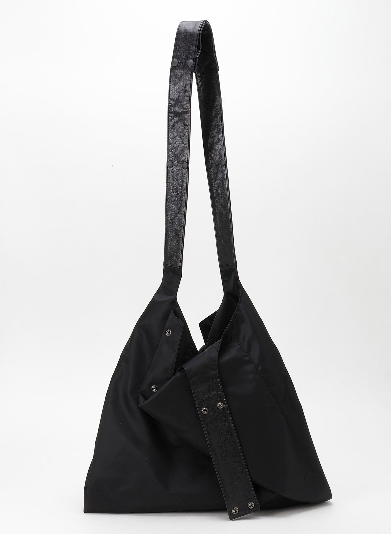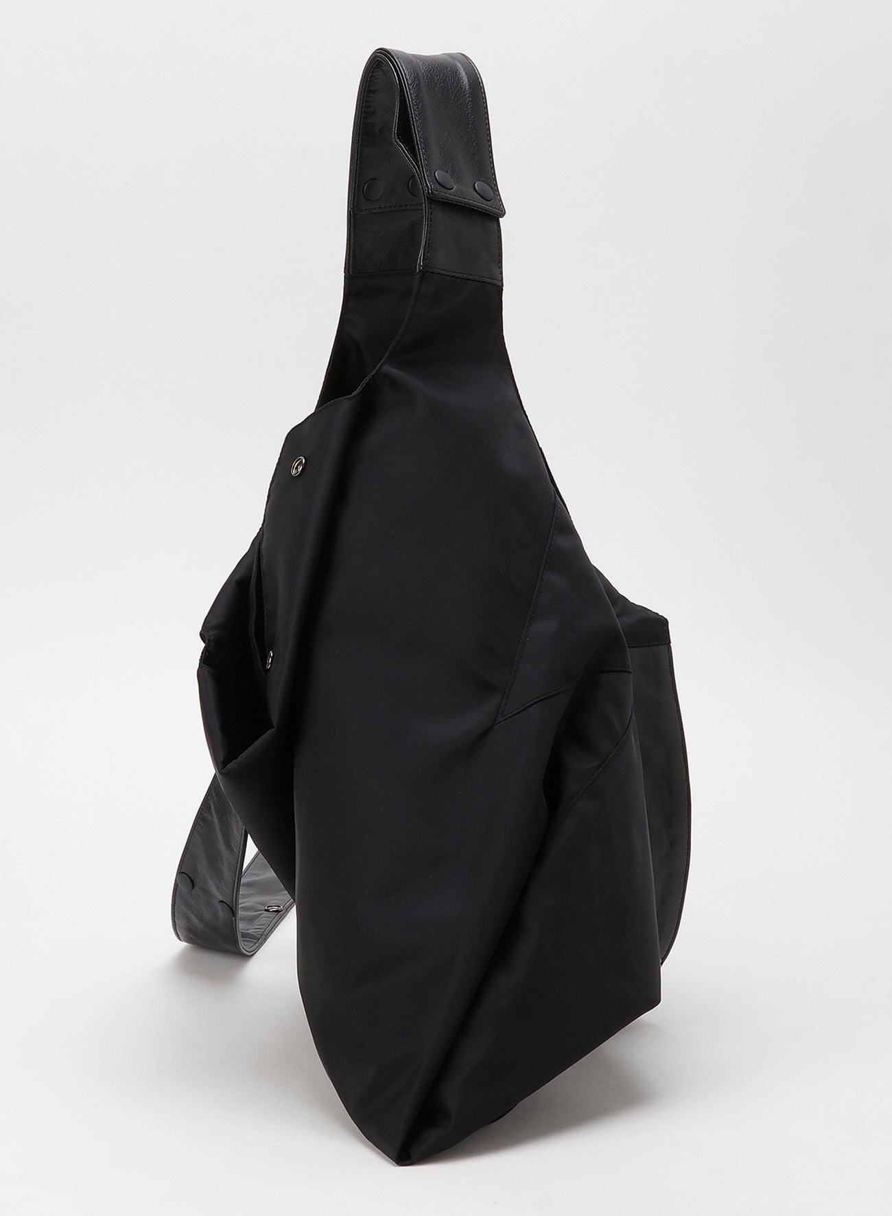 A new nylon material piece from the classic "INFINITE" line has arrived. This piece features a playful side seam 'Y' shape and can be used in 3WAY variations depending on how you attach the clip button. The main material is fine Italian nylon, while soft, glossy garment leather is used as an accent.