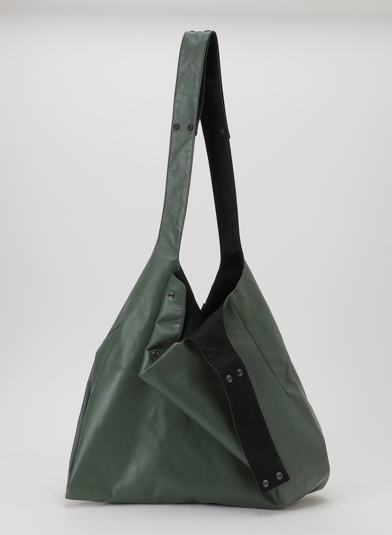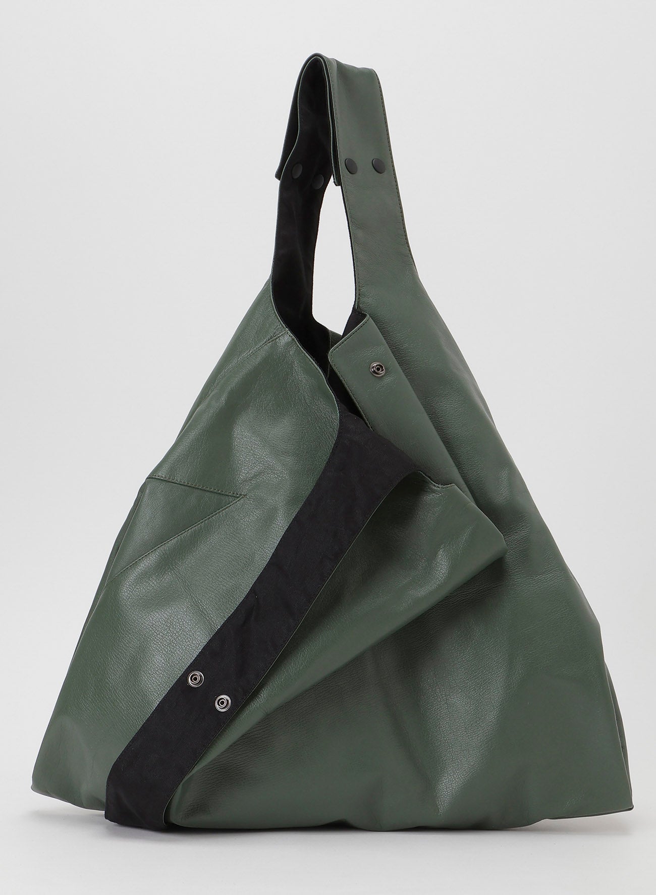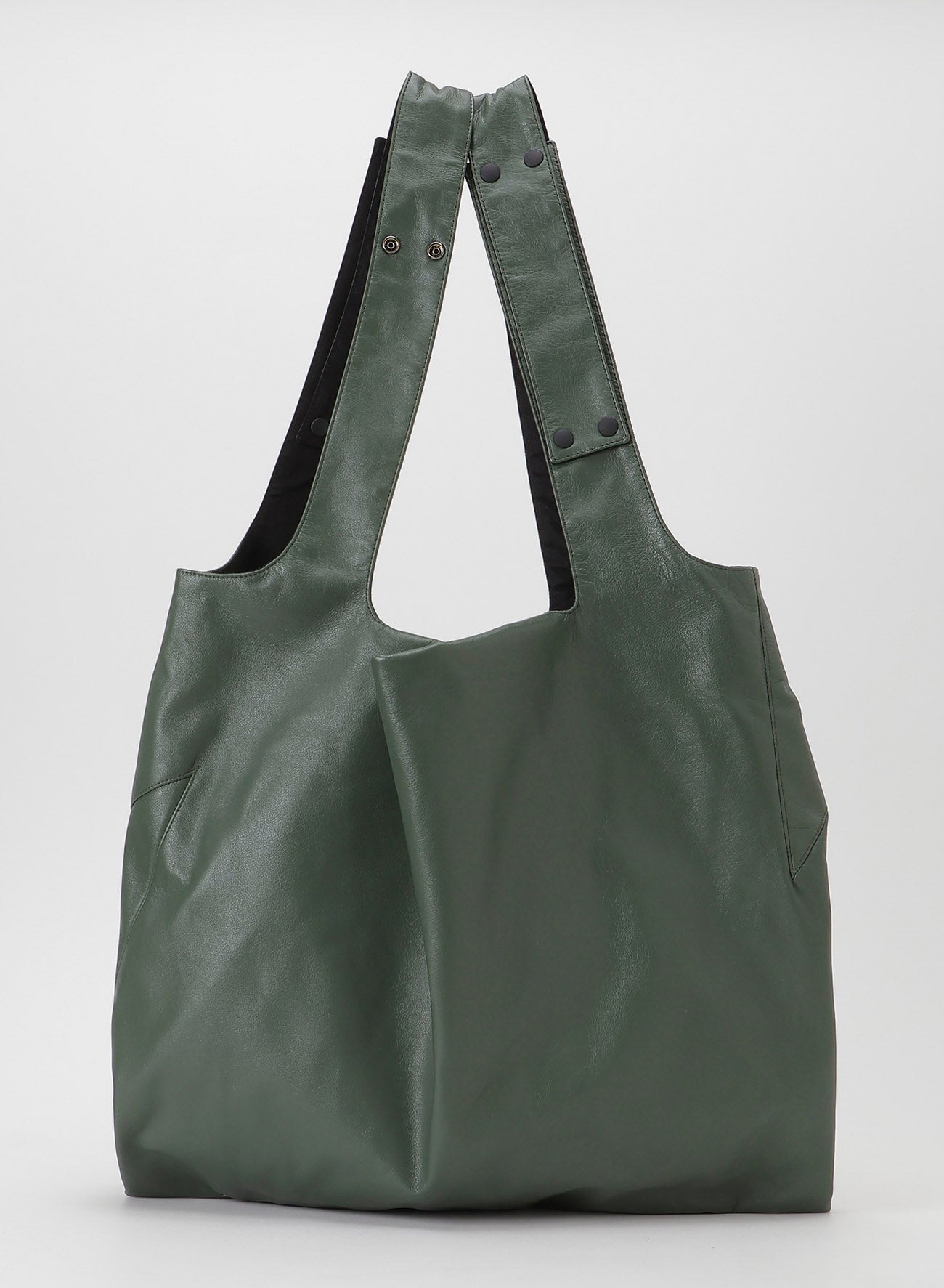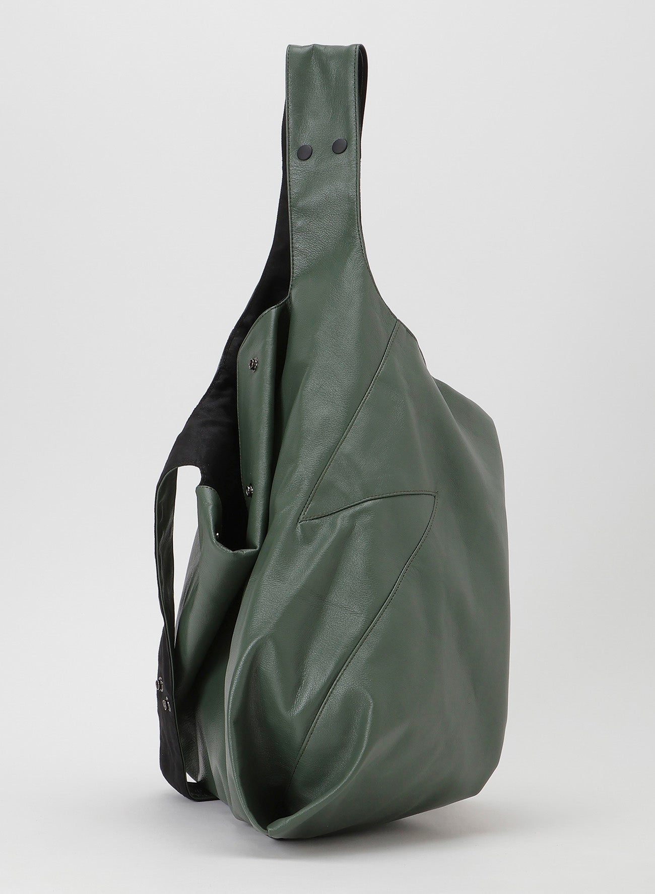 Introducing a new color from INFINITE, this versatile piece can be worn in 3WAY using clip buttons. It features a reversible design with playful Y-shaped side seams. Made from lustrous garment leather and cotton twill, it may show unique imperfections inherent in natural leather.