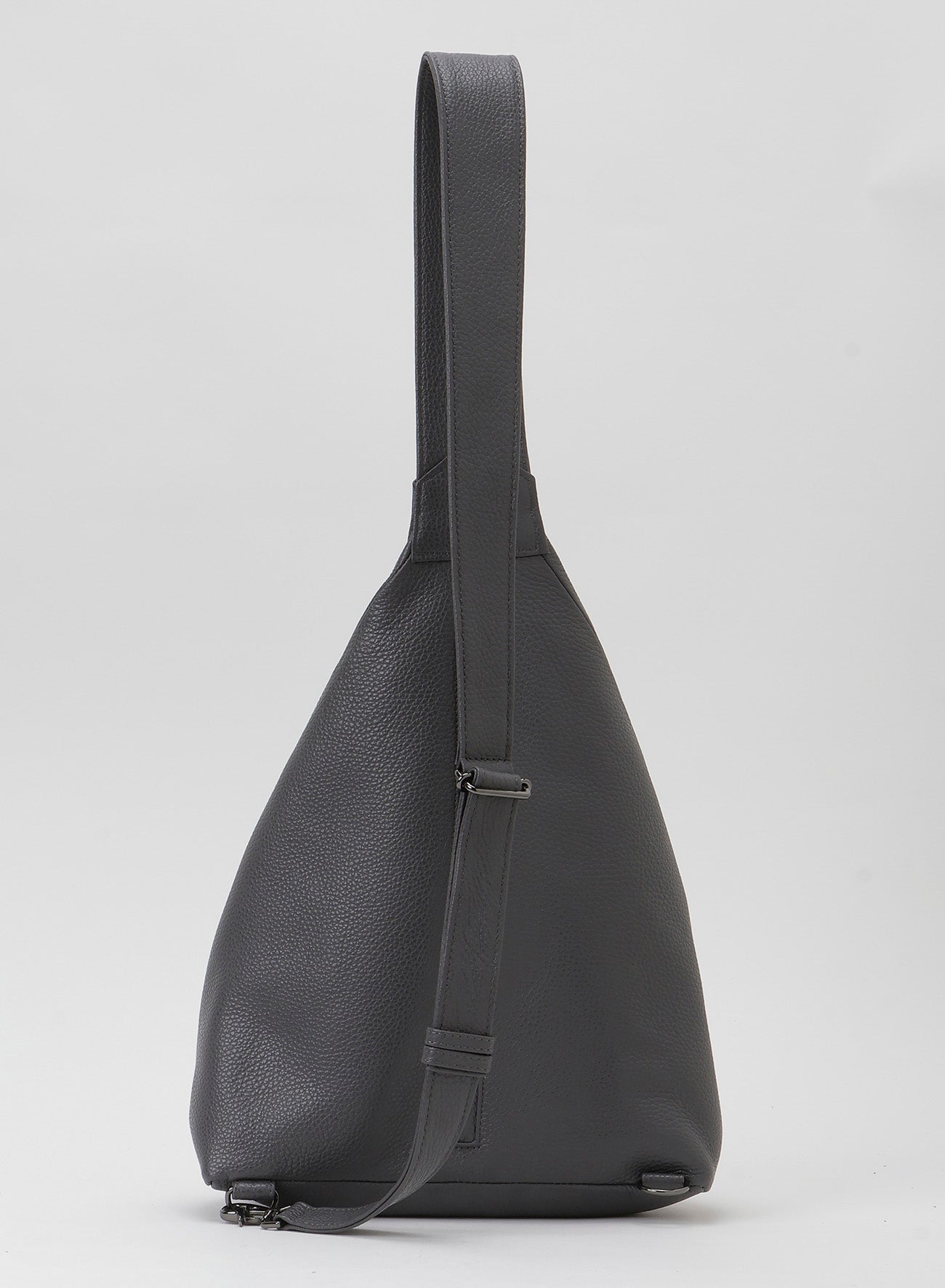 - The bag is crafted with pleat-like details and shrink leather for a striking drapery effect.