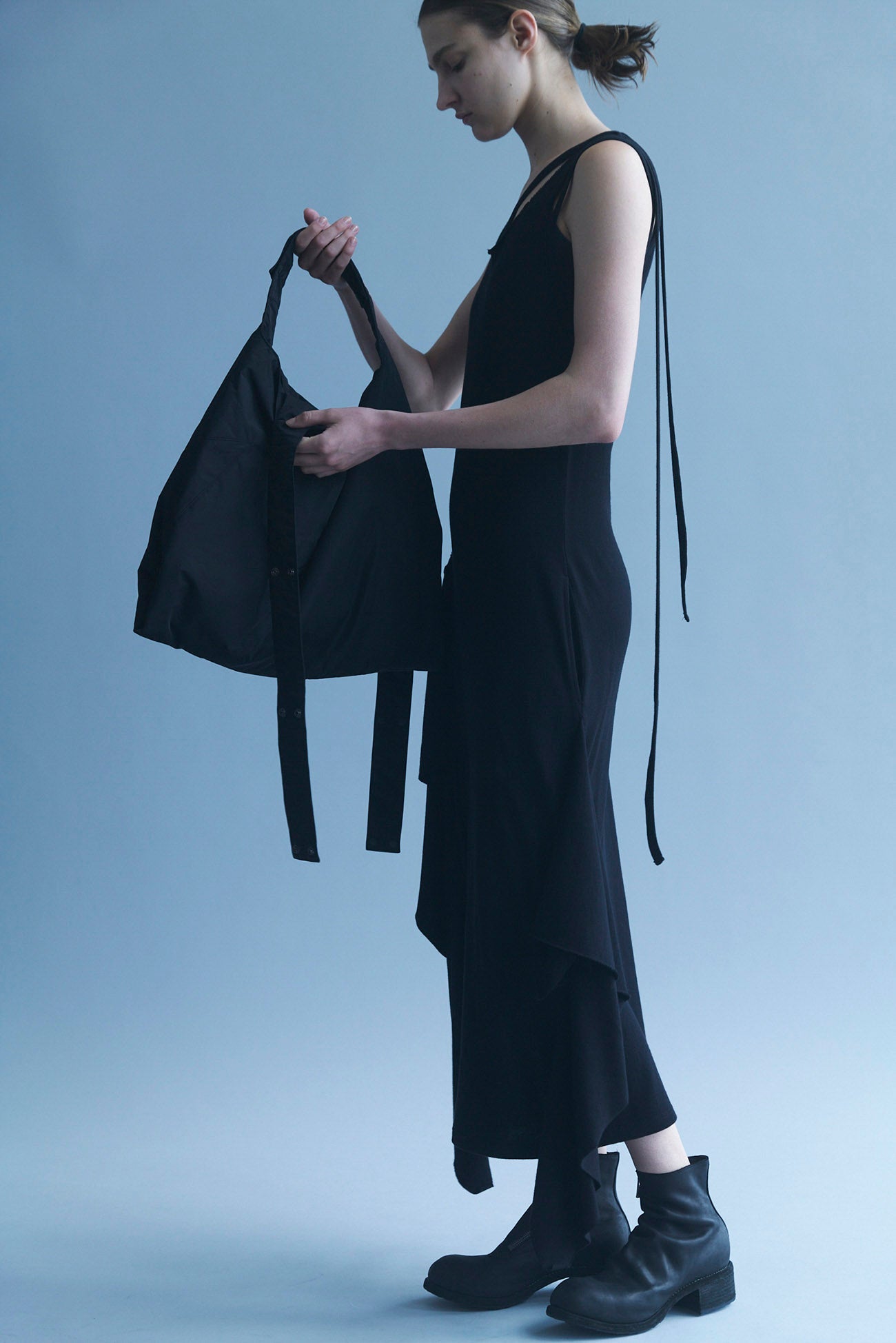 A new release from discord Yohji Yamamoto's signature [INFINITE] bag line offers a reinterpretation of the classic shopping bag. With playful ‘Y’ seams and clip buttons, this versatile bag can be used 3 ways. Made from high-density Twill polyester with padding, it features a plush finish, full of character.