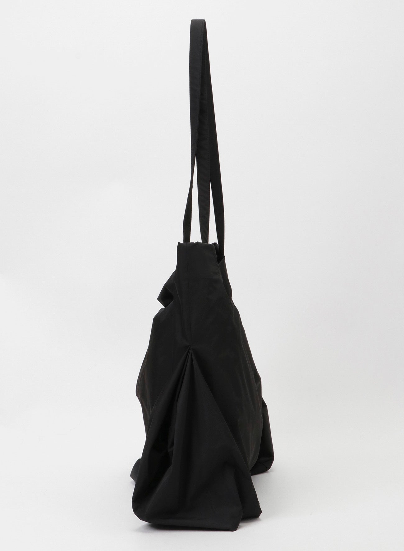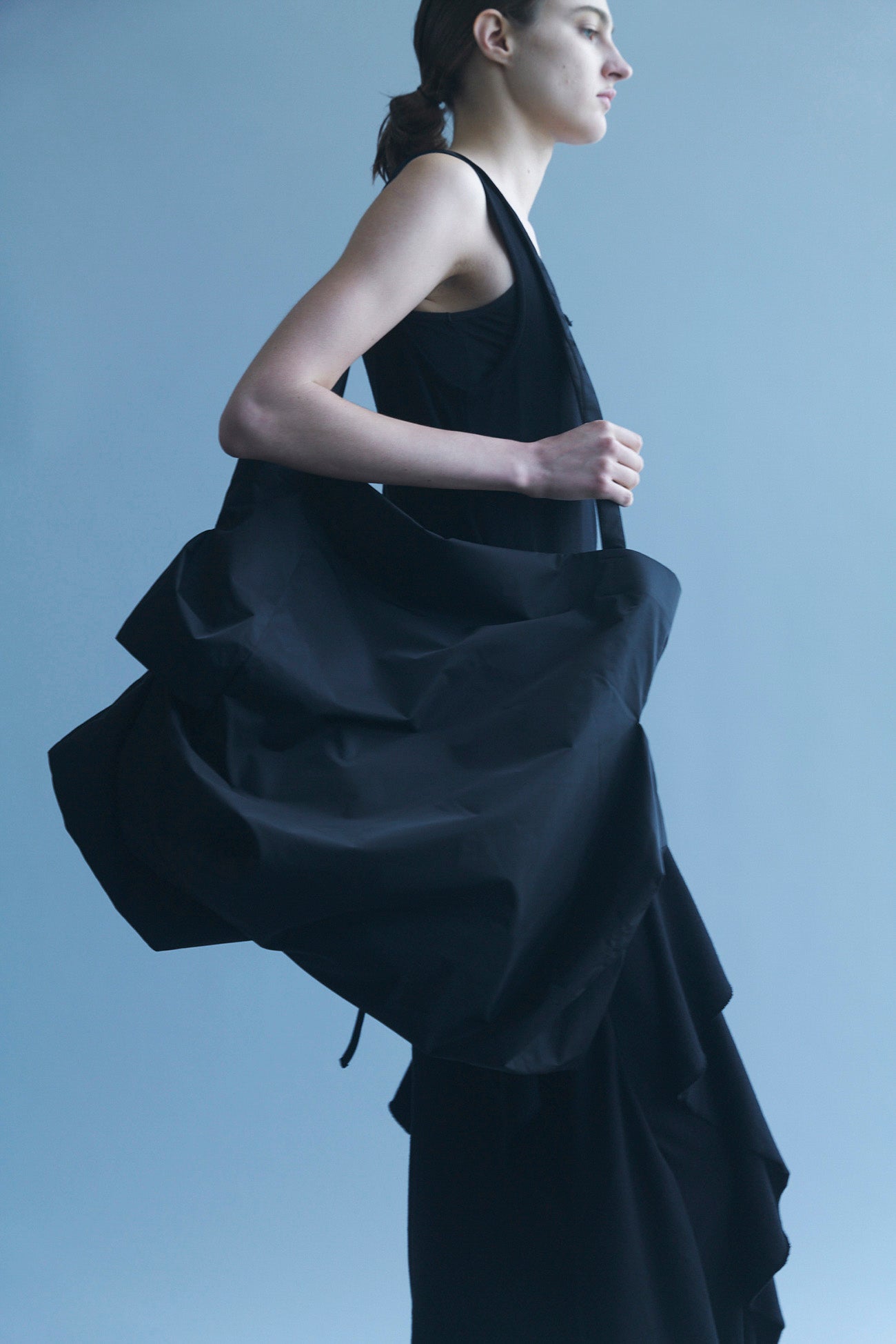 The Unevennss tote from Yohji Yamamoto is a strikingly designed bag with soft features and notable unevenness. Constructed with highly dense Twill using fine polyester yarns known from Yohji Yamamoto collections, its deep black hue is unique for polyester. The design maintains its drapery form, ensuring usability without disrupting its visual appeal.
