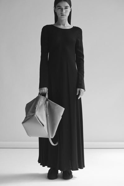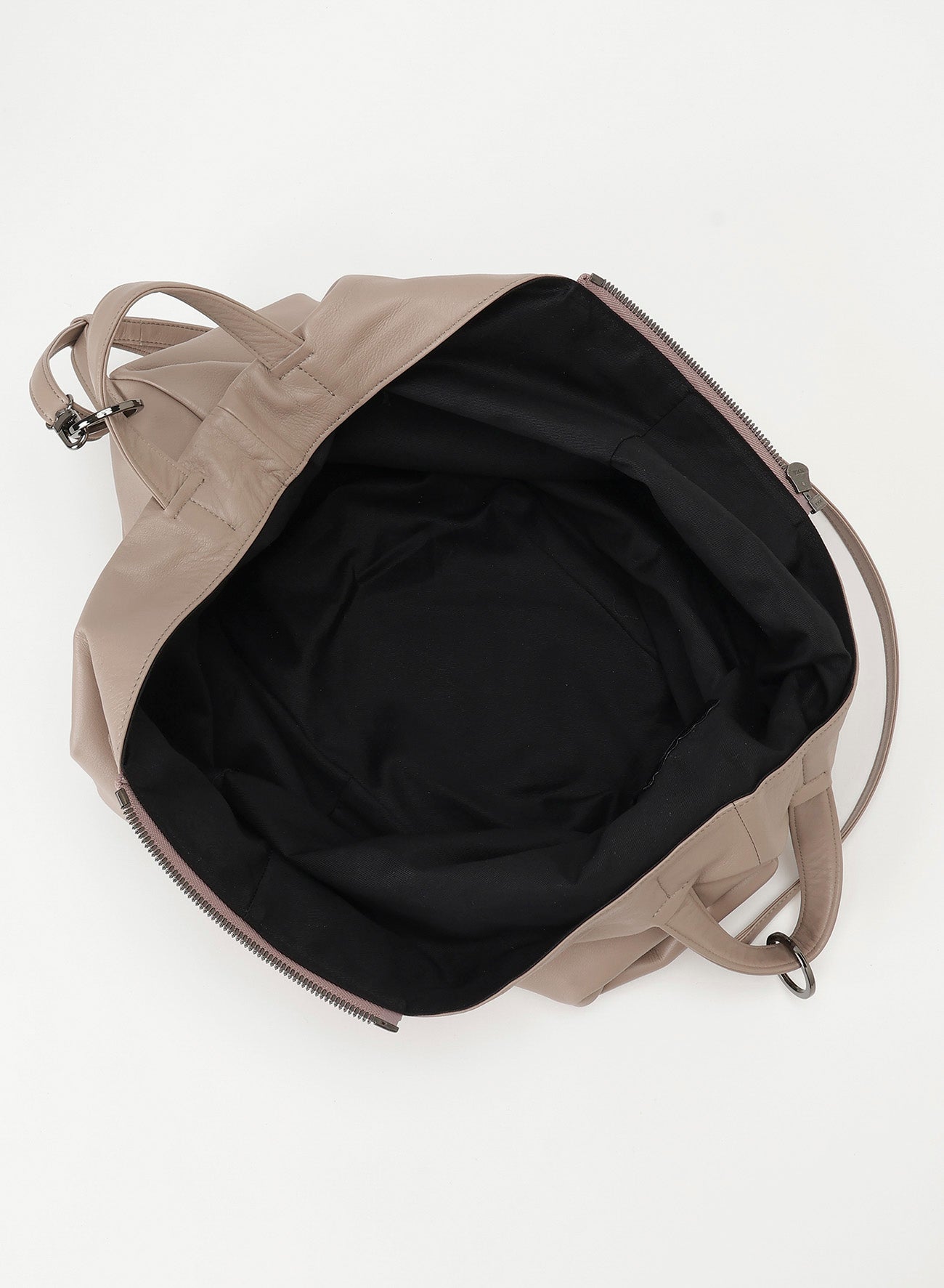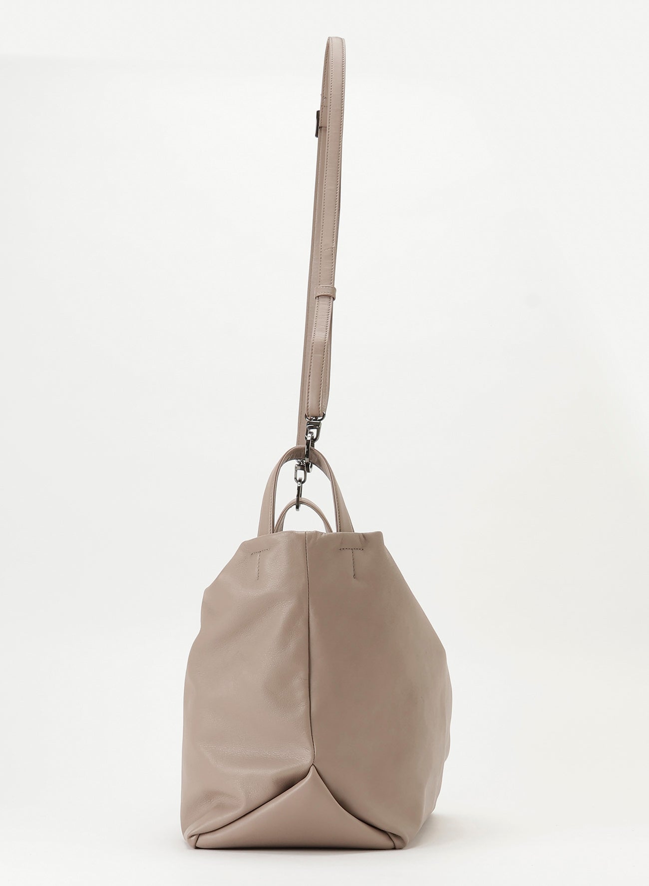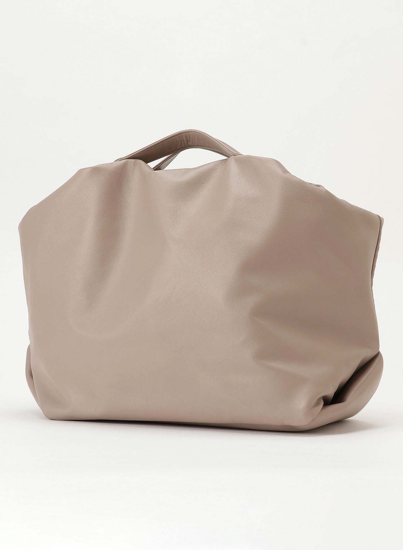 This shoulder bag features a flower bud design and offers 3WAY usage with two types of handles and a shoulder strap. The unique twisted base creates natural drapery when held together. The rings on the handles can be adjusted for convenience and can also be used to attach items like pass cases.