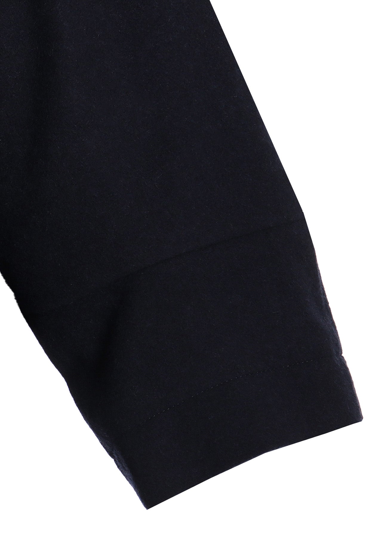This 7/10 coat features raglan sleeves made from soft melton material. Its shorter length allows inner wear to peek through, offering a stylish color contrast. The model showcases a sample item, so actual product sizes and textures may differ. For precise details, please refer to the size information.