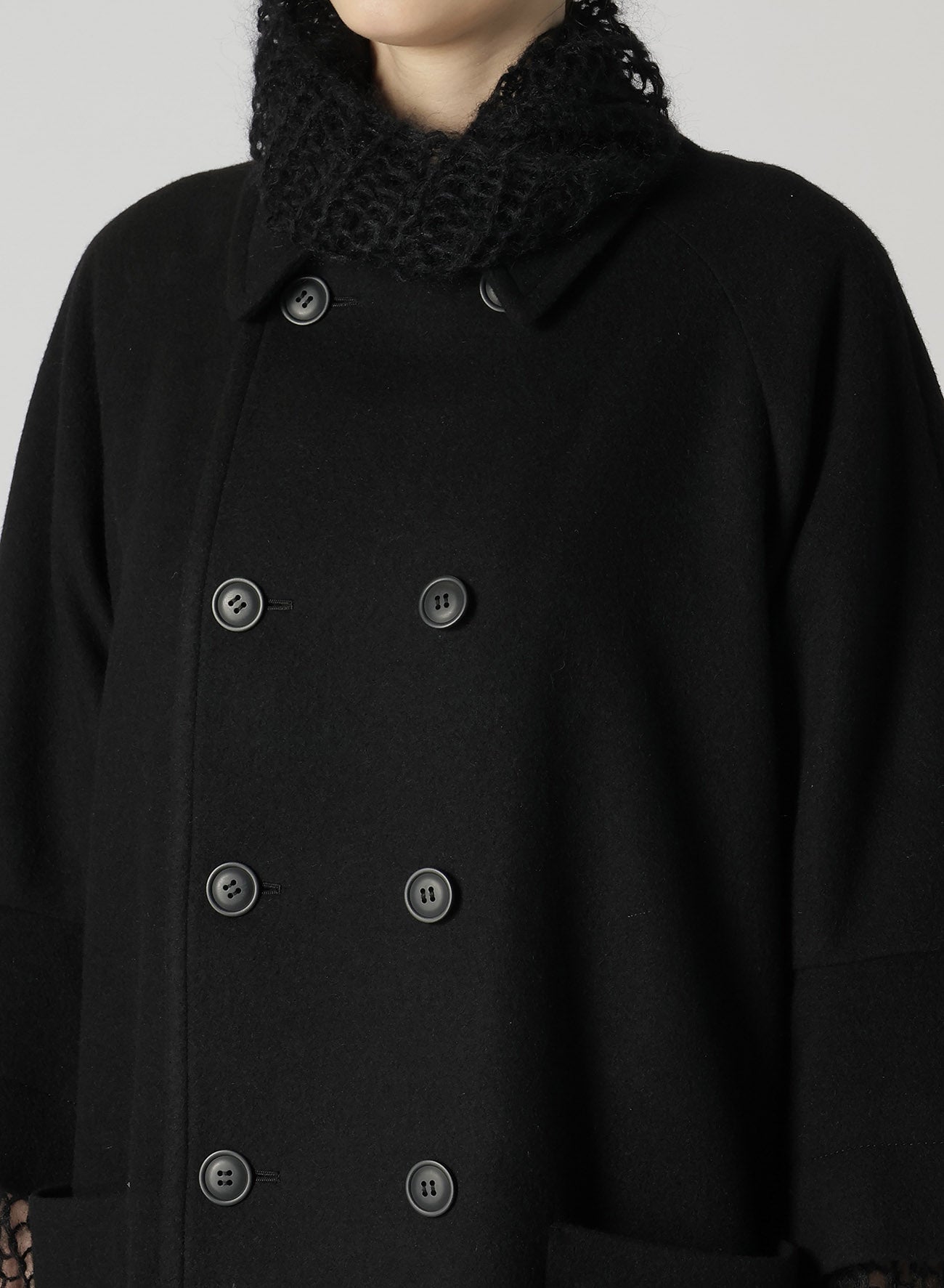 This raglan sleeve coat features a soft melton material with a seven-tenths length, revealing the inner wear for a unique color combination design. Sample items are used in model images; there may be slight differences in size and feel from the final product. Please refer to SIZE INFO for details.