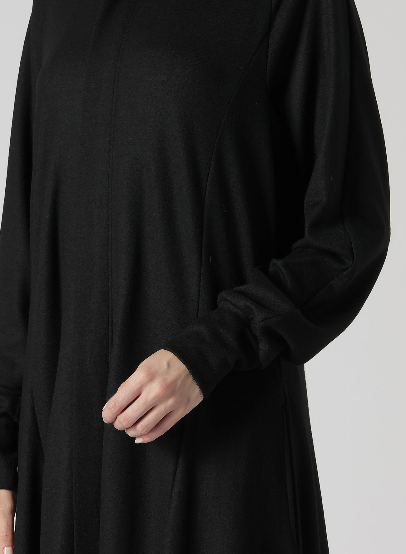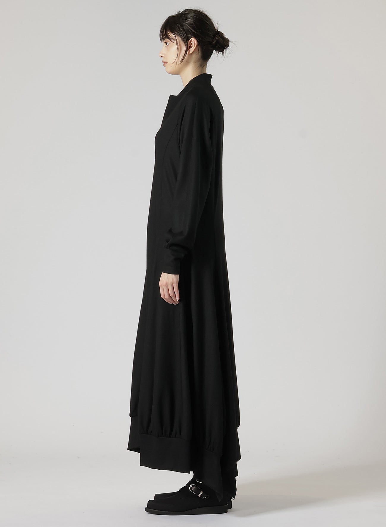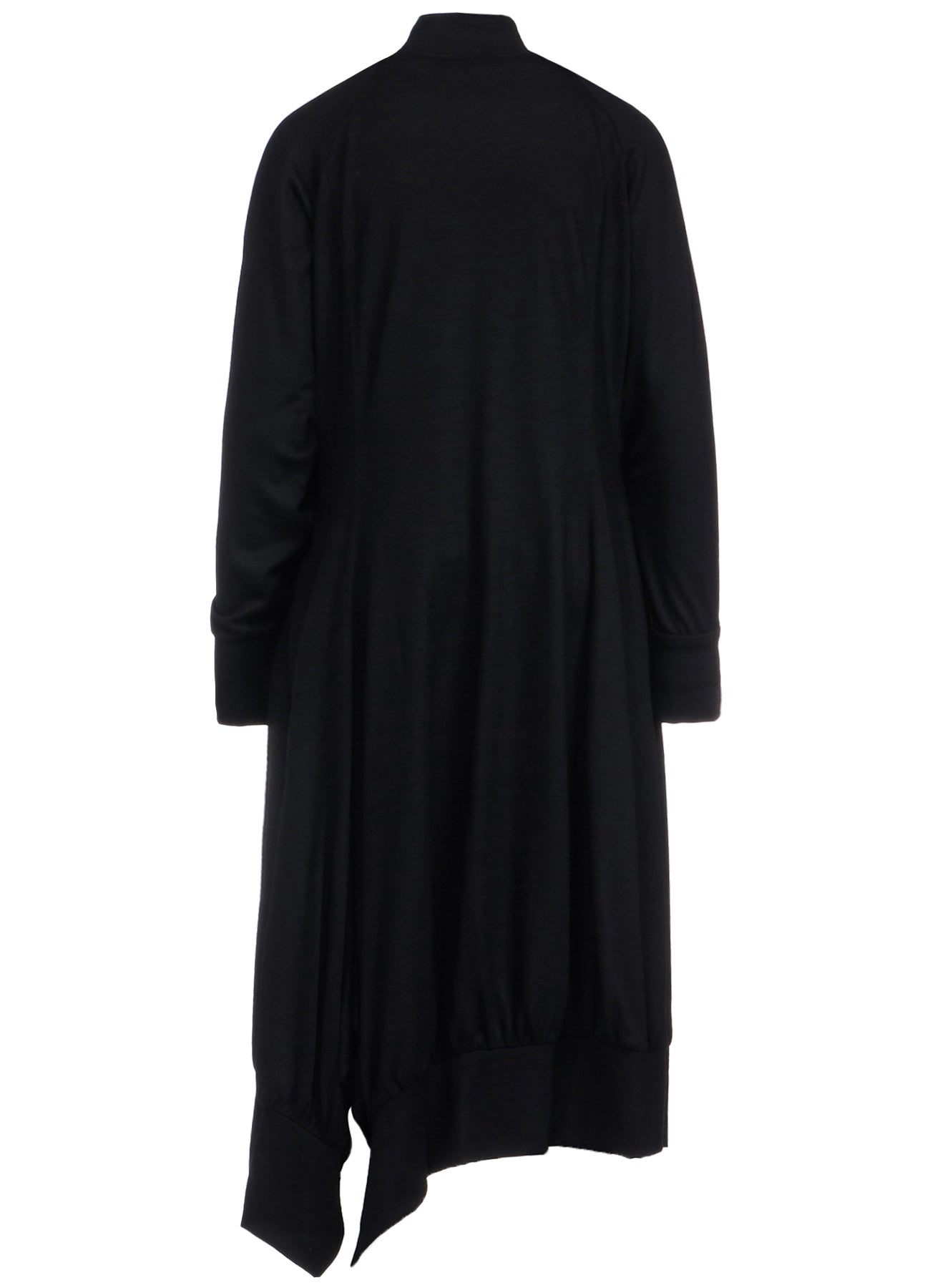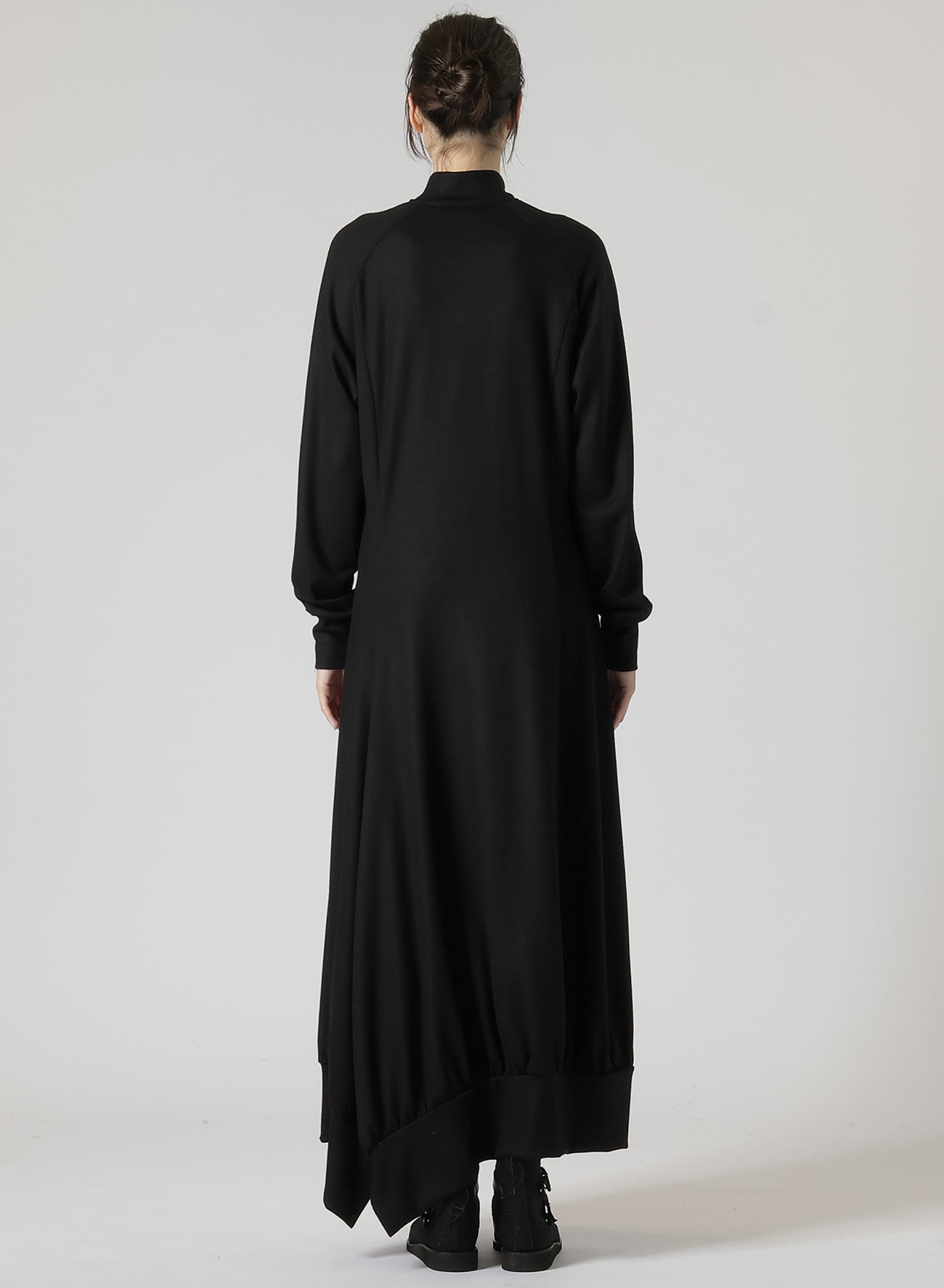 This dress combines a textured feel and an elegant atmosphere, with an asymmetric design at the hem that adds sophistication. The front can be opened and closed with a zipper, making it an easy-to-wear item. Made of a stretchy, jersey fabric, it offers comfort and flexibility.