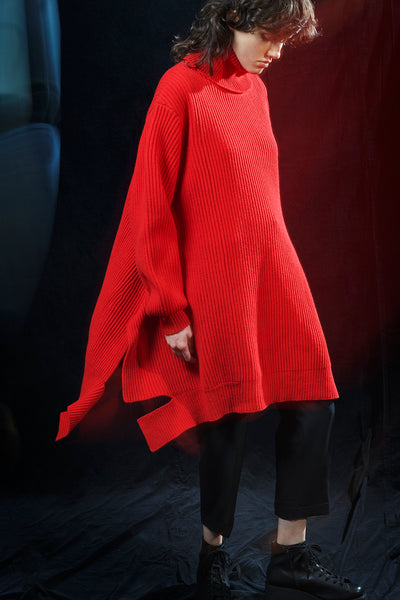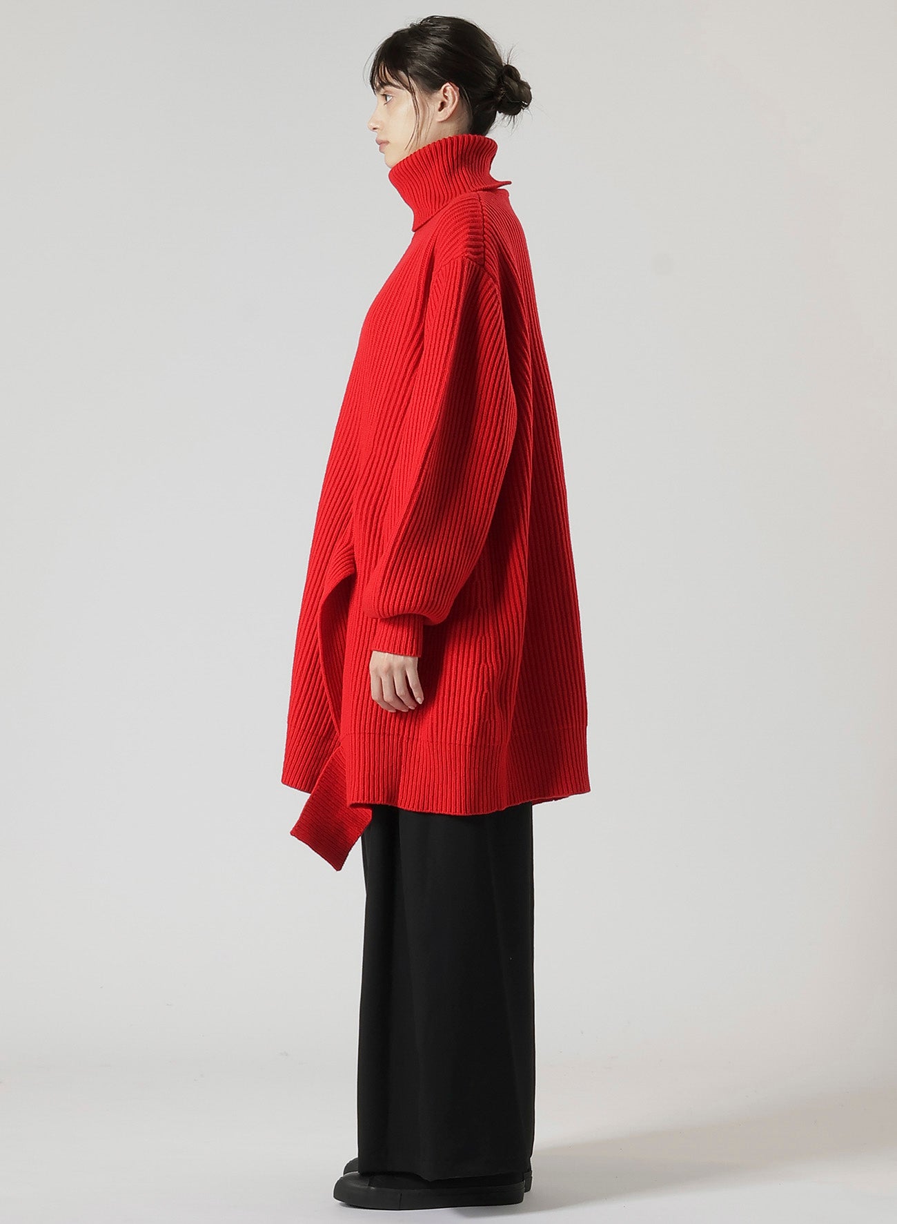 A Big Silhouette Turtleneck Knit offers a relaxed fit, perfect for a cozy and relaxing style in chilly seasons. It can be styled differently with various pants. The model images use sample items; actual products might differ in size and texture. Refer to SIZE INFO for details.