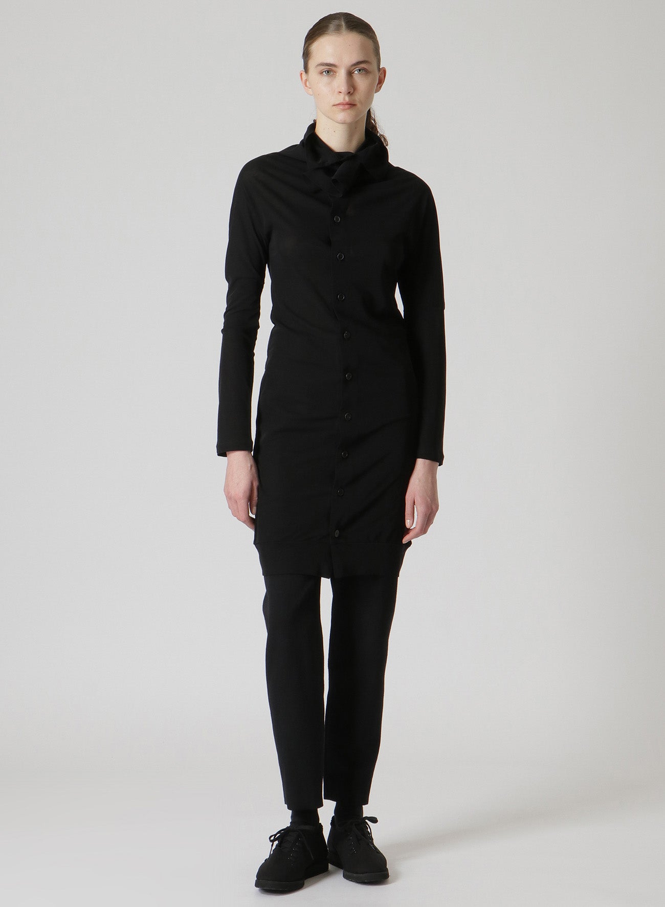 COSMORAMA COTTON DRAPED LONG SLEEVE BUTTON-UP TURTLENECK TOP