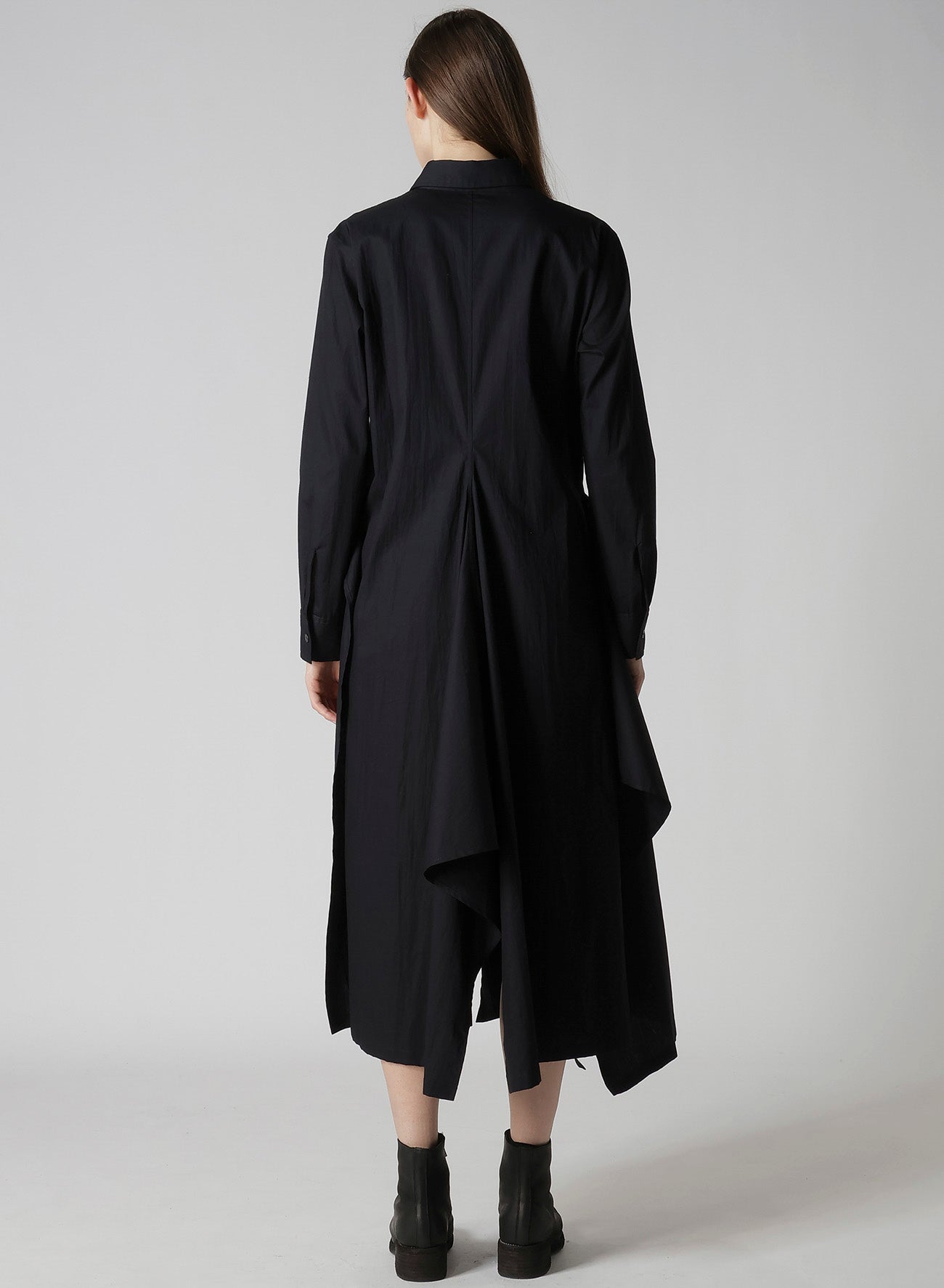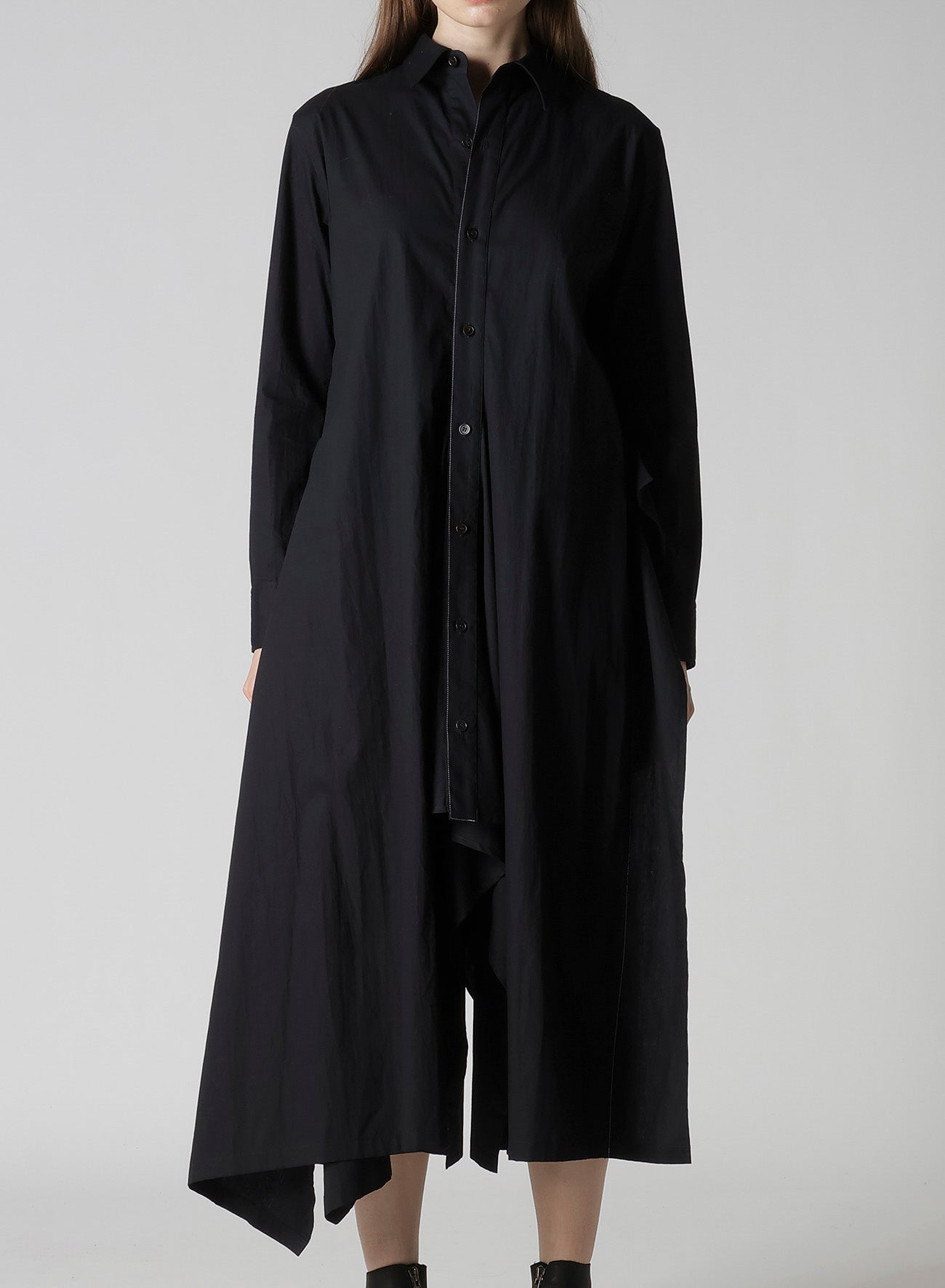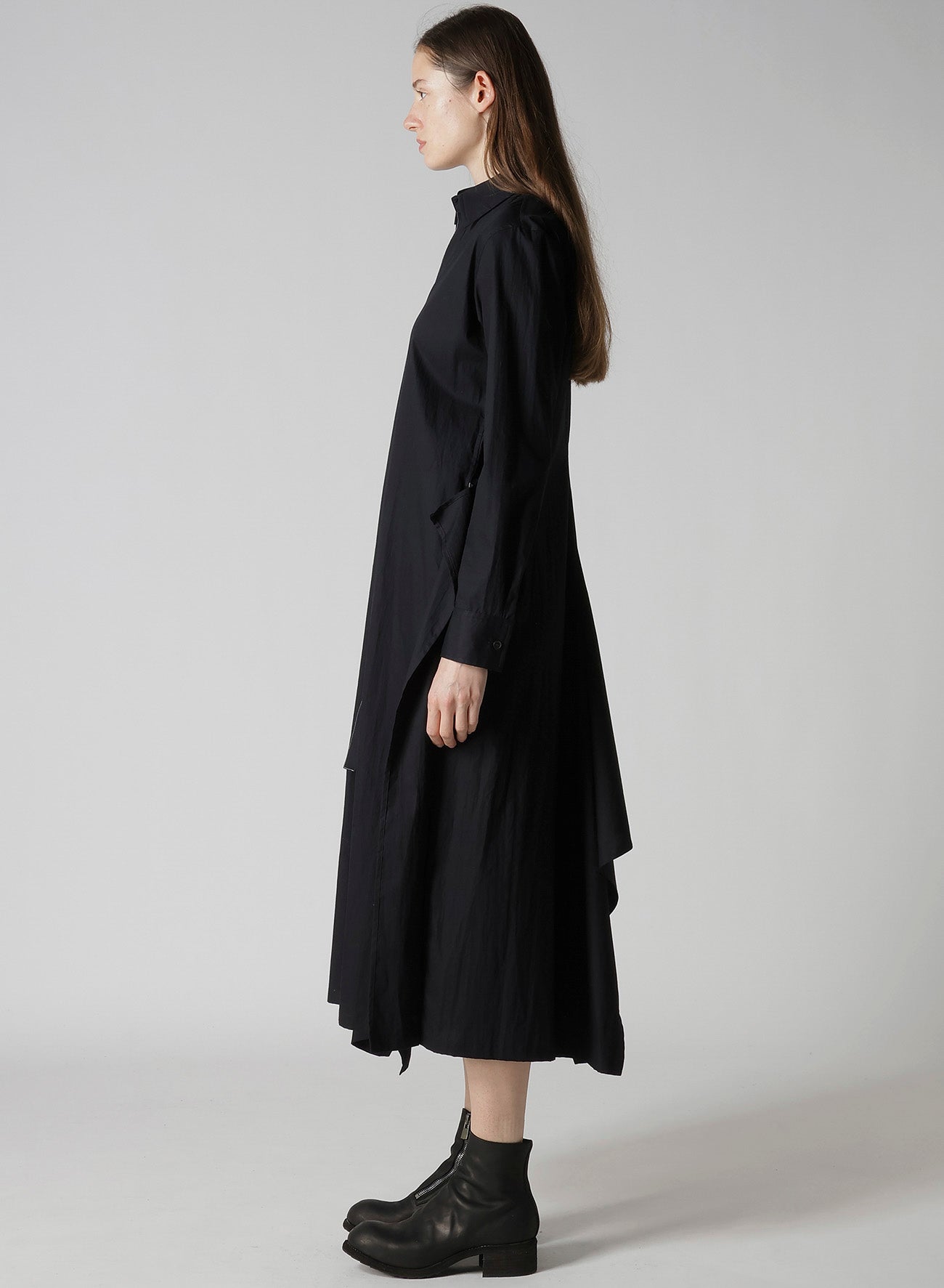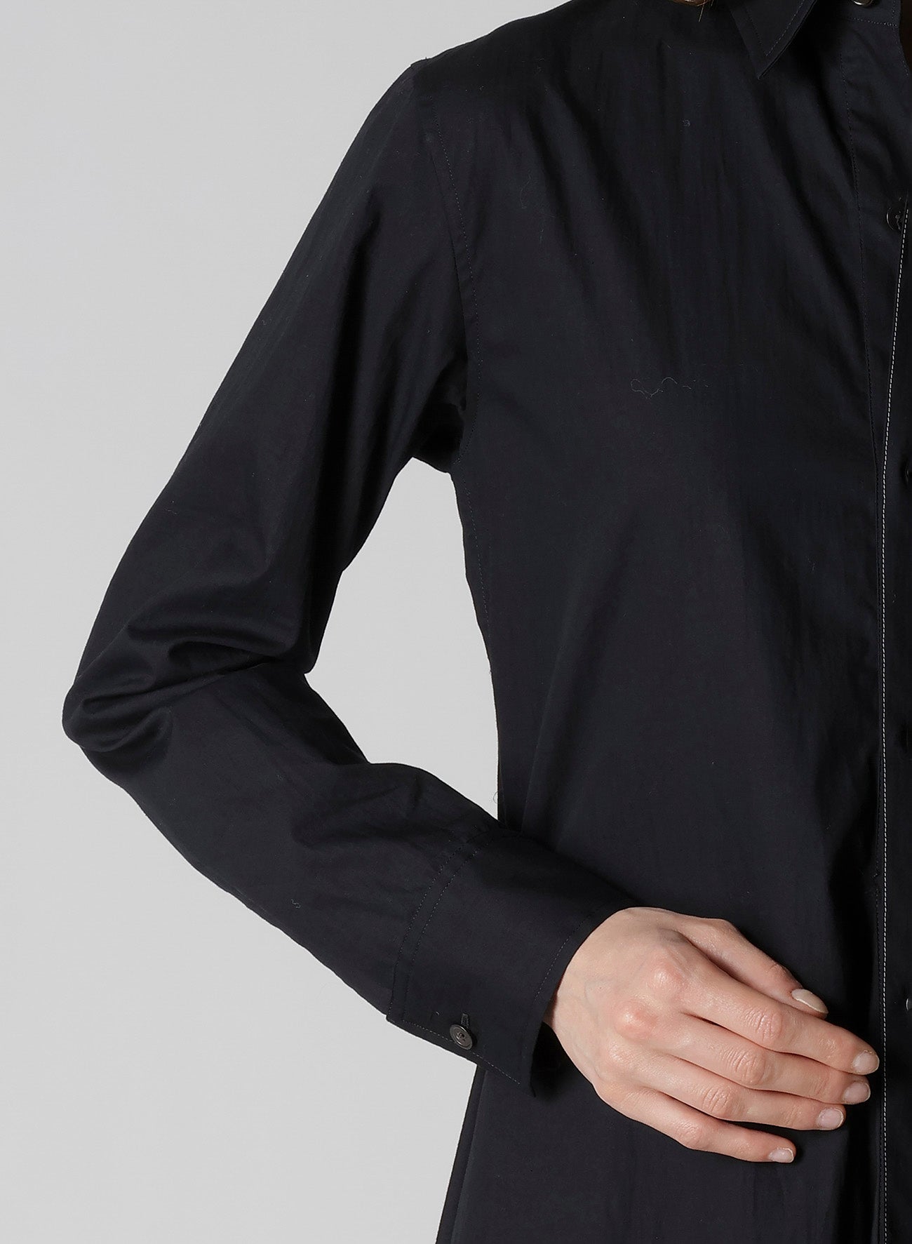 This elegant dress features sleeve flares and is crafted from a high-density broadcloth fabric, boasting a refined appearance with a subtle sheen. Though lightweight, the fabric is not sheer, offering a comfortable, crisp touch. The soft-wash treatment enhances its natural feel.