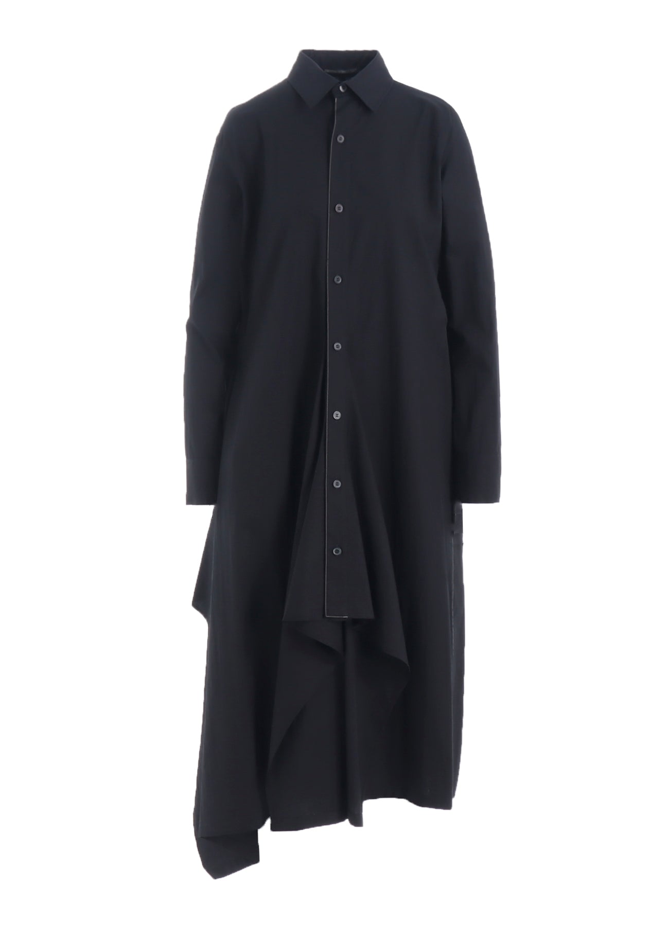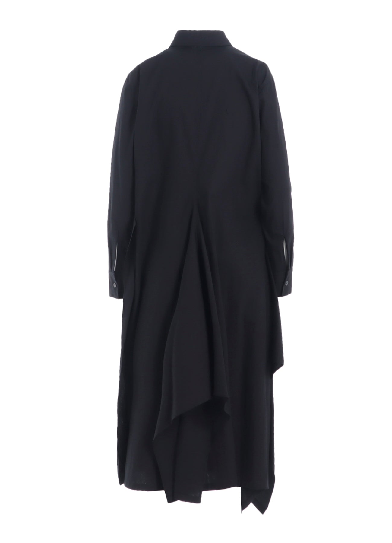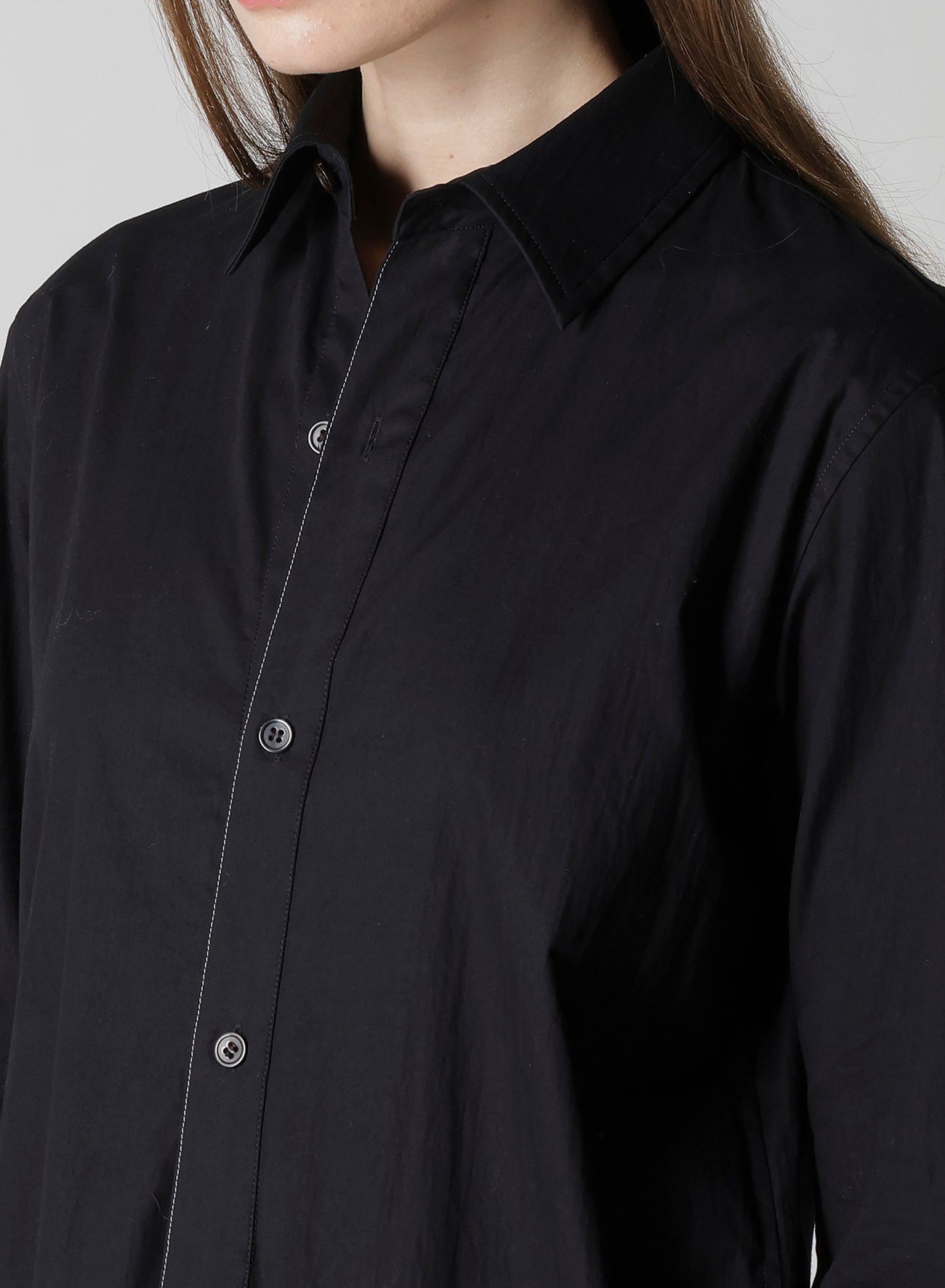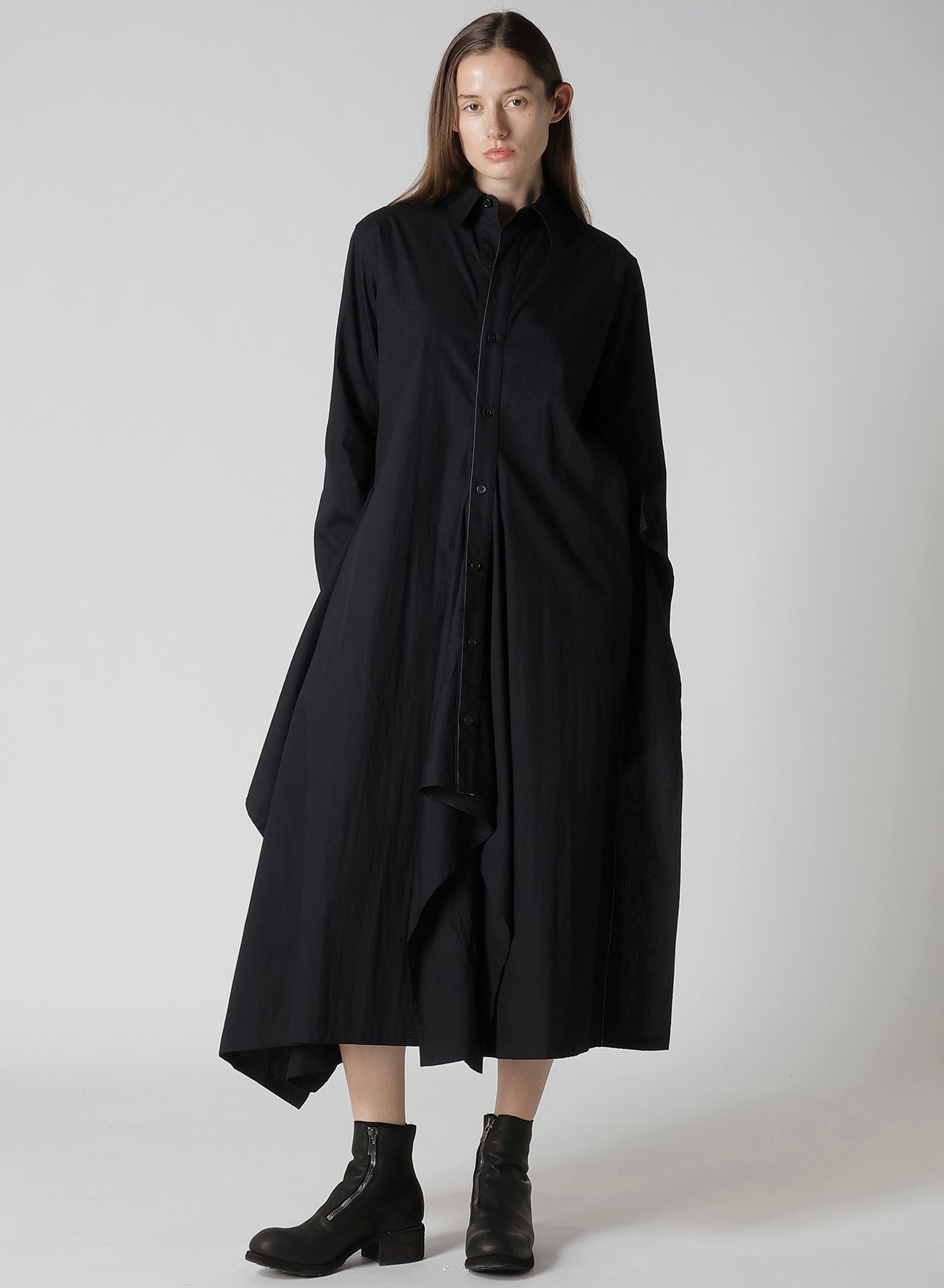 This elegant dress features sleeve flares and is crafted from a high-density broadcloth fabric, boasting a refined appearance with a subtle sheen. Though lightweight, the fabric is not sheer, offering a comfortable, crisp touch. The soft-wash treatment enhances its natural feel.