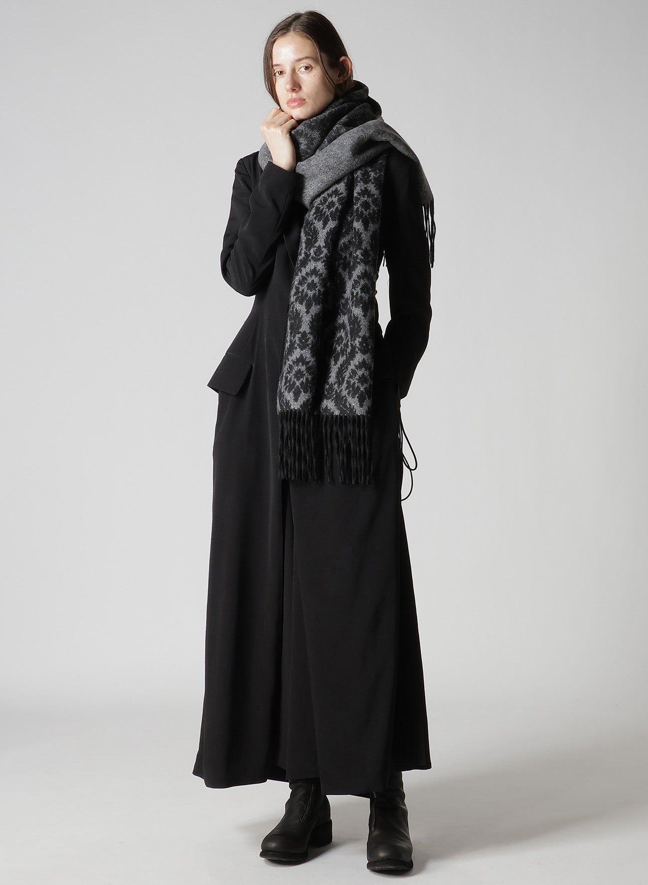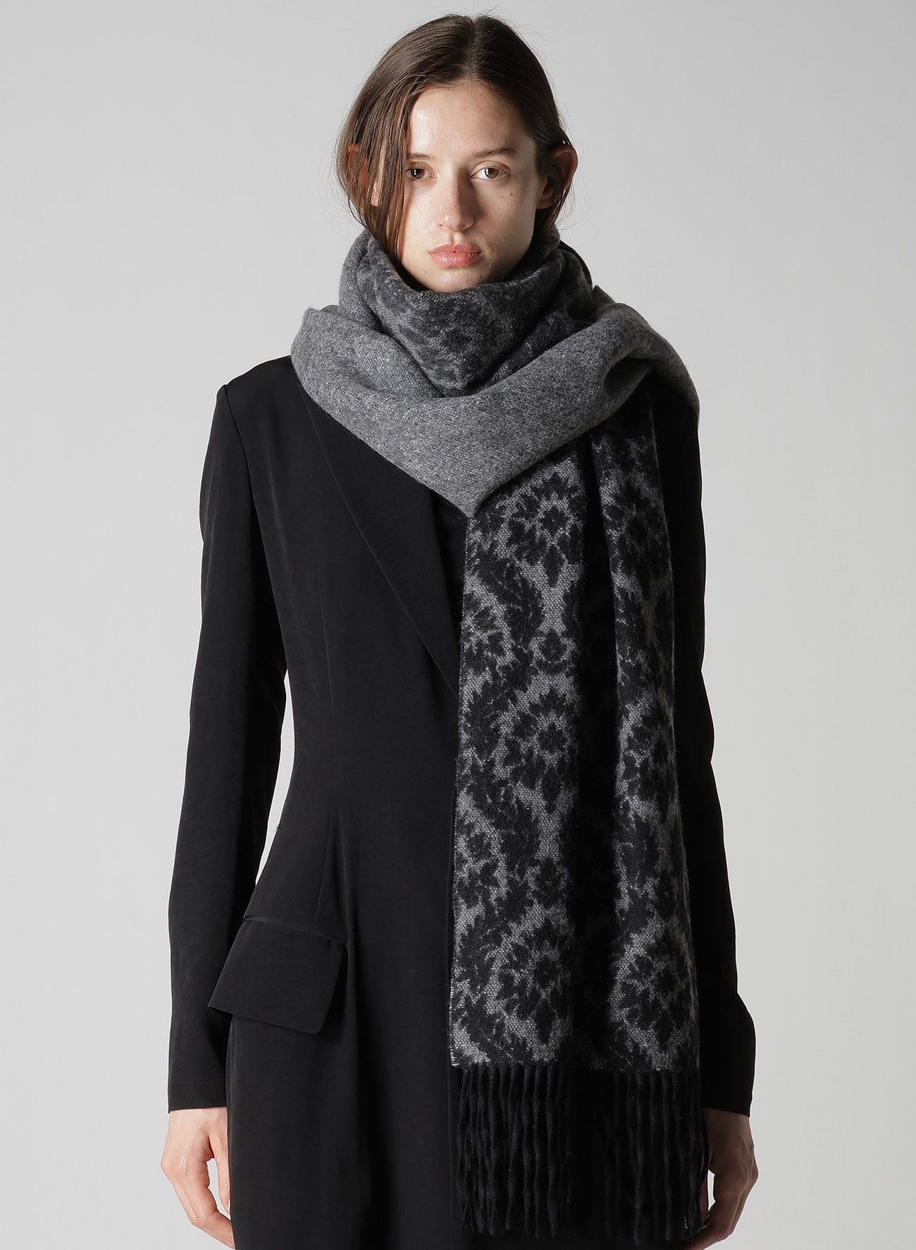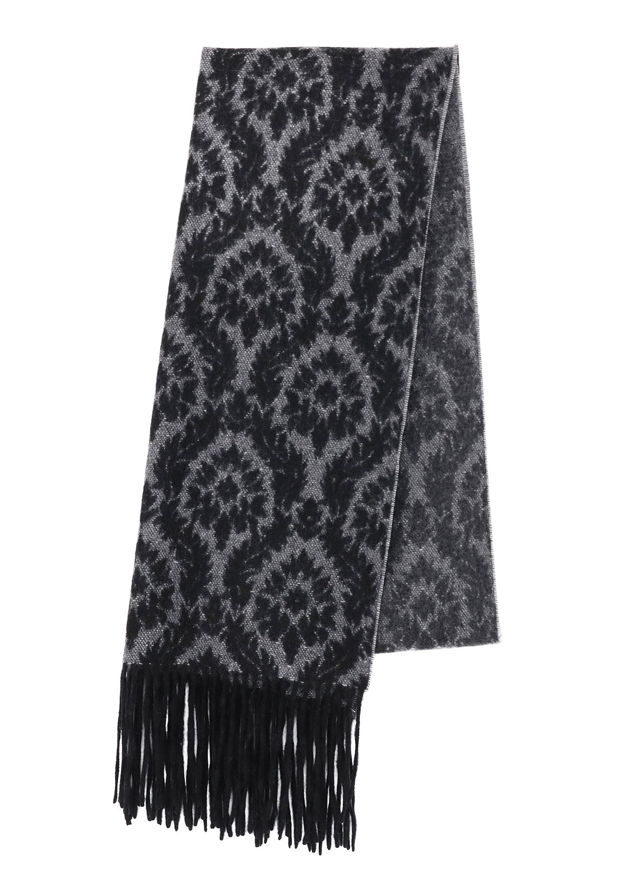 The stole features a leaf pattern expressed through Jacquard weaving, with a luxurious use of soft cashmere for a pleasant touch. The Yarn-Dyed threads and weaving technique bring out a refined gradient effect, offering warmth and elegance.