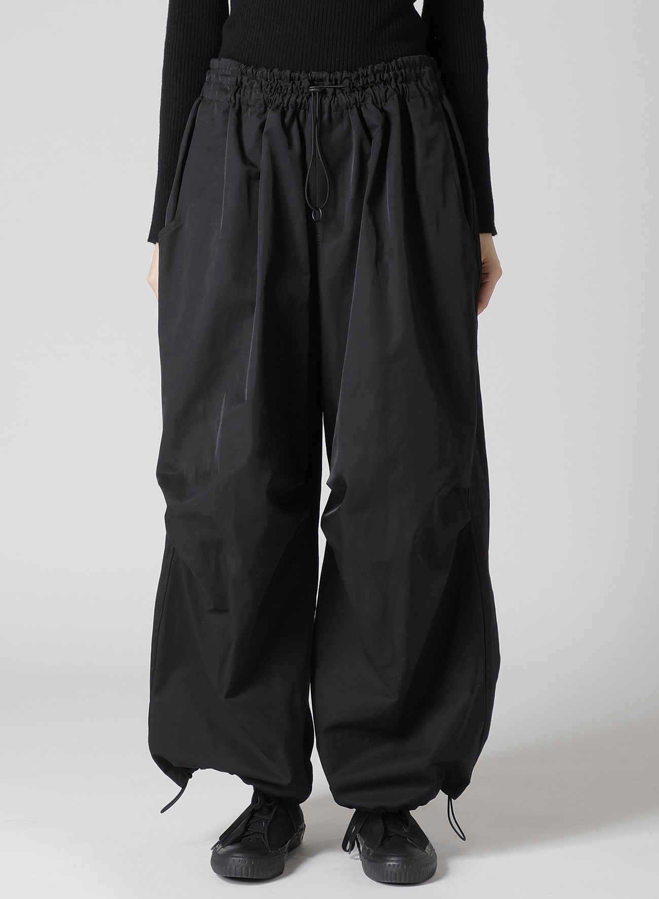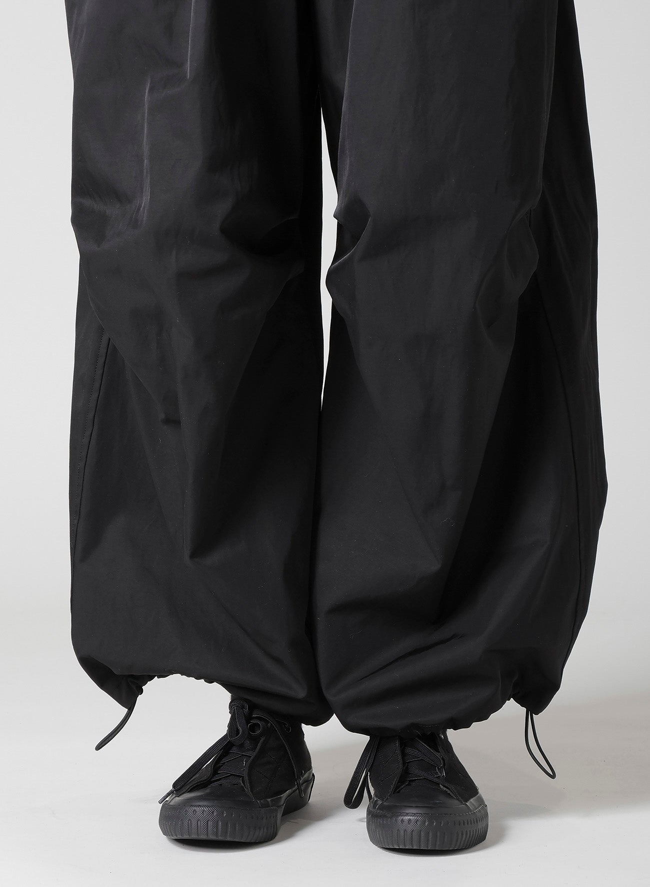 These parachute pants feature a relaxed silhouette, ideal for a comfortable work style. They combine the strength of nylon and the softness of cotton, providing a light and easy-to-wear feel.