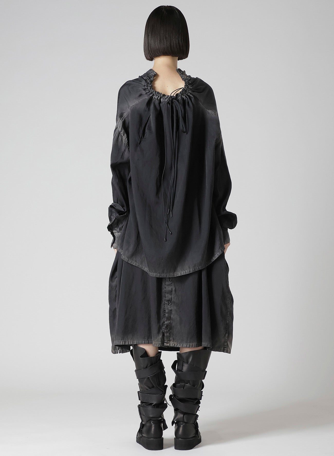 This skirt features a striking shirt-docking design, allowing it to be worn as a skirt or a setup with a shirt. Crafted from a fabric characterized by its elegant sheen and drapery, it provides a sophisticated touch. Note that the model wears a sample that may differ in size and texture from the final product. Consult the SIZE INFO for details.