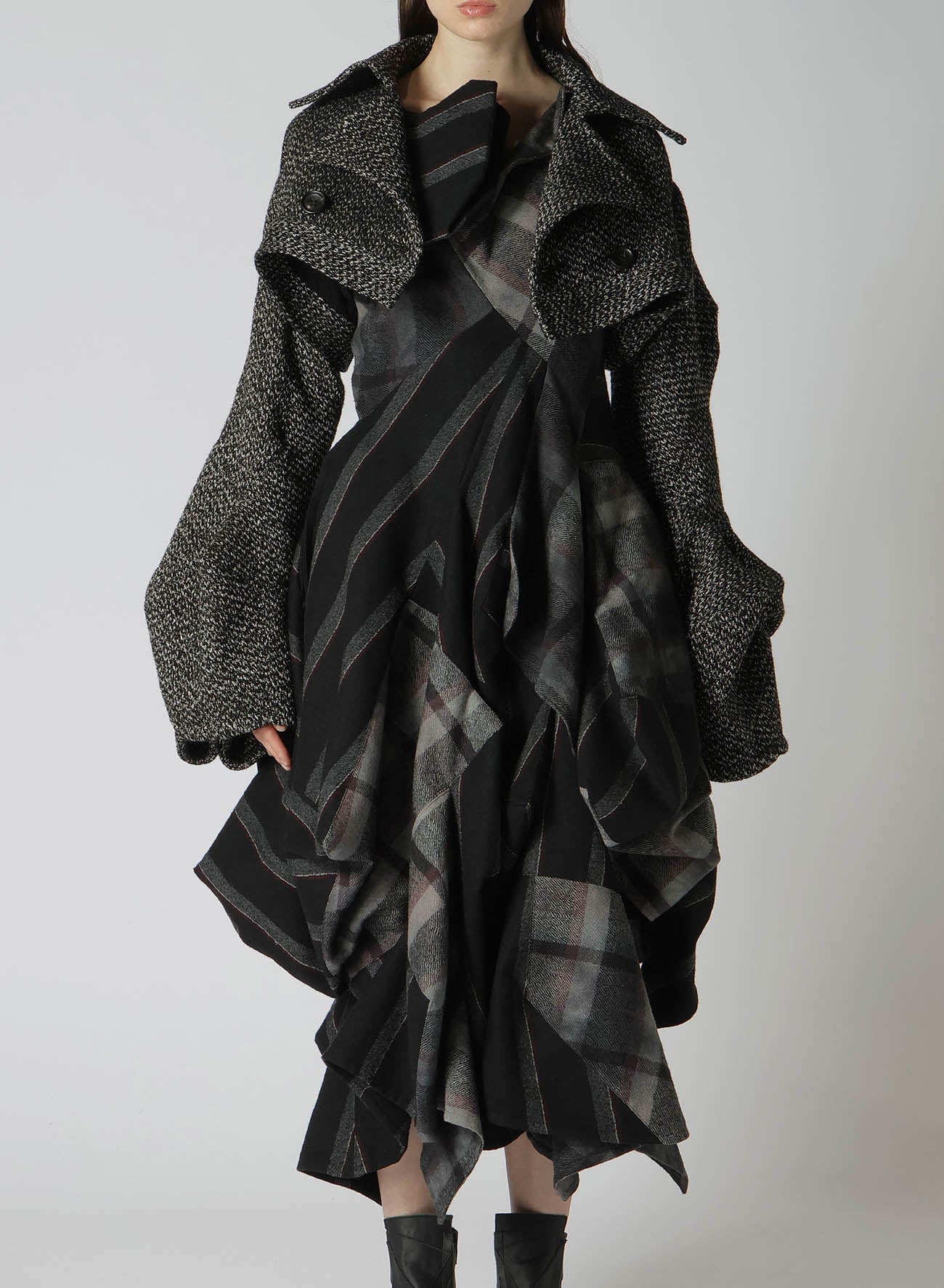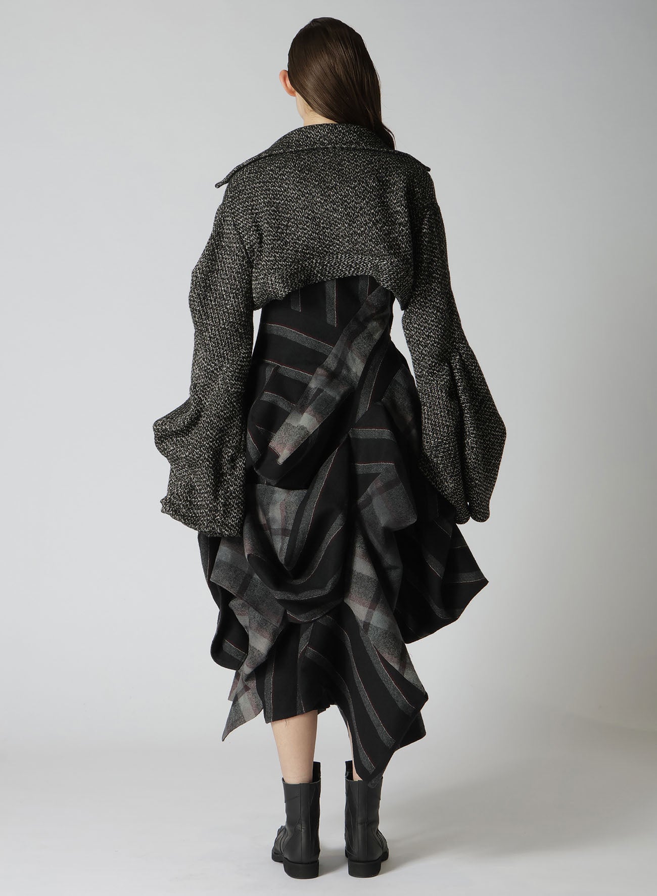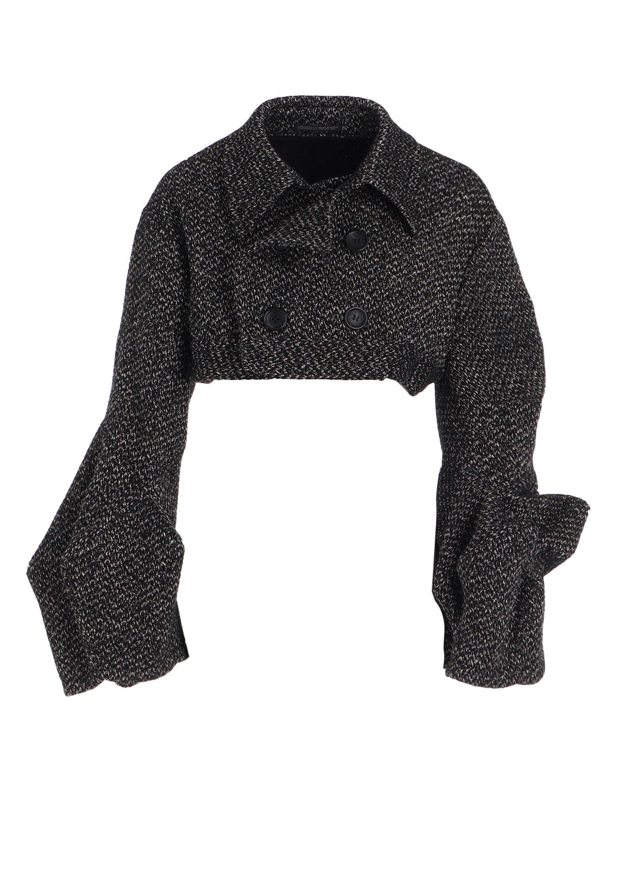 DOBBY HEATHER TWEED BOX D SLEEVES DOUBLE F SHORT JACKET