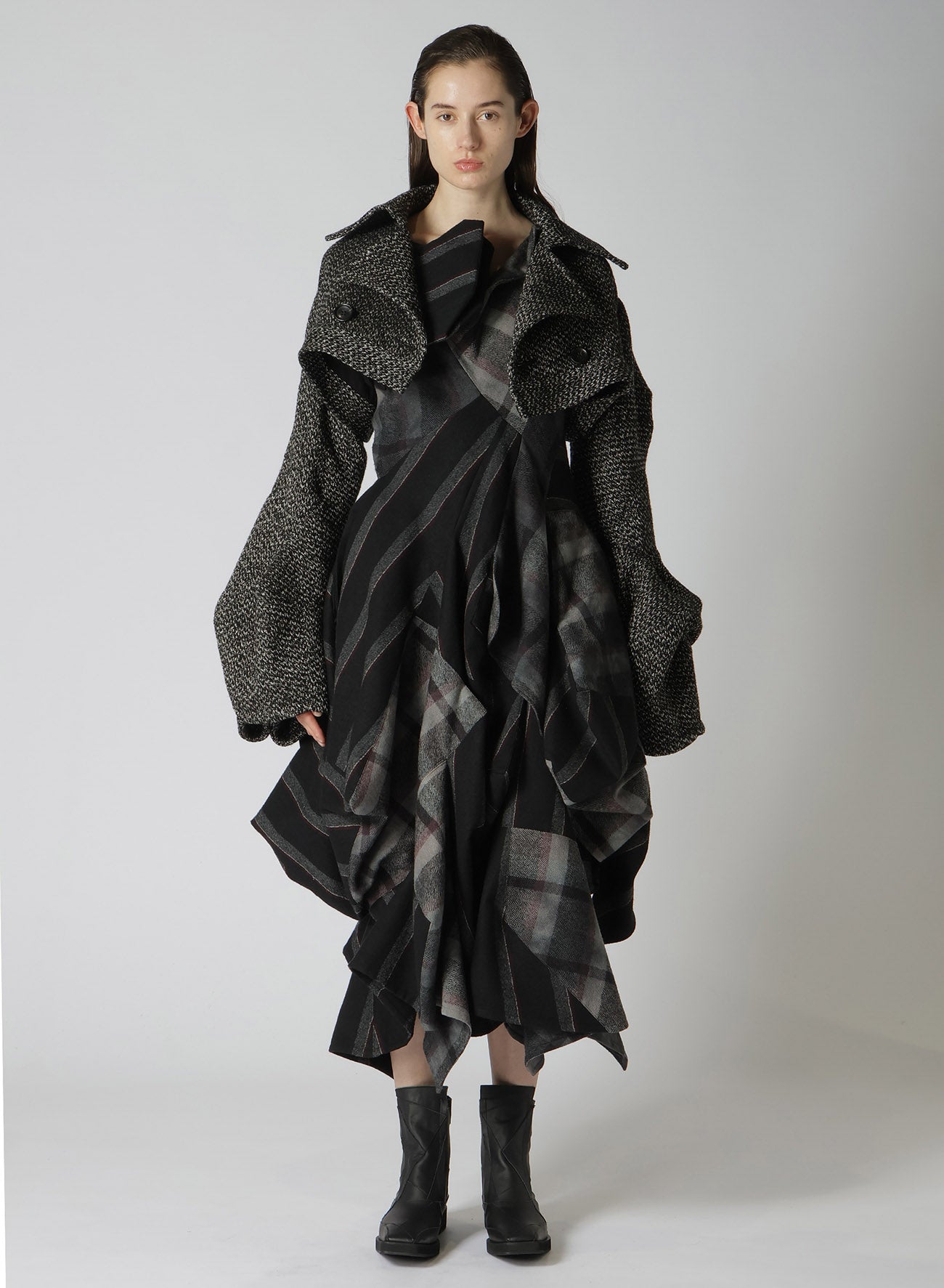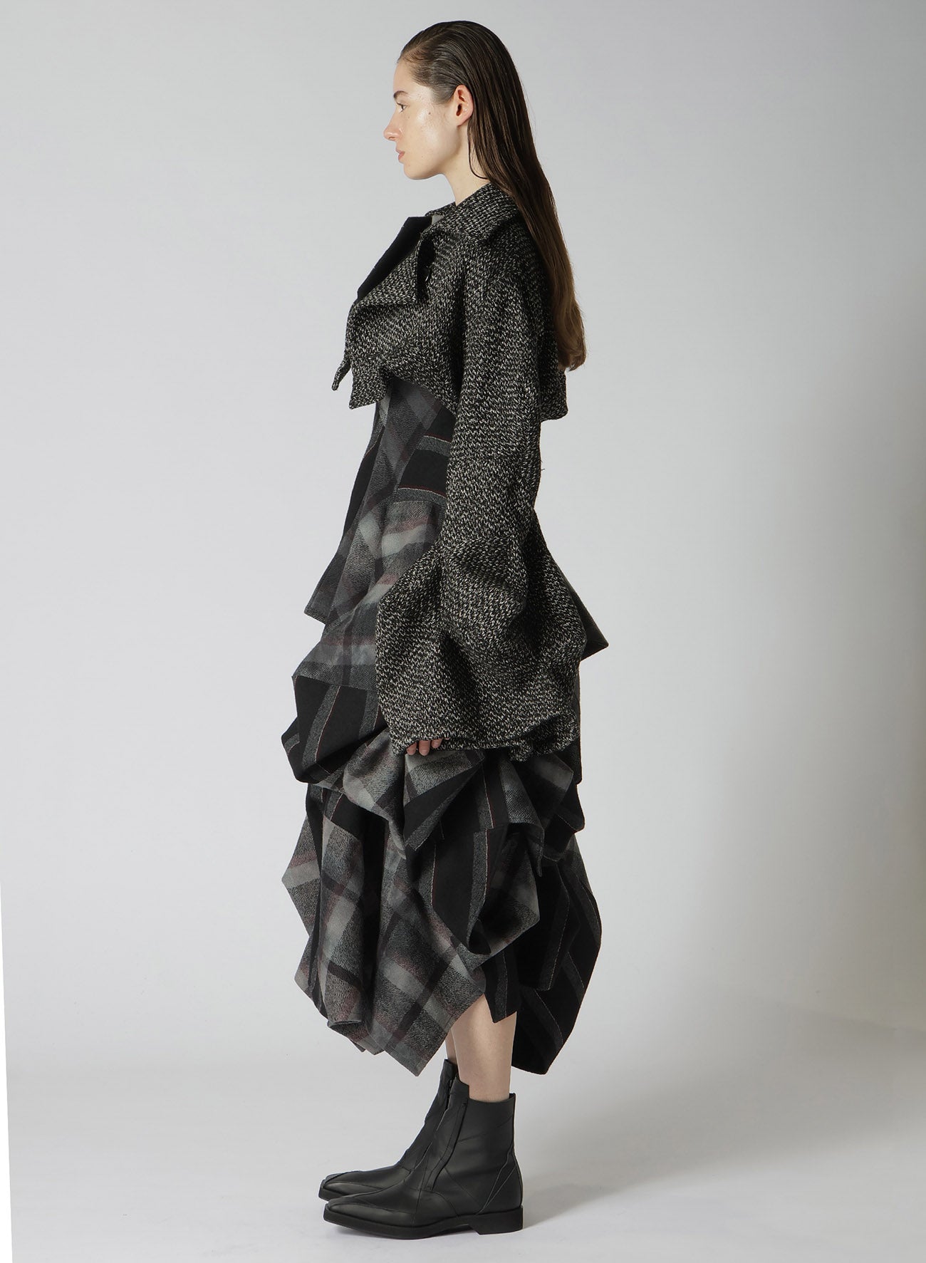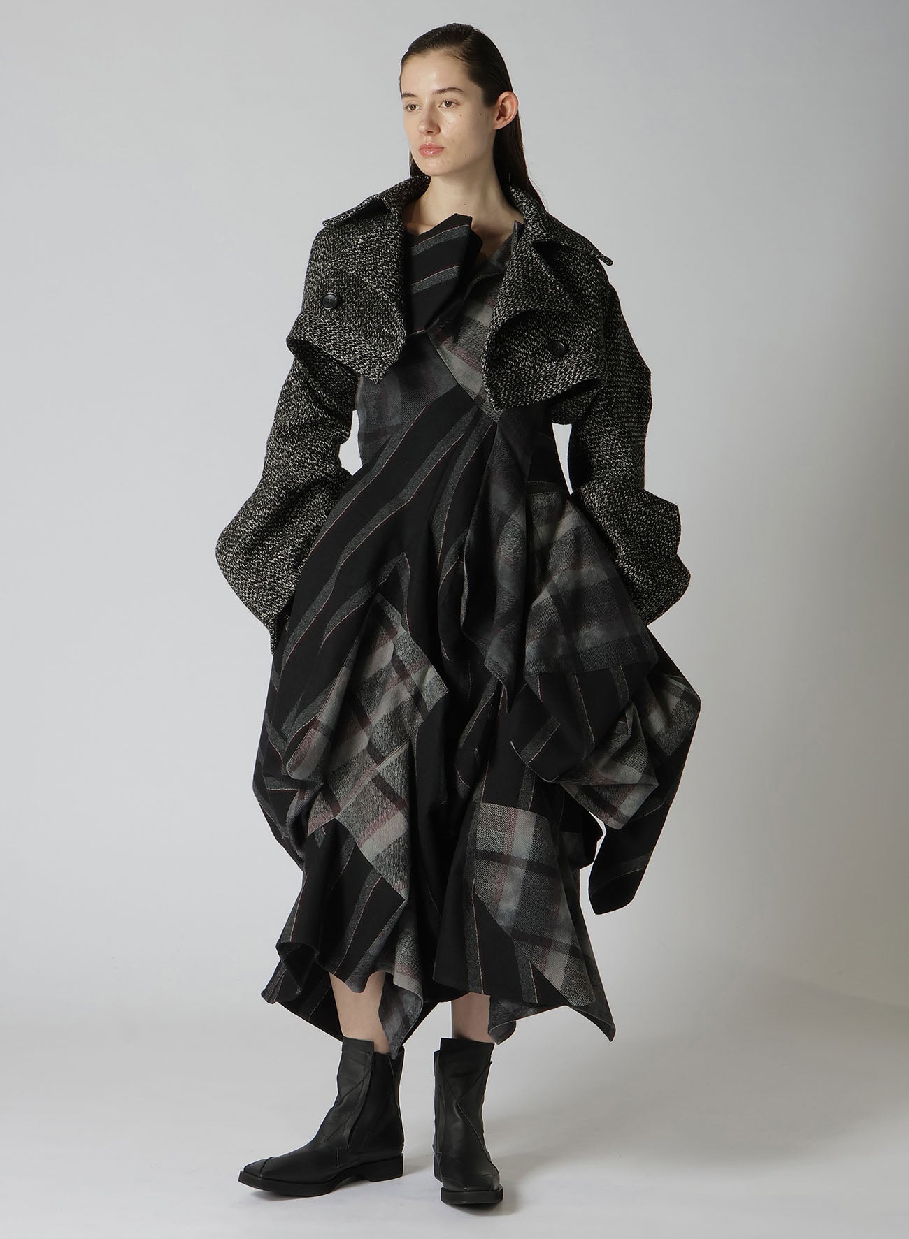 DOBBY HEATHER TWEED BOX D SLEEVES DOUBLE F SHORT JACKET