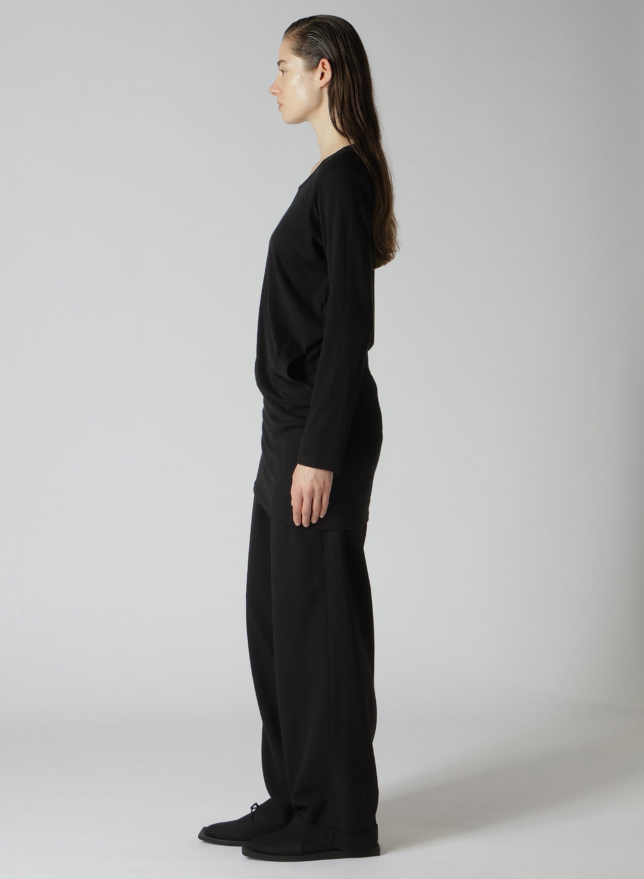 56/2 GUAZE SINGLE JERSEY SIDE DRAPED LONG SLV T