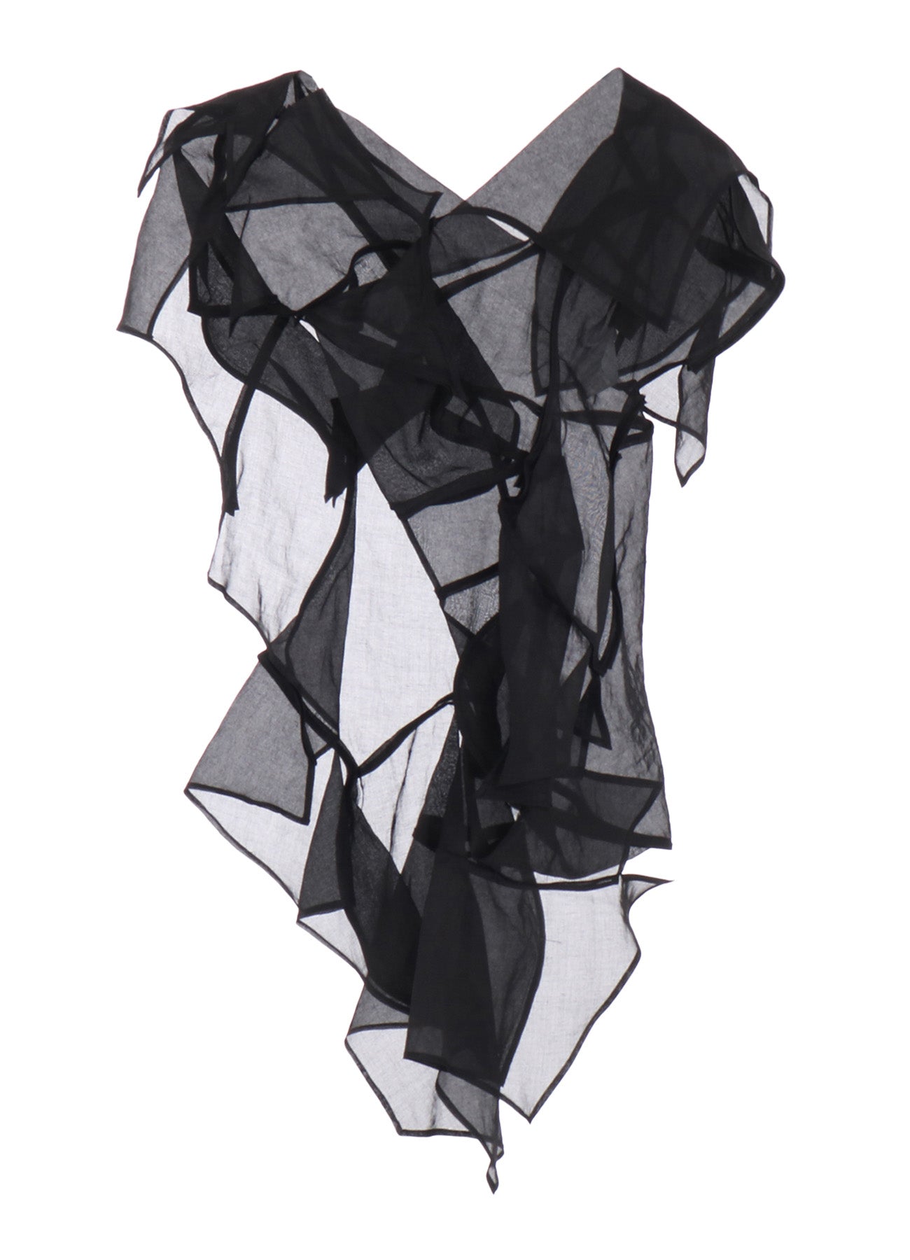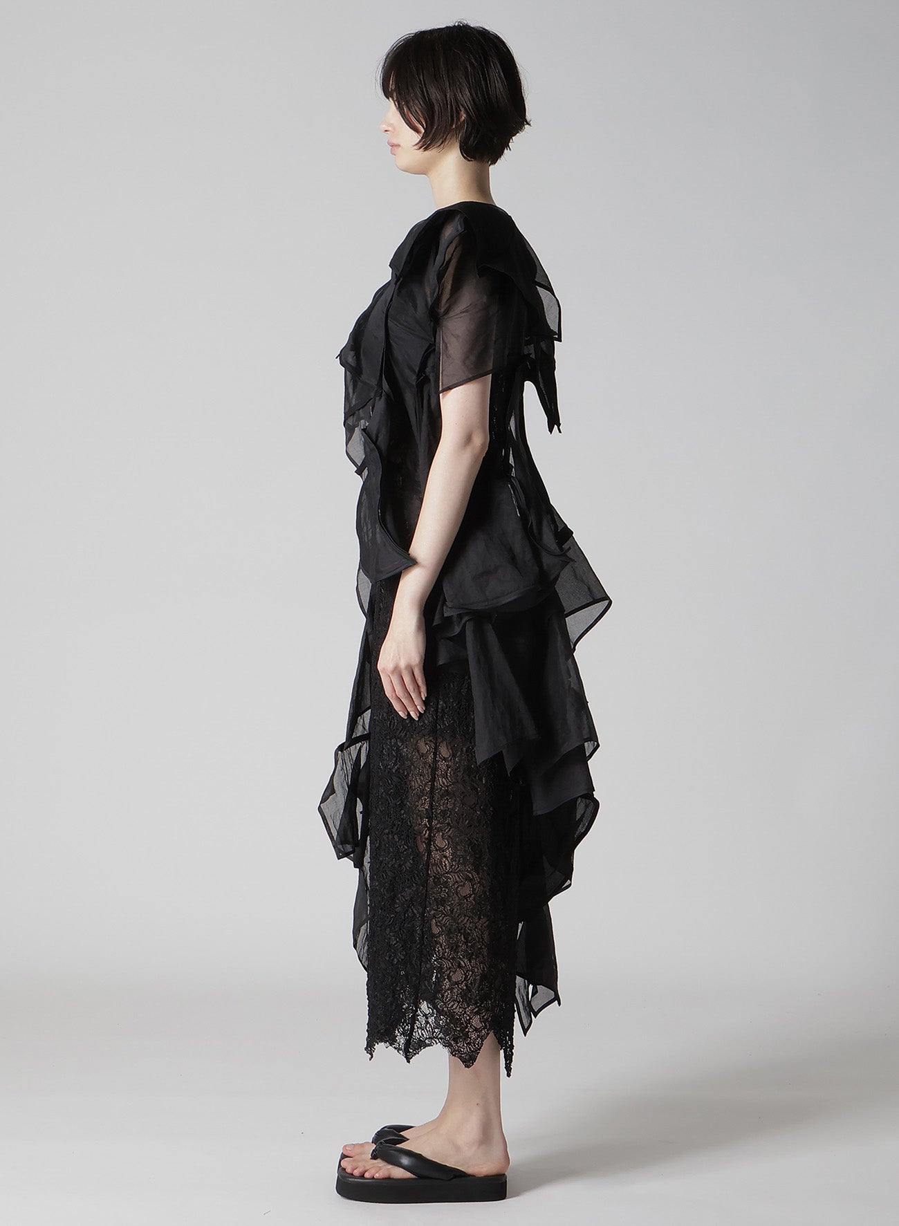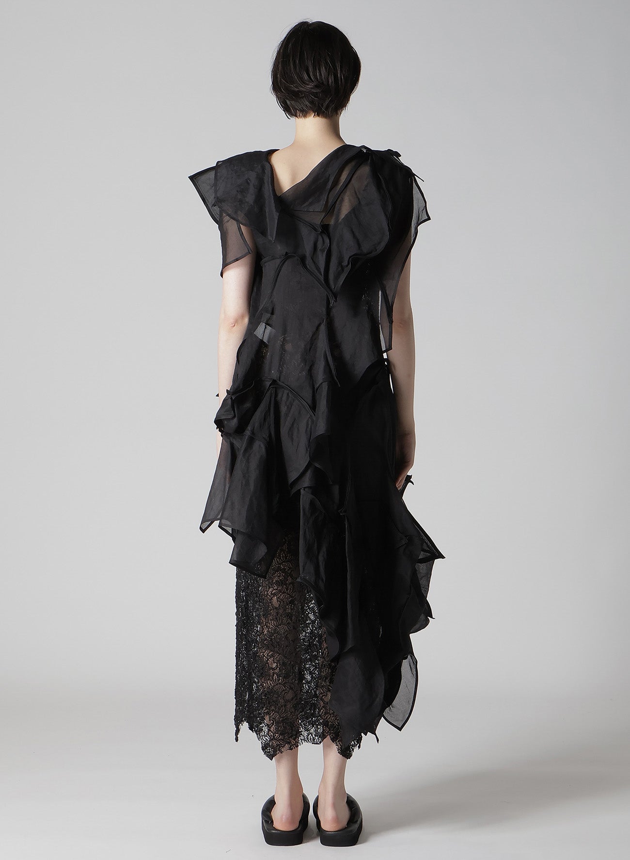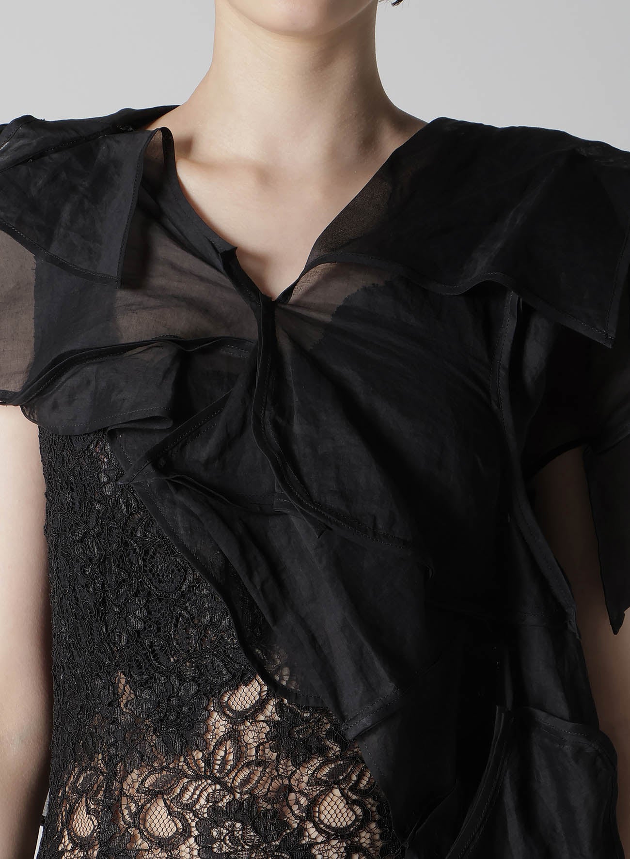 COTTON ORGANZA LAWN PANELED 3D BLOUSE