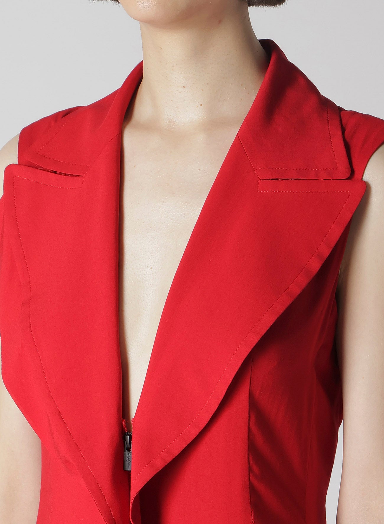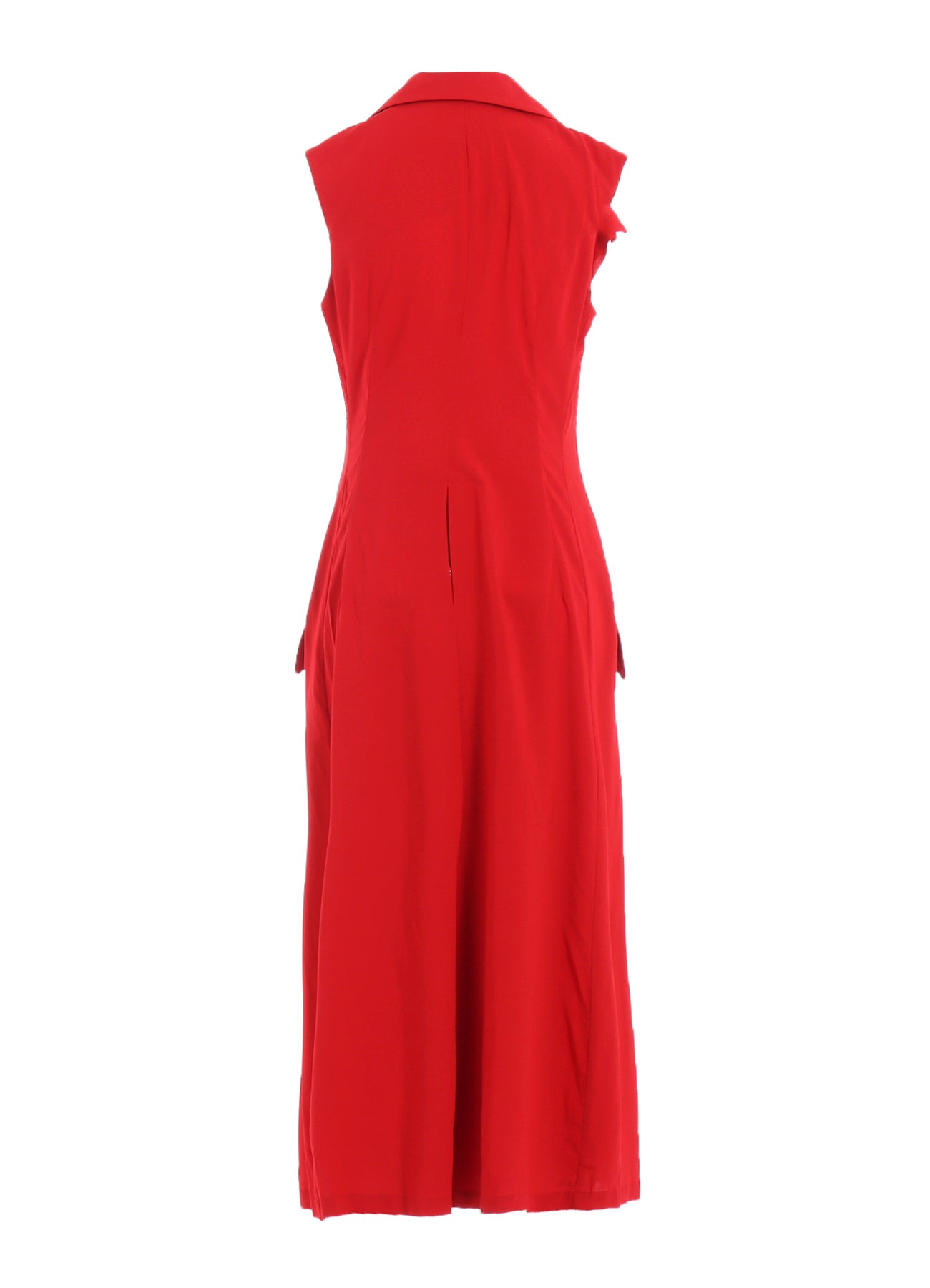 This sleeveless dress beautifully accentuates the waistline with its luxurious material, offering a drapery and sheen that exudes elegance. The front flared accent enhances its sophisticated appearance, making it suitable for various occasions. Note: the model wears a sample; product size and feel may vary. Check SIZE INFO for details.