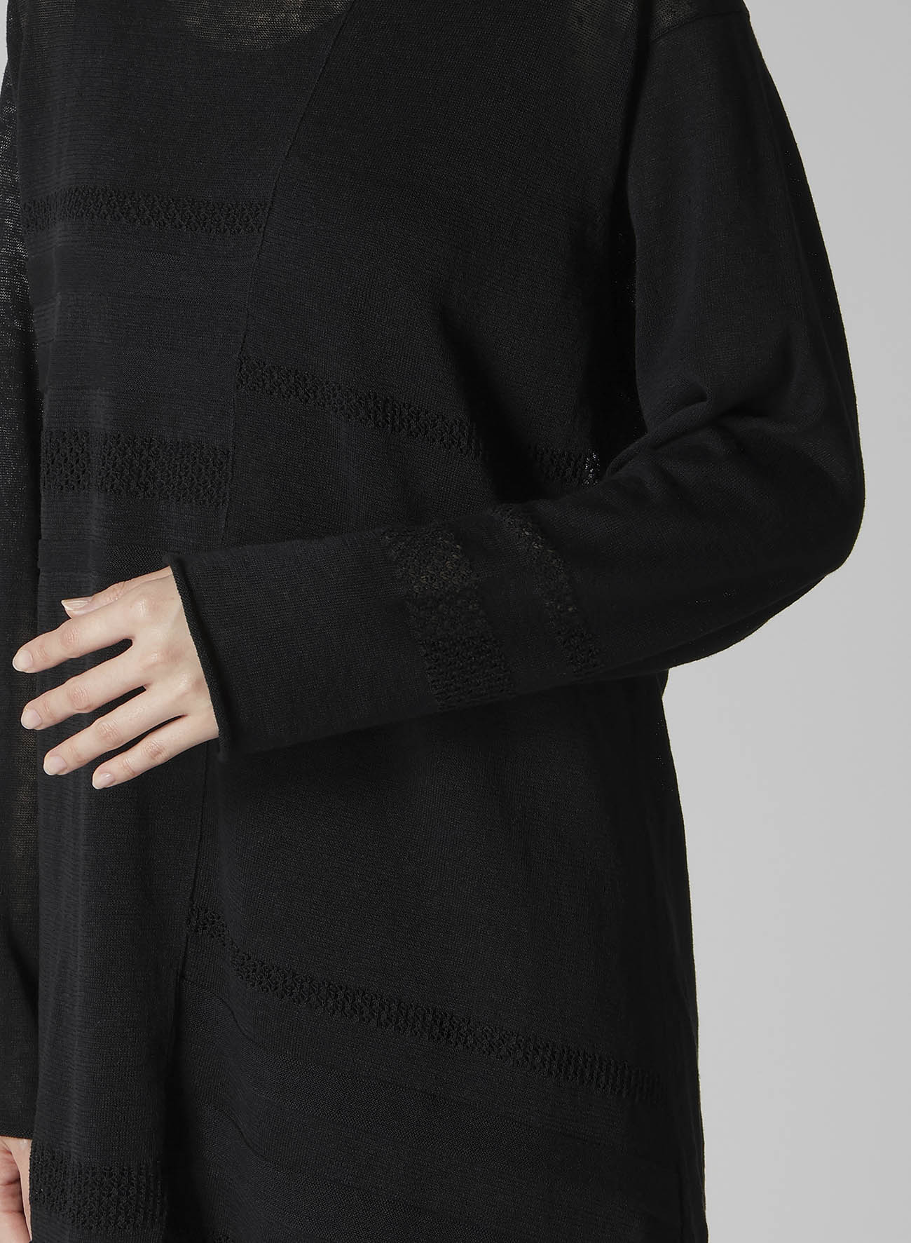- Beautifully sheer round-neck pullover knit
