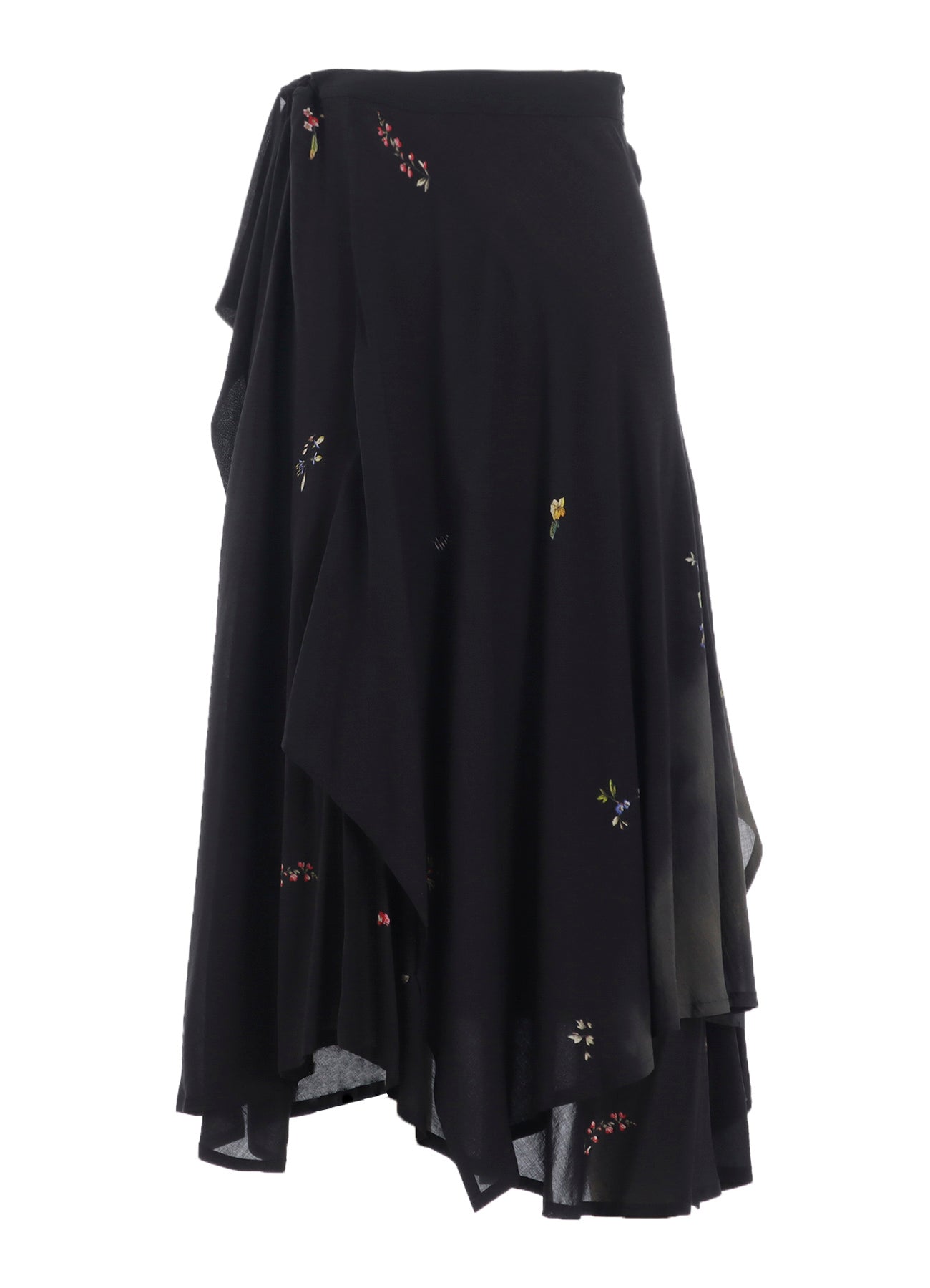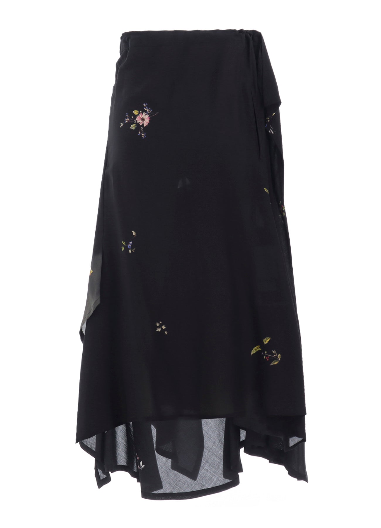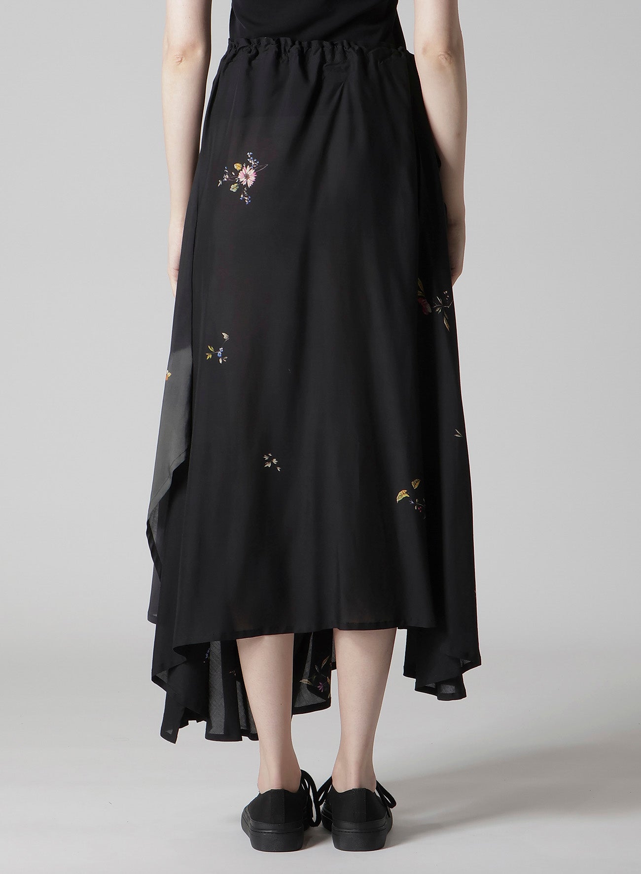 A vibrant floral print makes this gathered skirt captivating. Its asymmetric silhouette, combined with flowing flares and drapery material, results in an elegant piece. The model is wearing a sample item, so actual products may differ in size and texture. Please use size info for guidance.