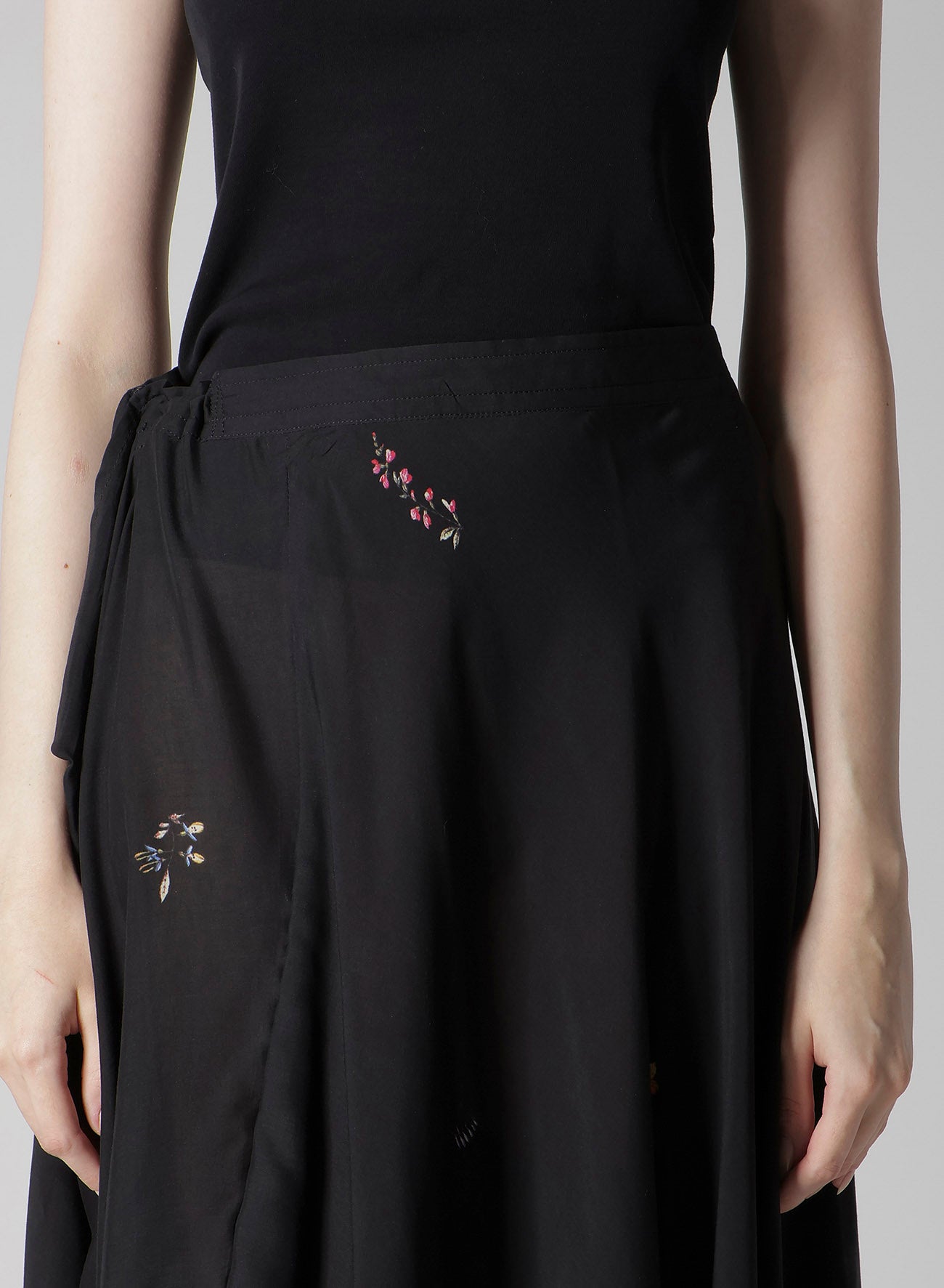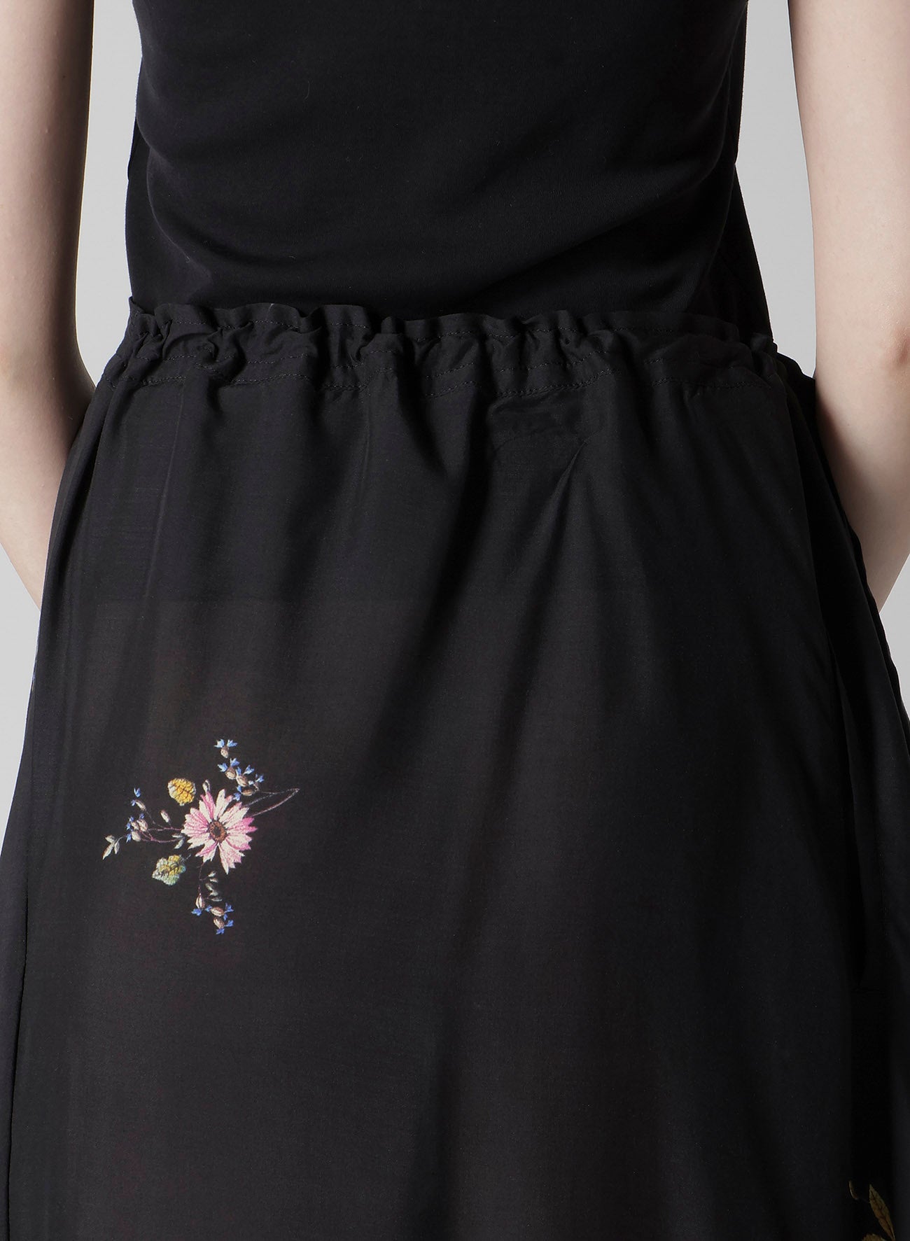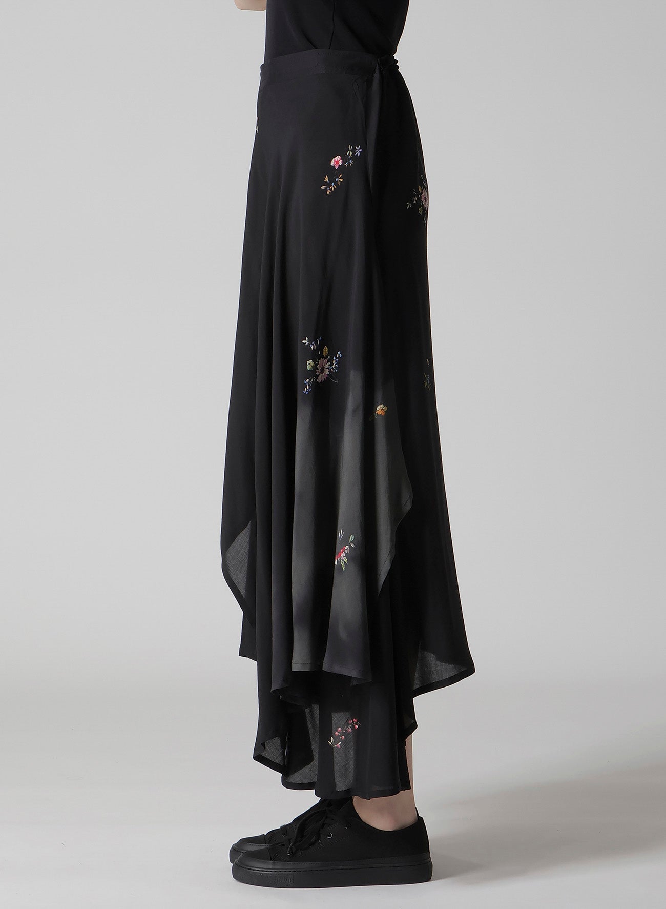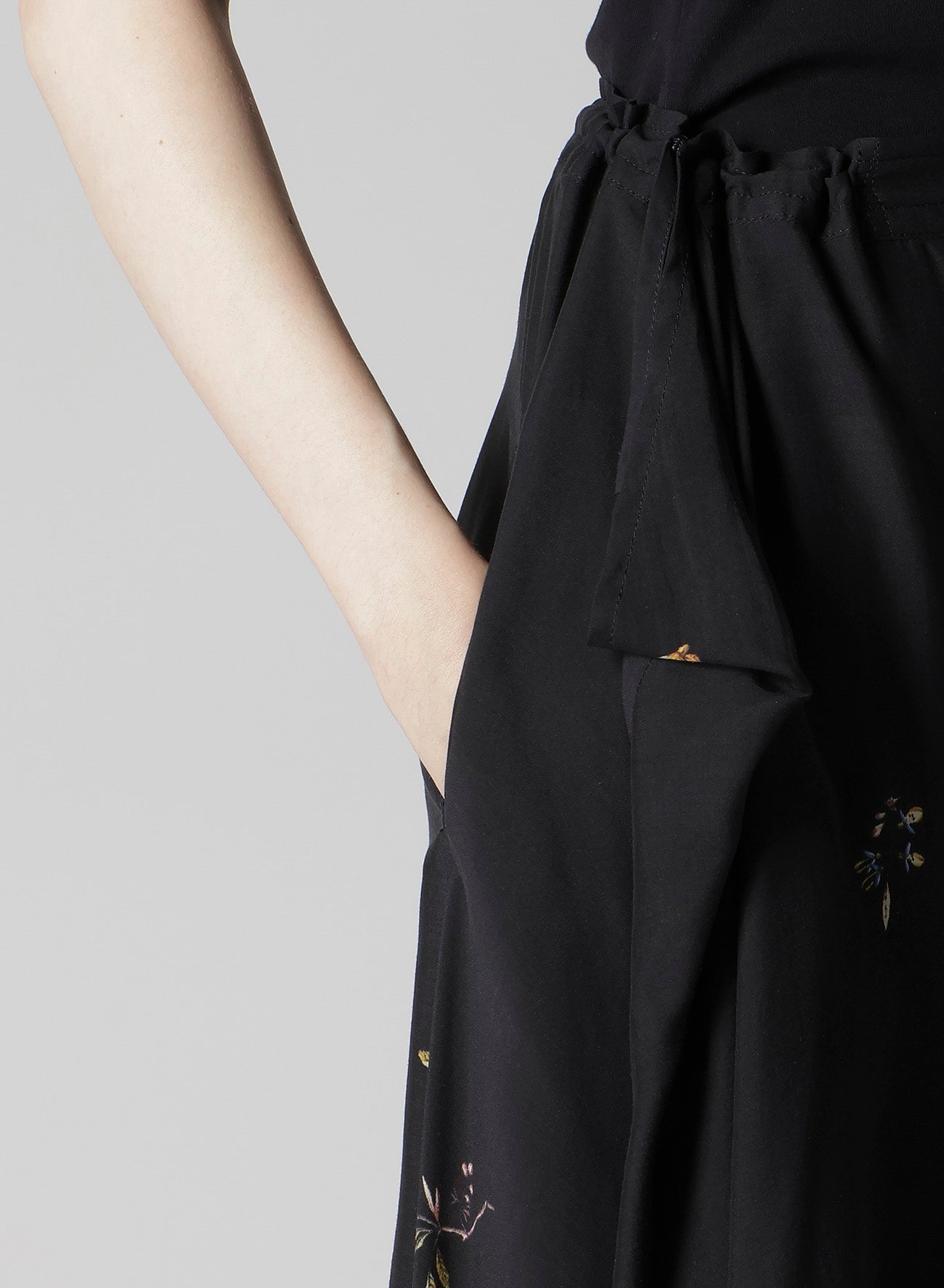 A vibrant floral print makes this gathered skirt captivating. Its asymmetric silhouette, combined with flowing flares and drapery material, results in an elegant piece. The model is wearing a sample item, so actual products may differ in size and texture. Please use size info for guidance.