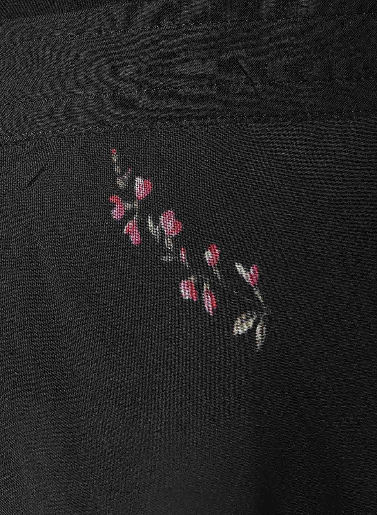 - Features a vibrant floral design with an asymmetric silhouette.