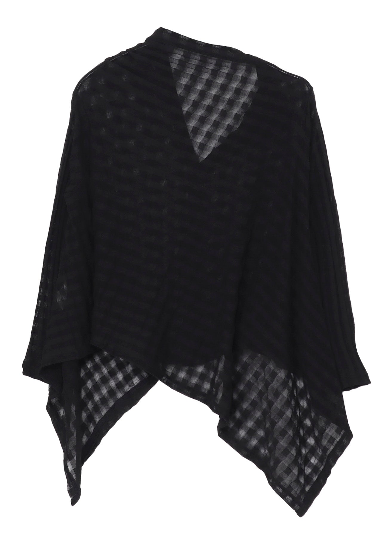This elegant flared cardigan features a gingham pattern with a translucent effect, offering a cool and refreshing feel. Made from a material with a rich, textured surface, its voluminous silhouette adds an elegant touch. Models wear a sample item, so actual product size and feel may vary.